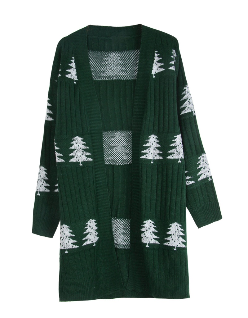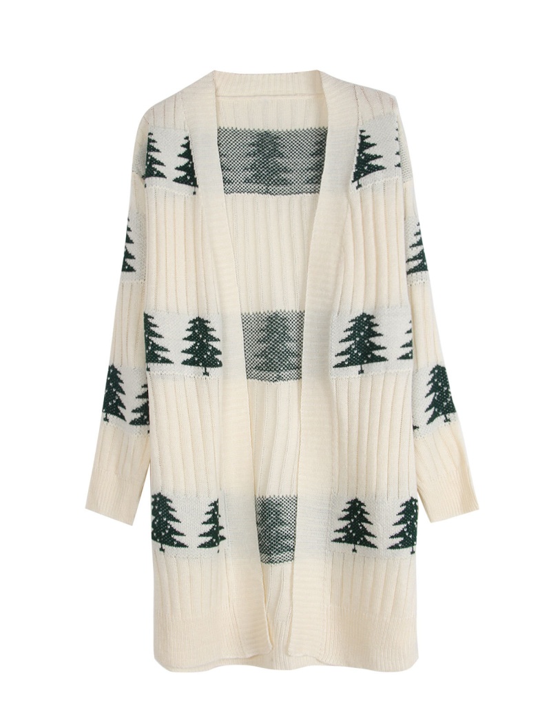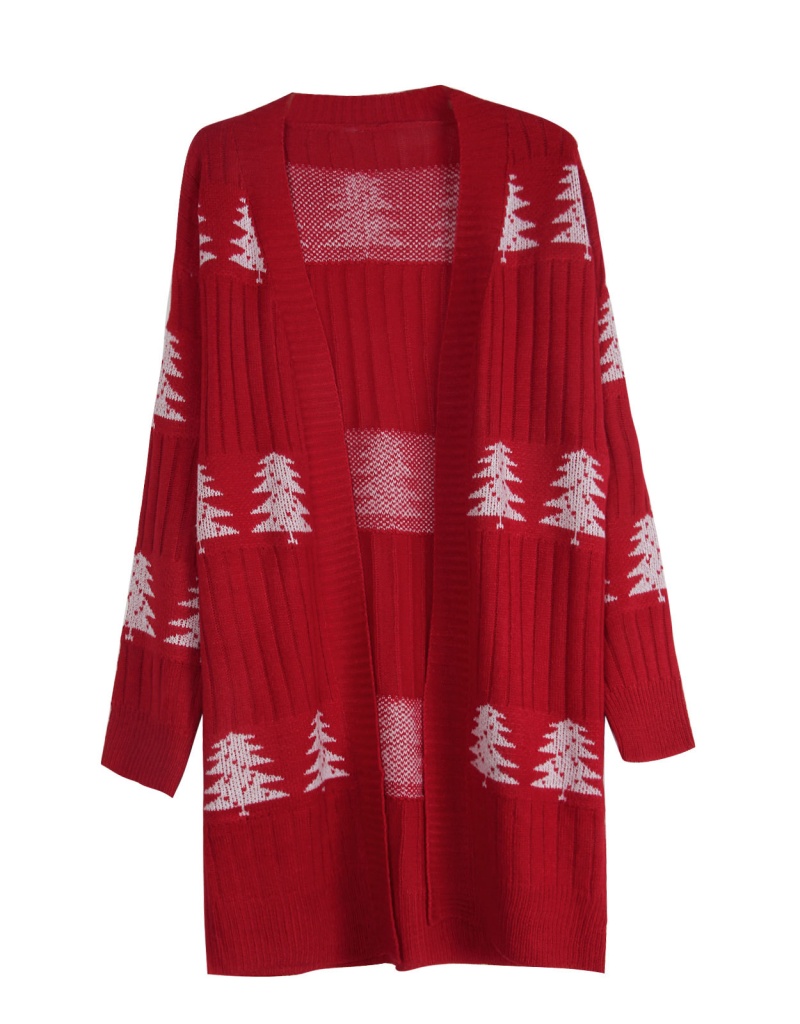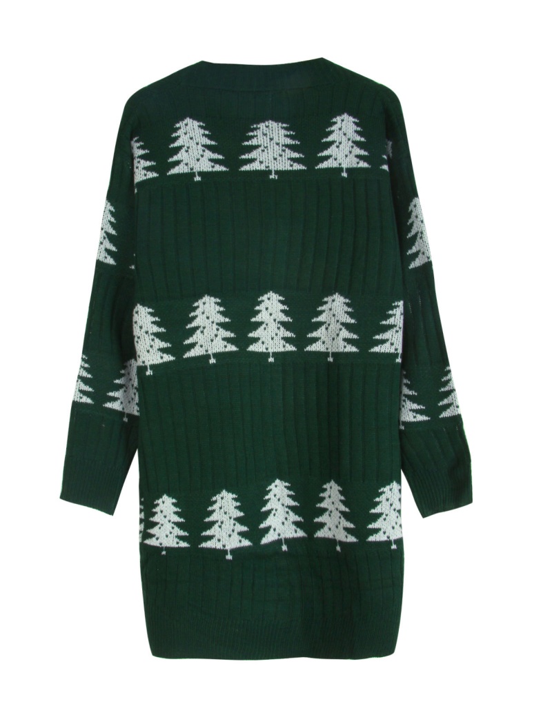 欧美秋冬新款毛衣女装跨境针织宽松圣诞节雪松刺绣开衫外套