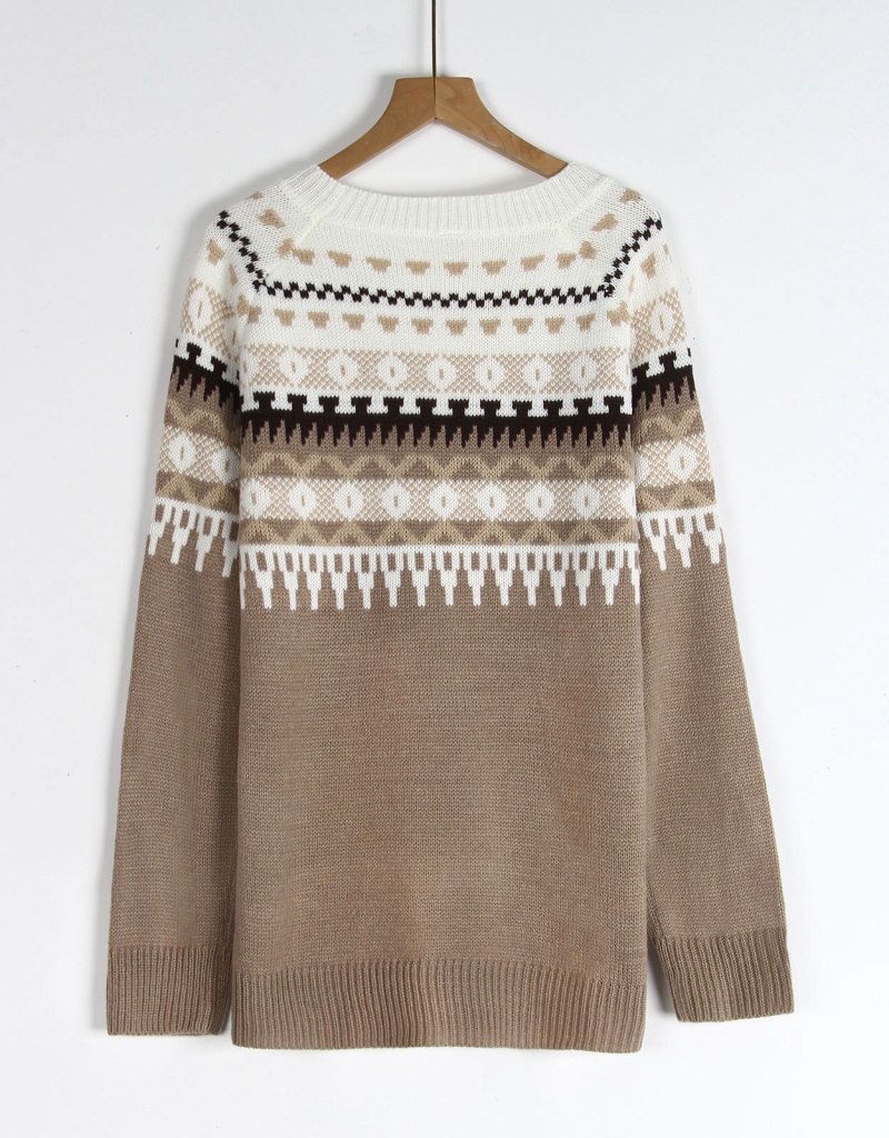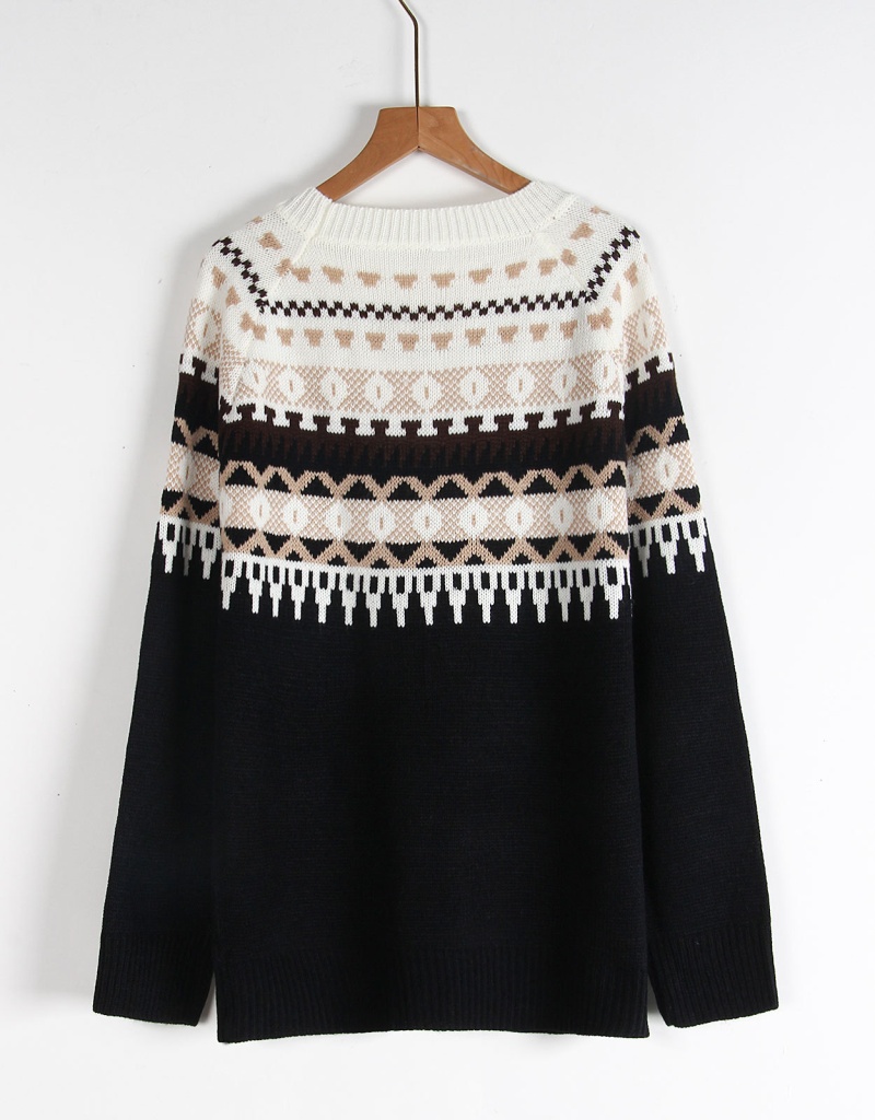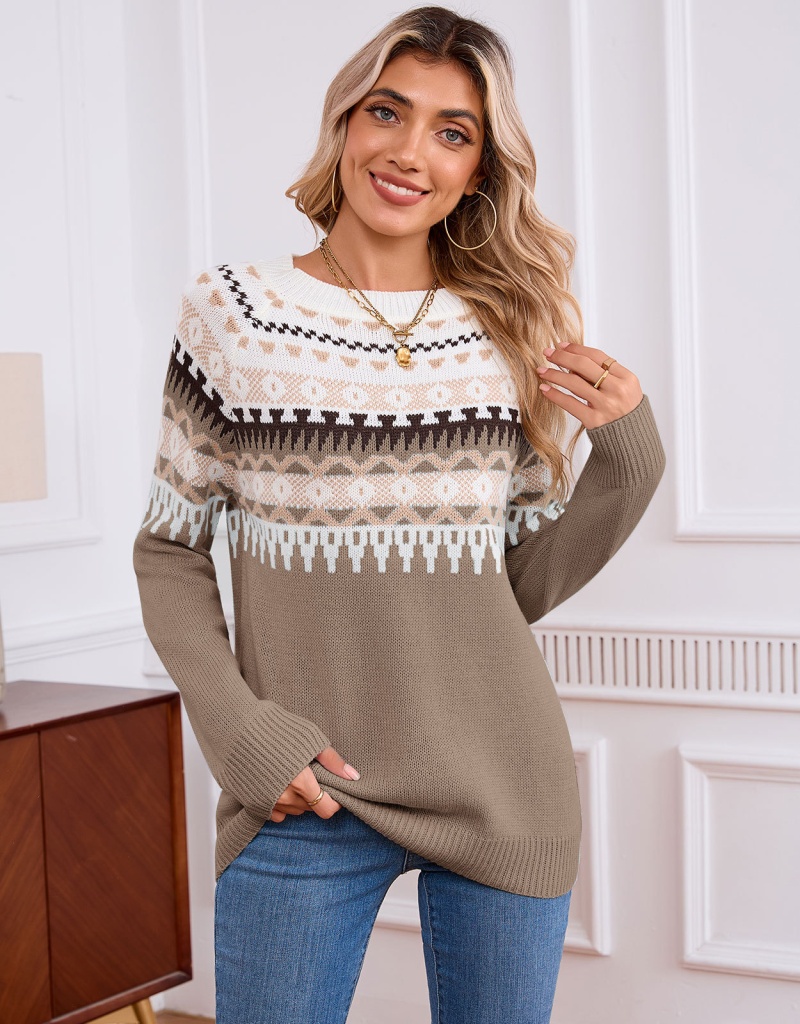 /tiktok/shein/temu大爆款费尔岛毛衣民族几何图案套头衫女