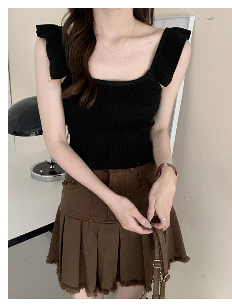 短款冰丝荷叶边小飞袖吊带背心设计感小众夏外穿针织内搭无袖上衣