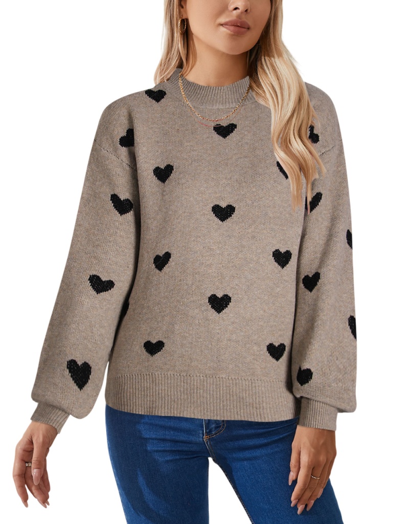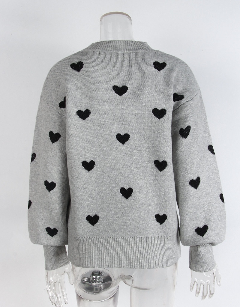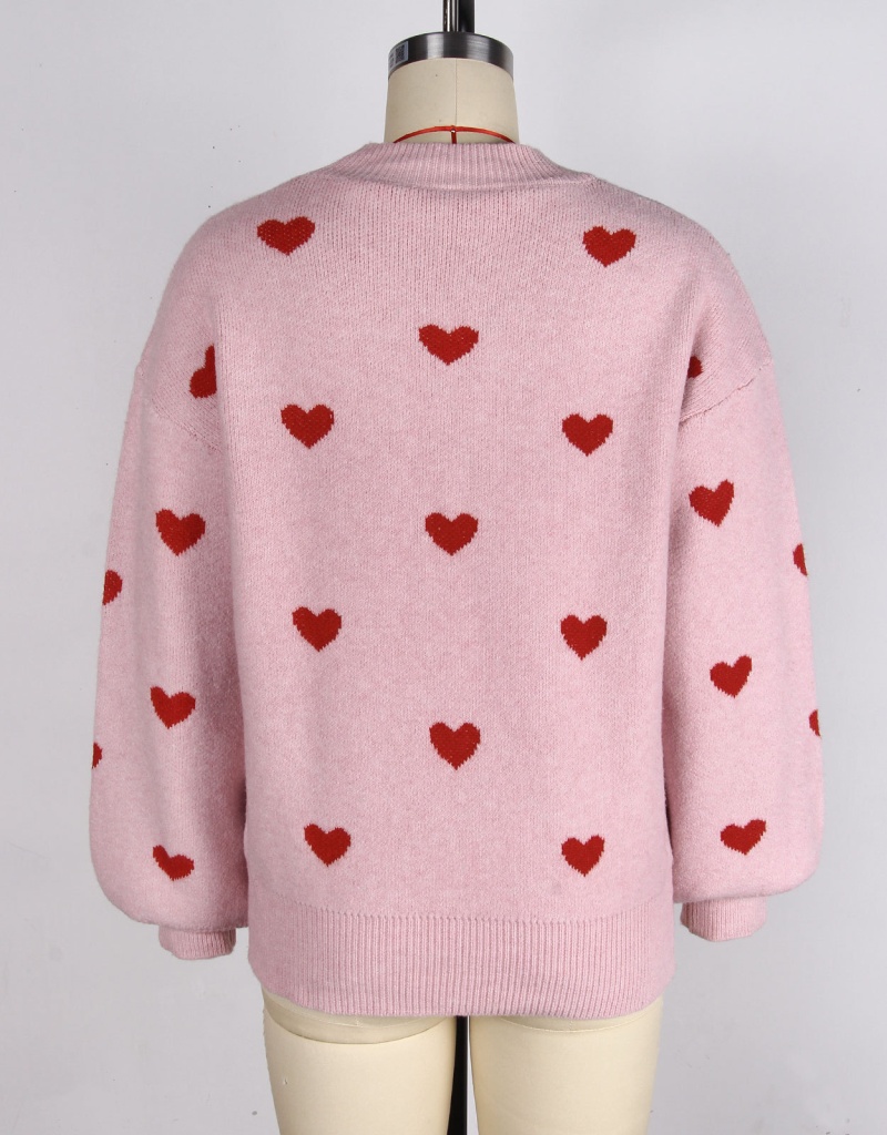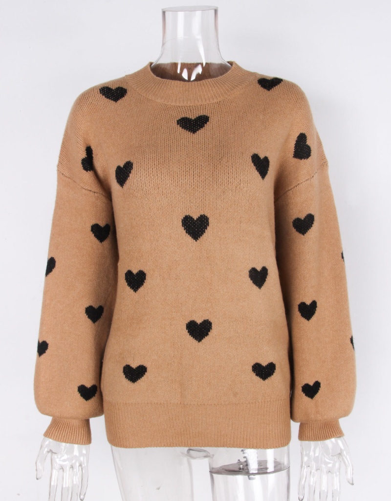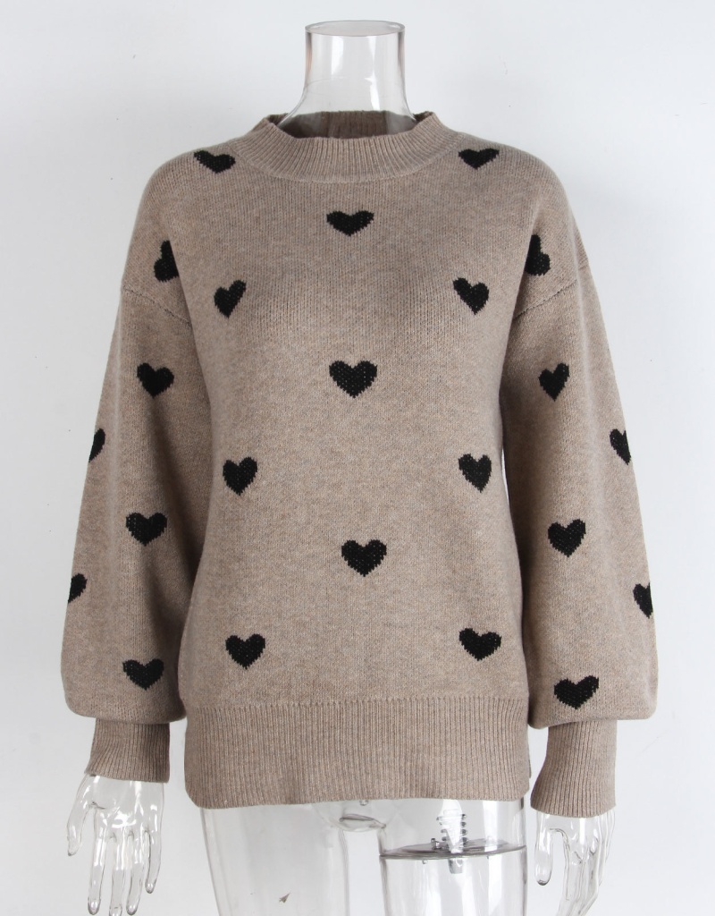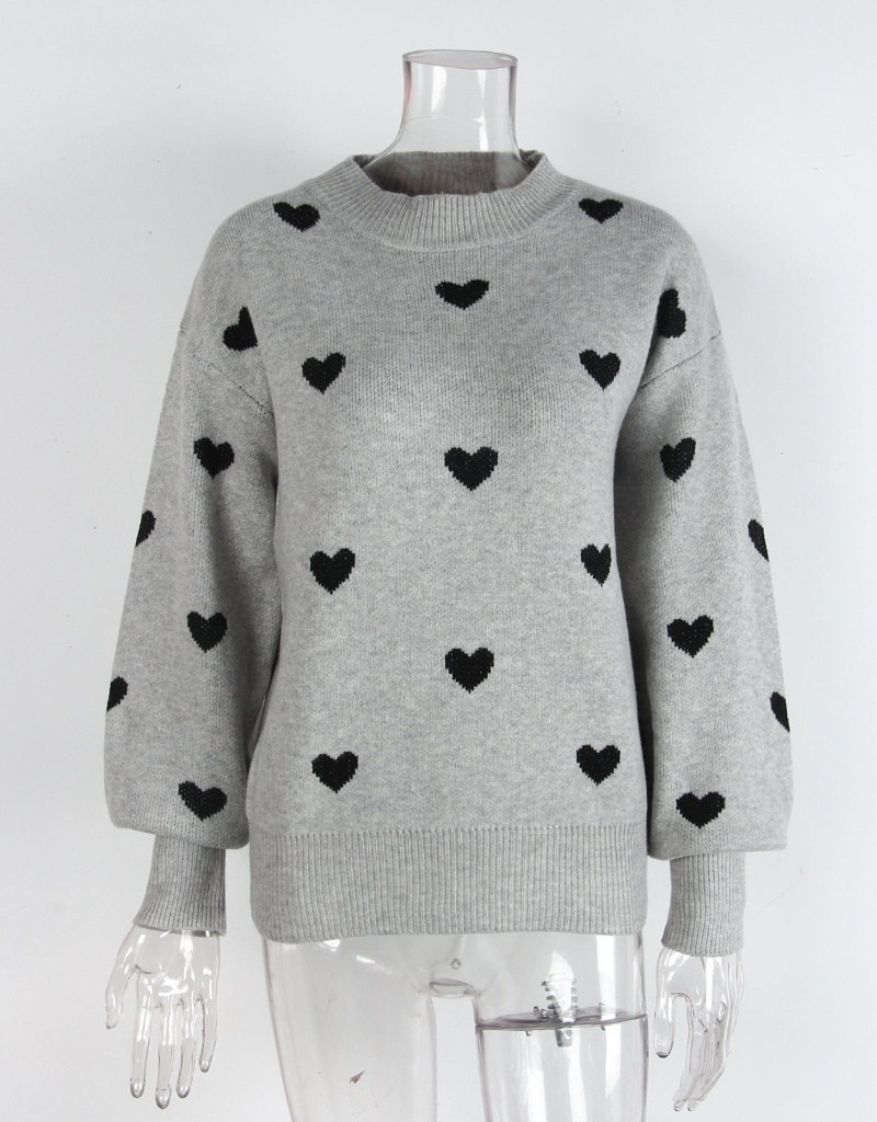 欧美秋冬情人节新款毛衣女跨境时尚爱心提花圆领套头针织衫