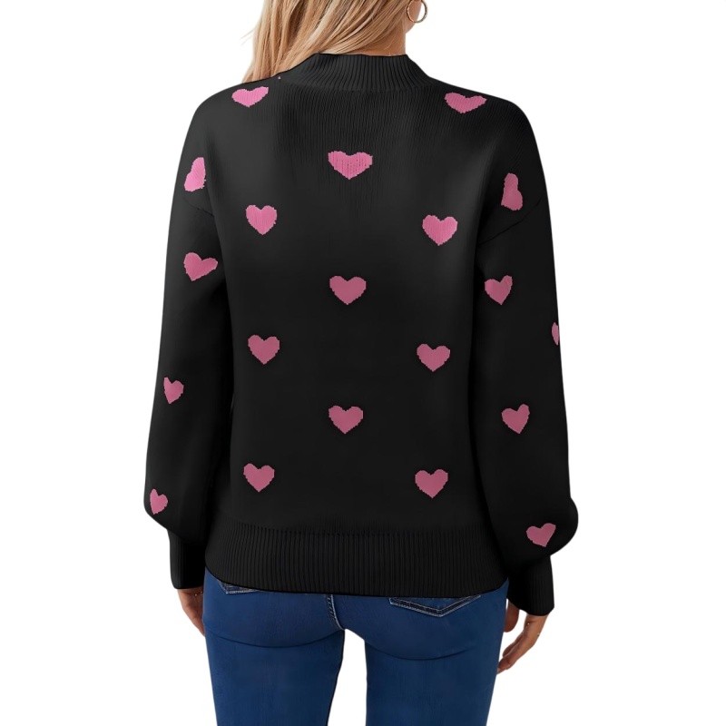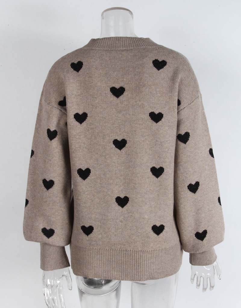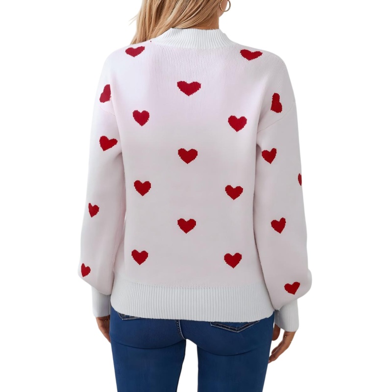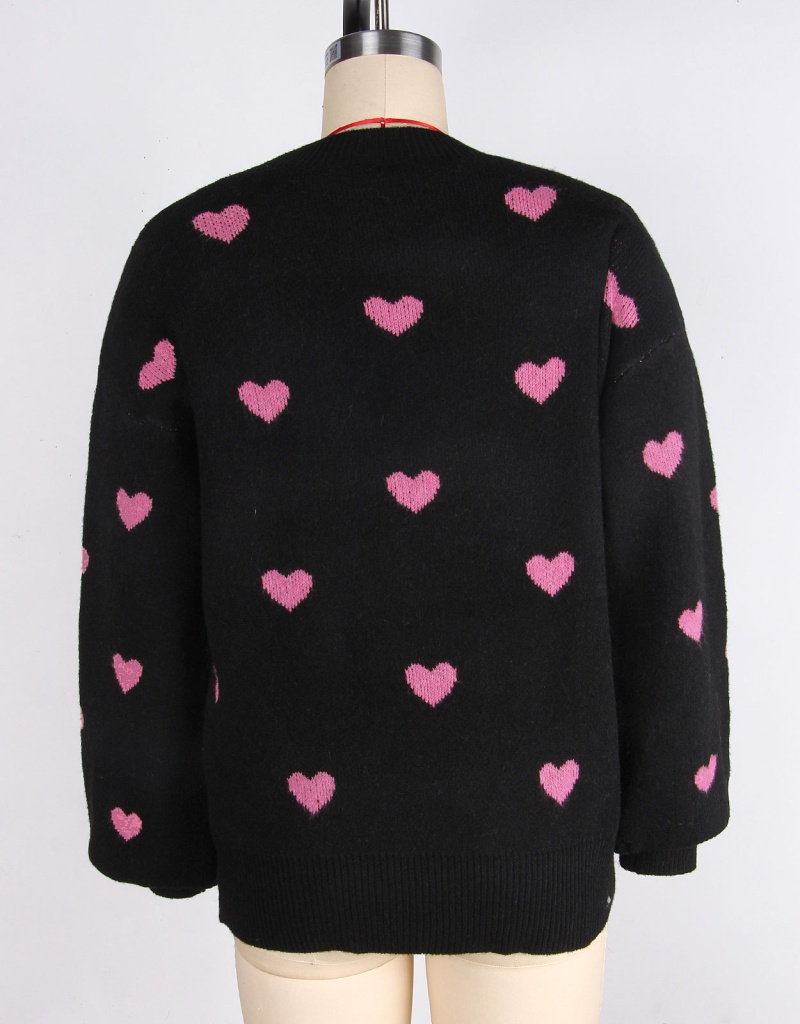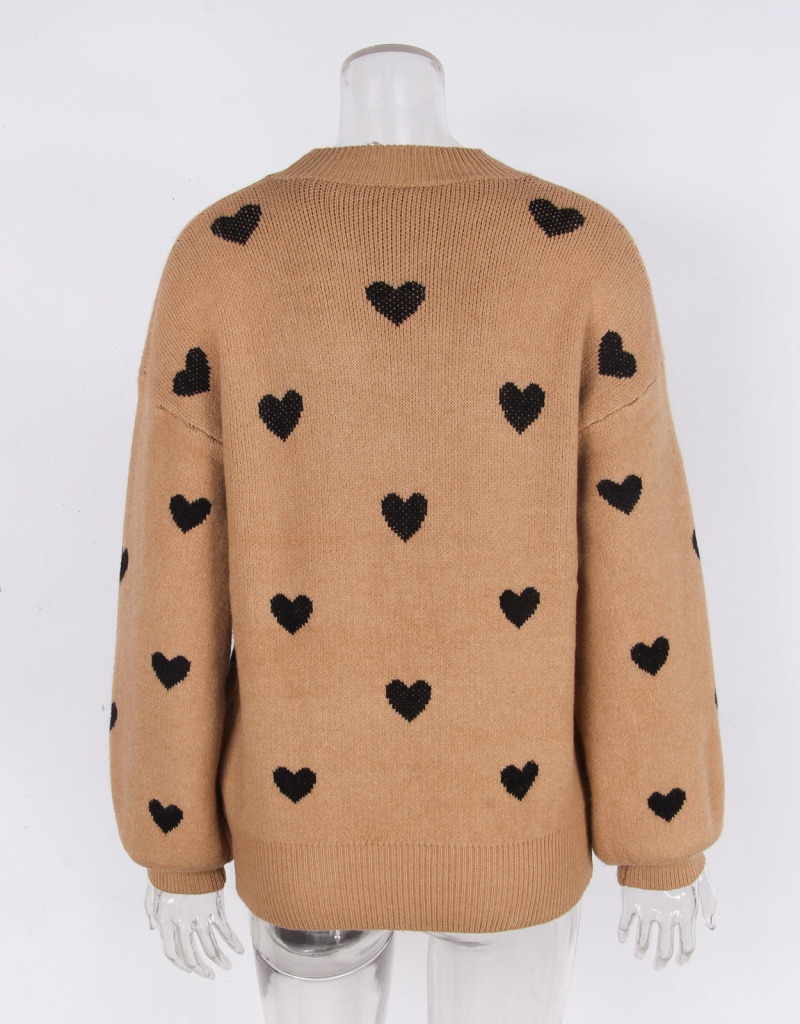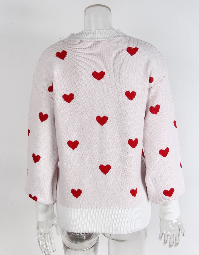 欧美秋冬情人节新款毛衣女跨境时尚爱心提花圆领套头针织衫