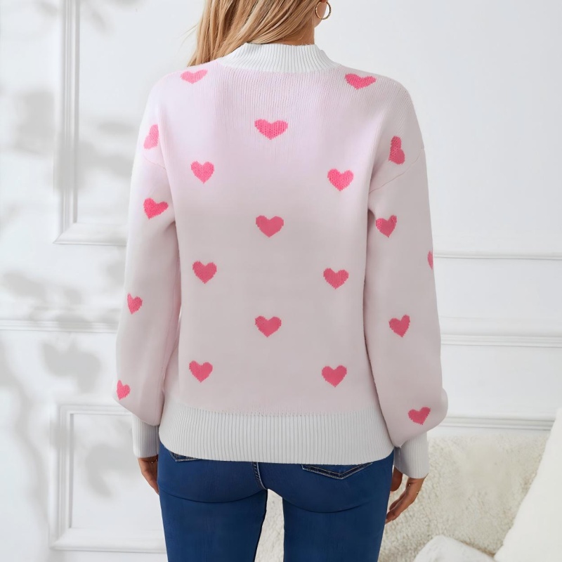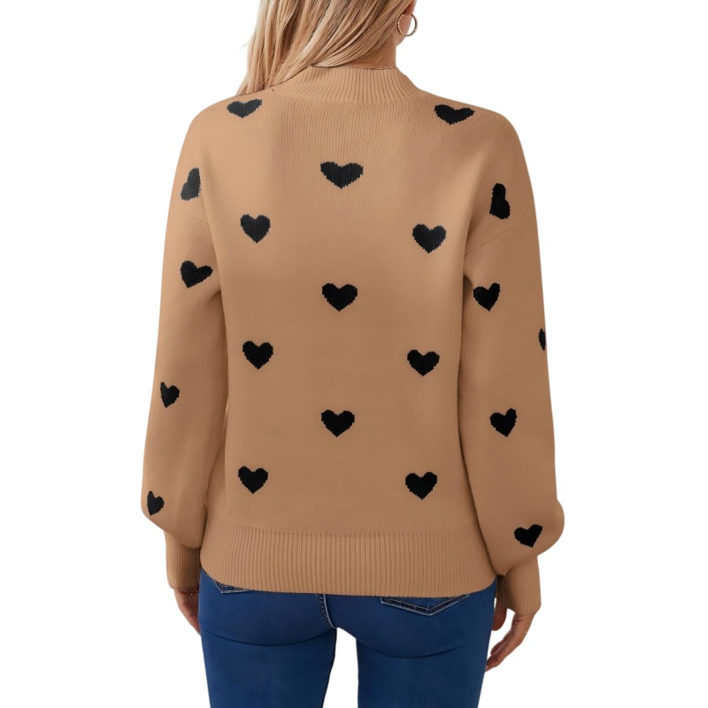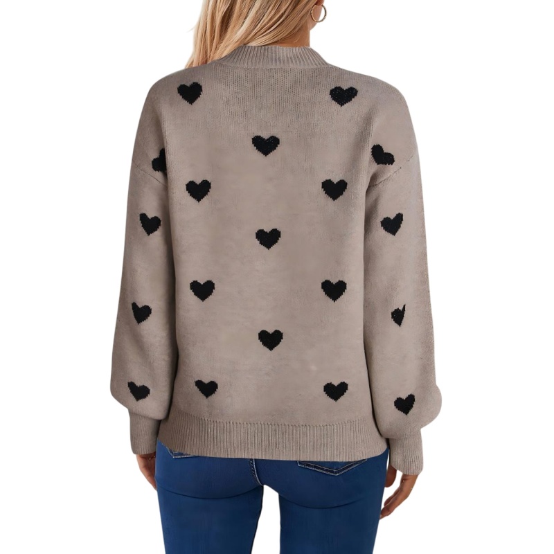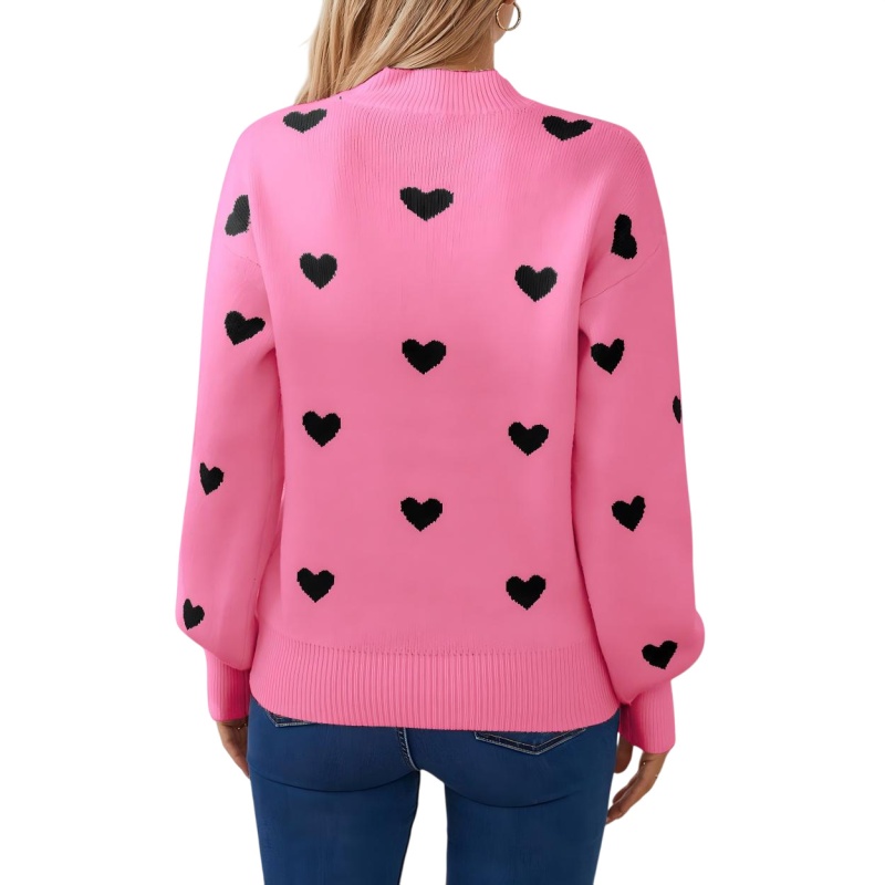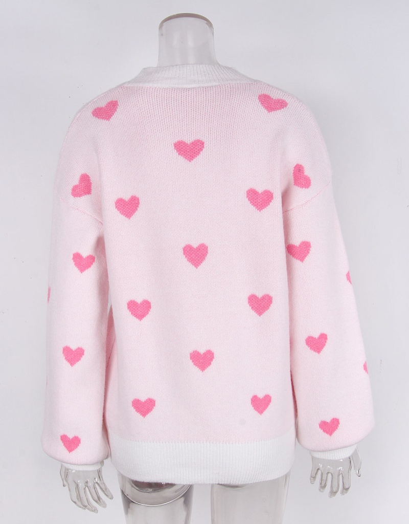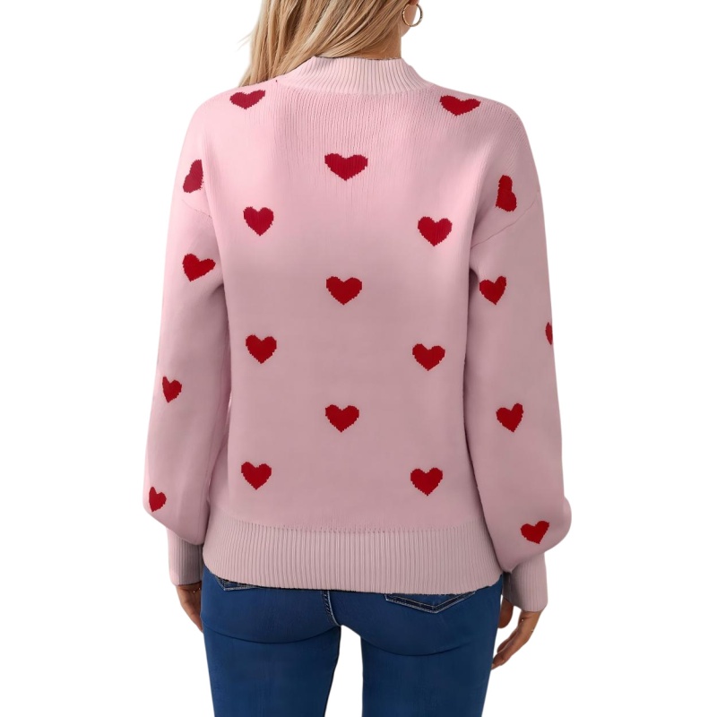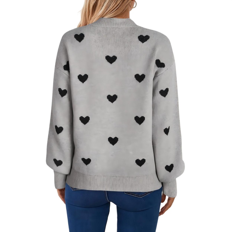 欧美秋冬情人节新款毛衣女跨境时尚爱心提花圆领套头针织衫
