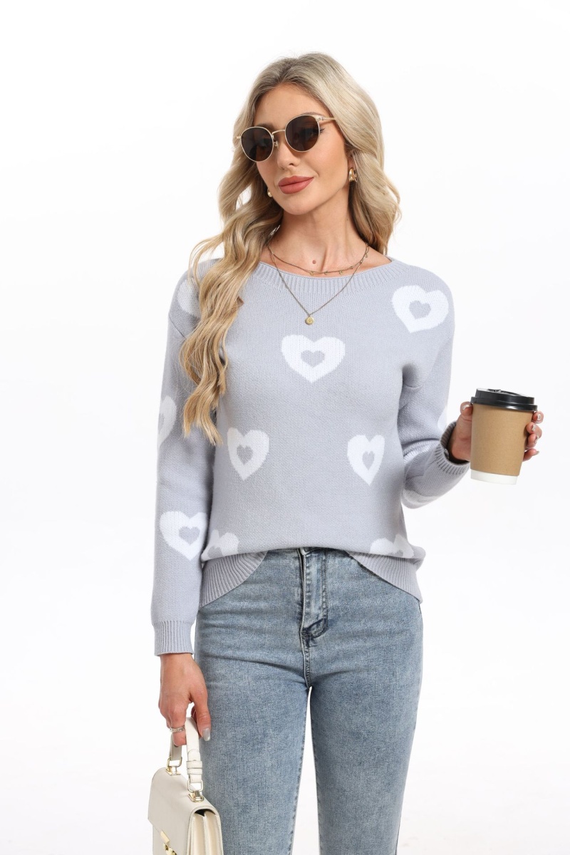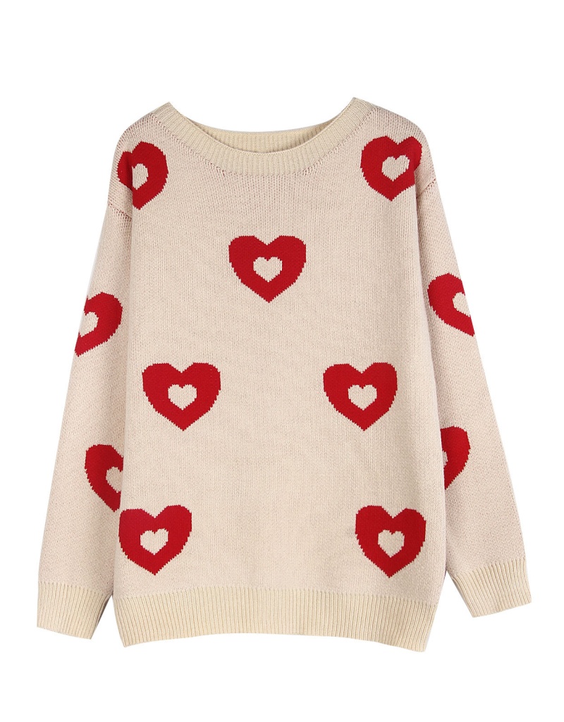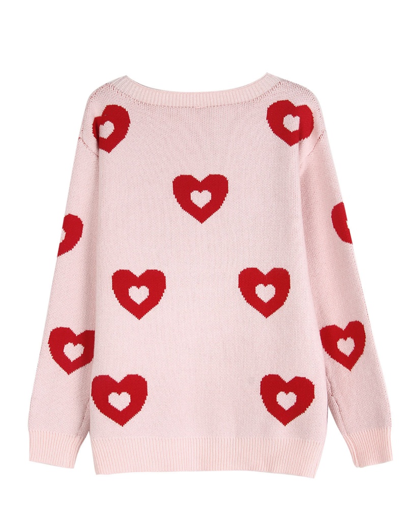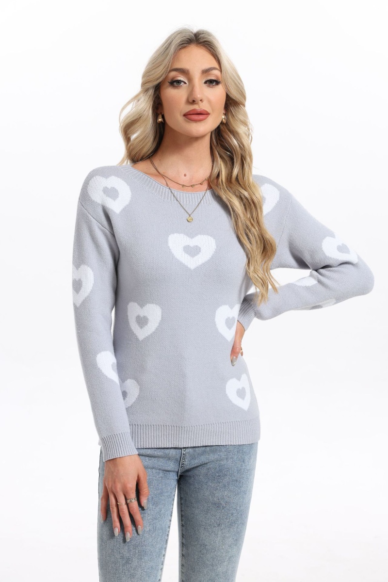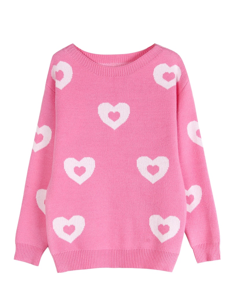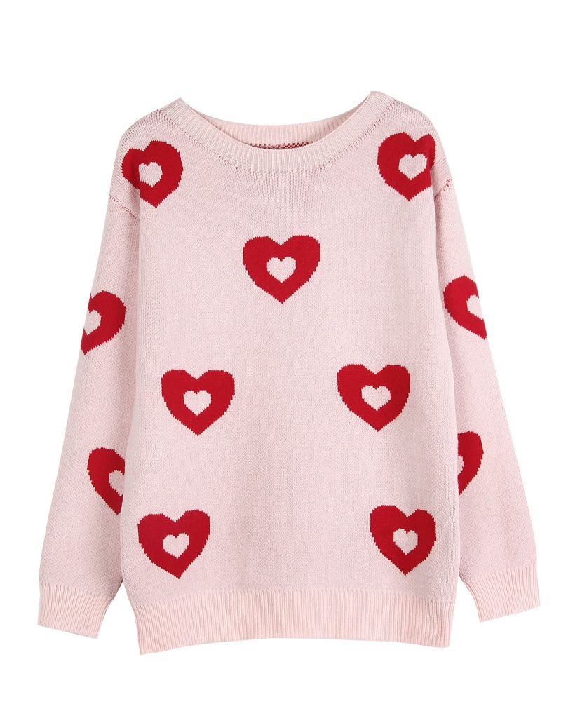 秋冬新款跨境宽松爱心情人节圆领针织衫欧美女士套头毛衣女