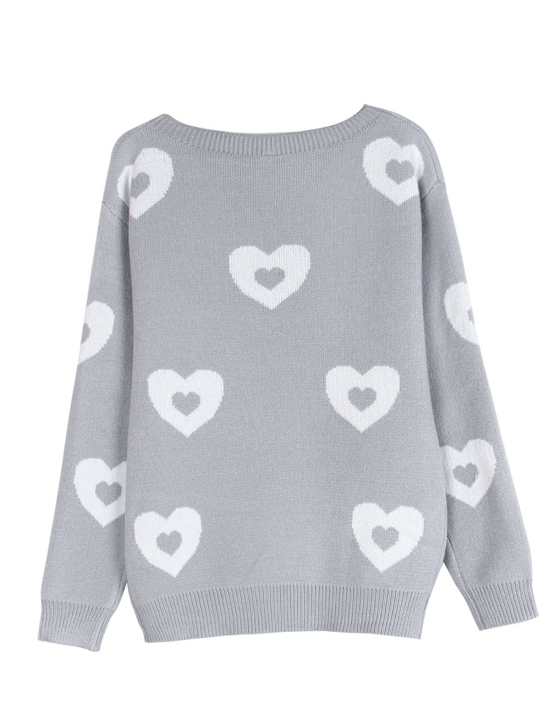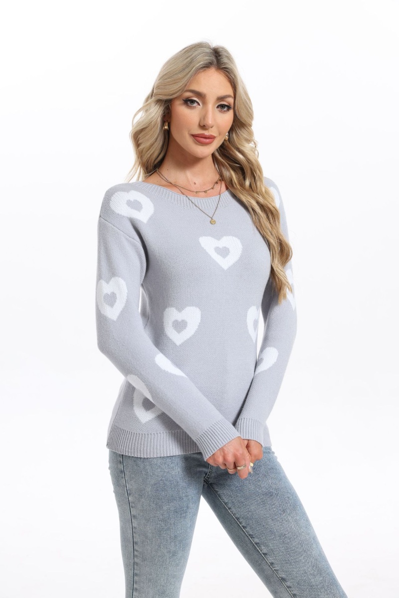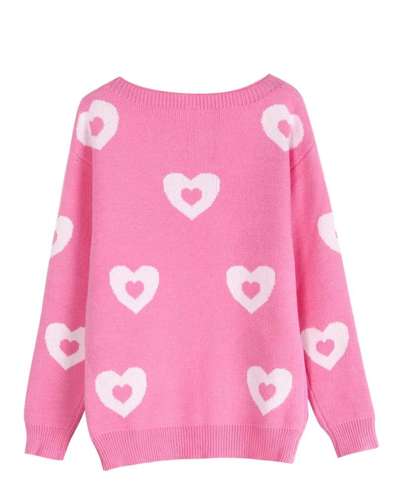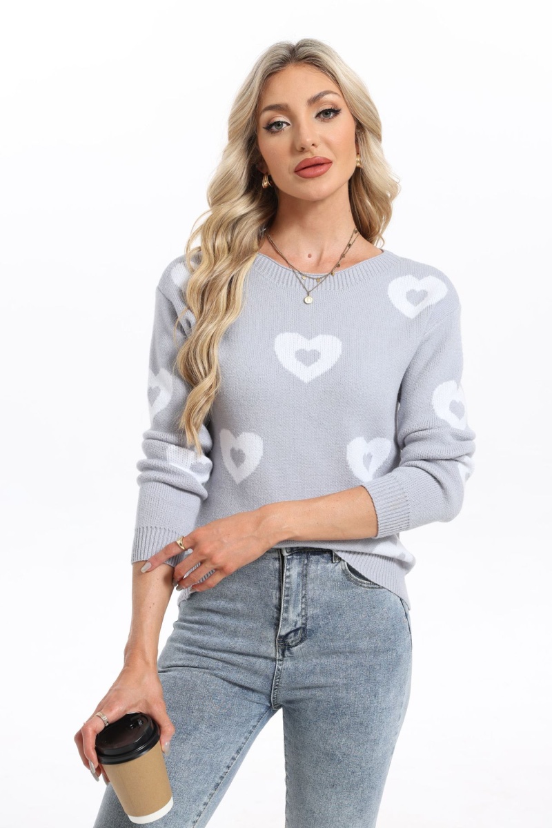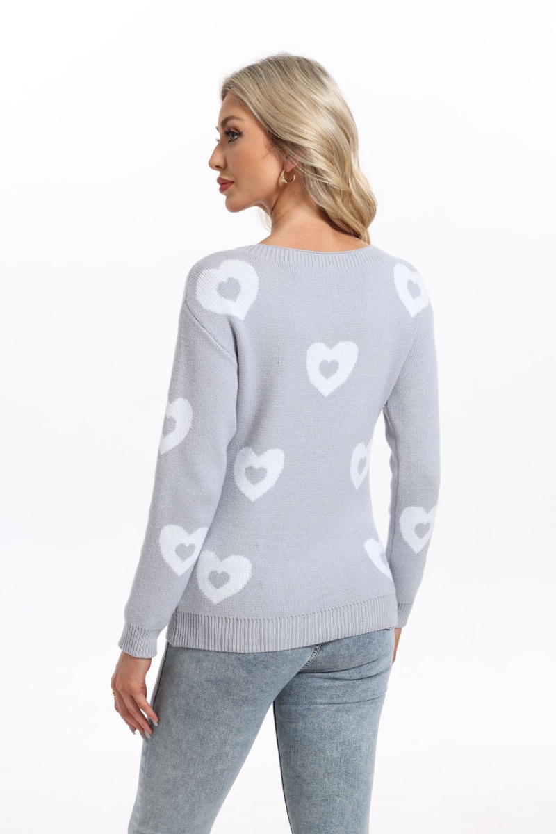 秋冬新款跨境宽松爱心情人节圆领针织衫欧美女士套头毛衣女