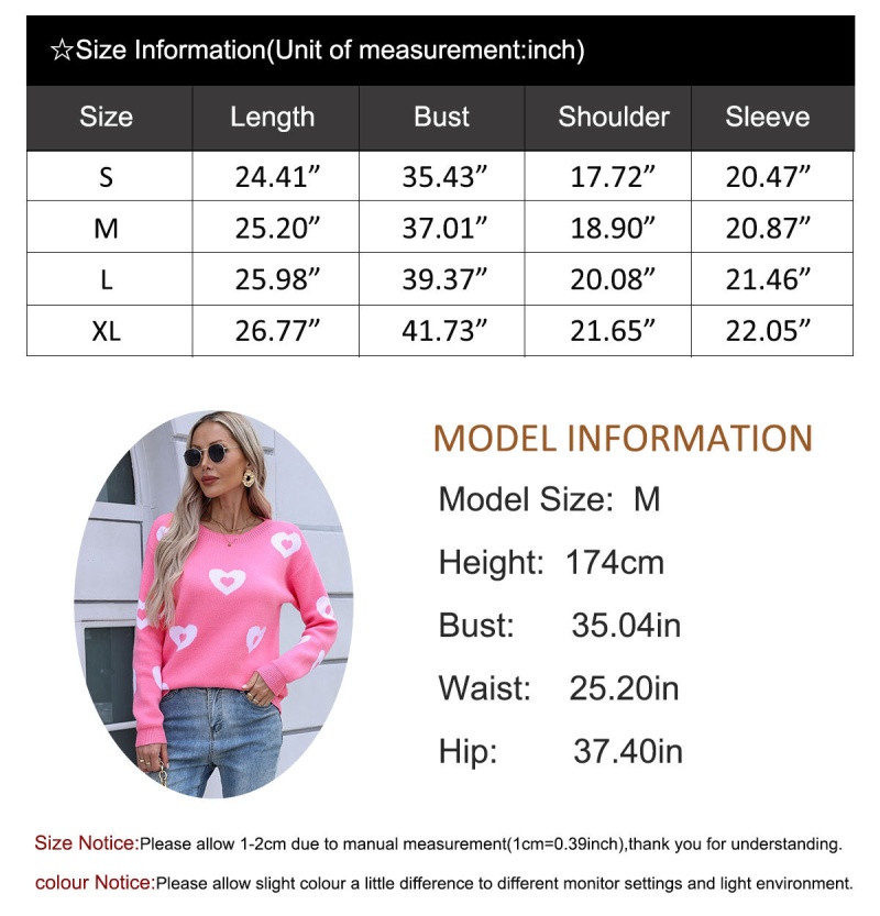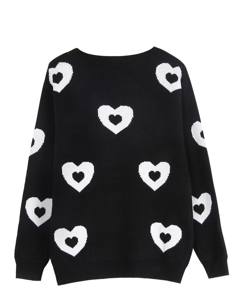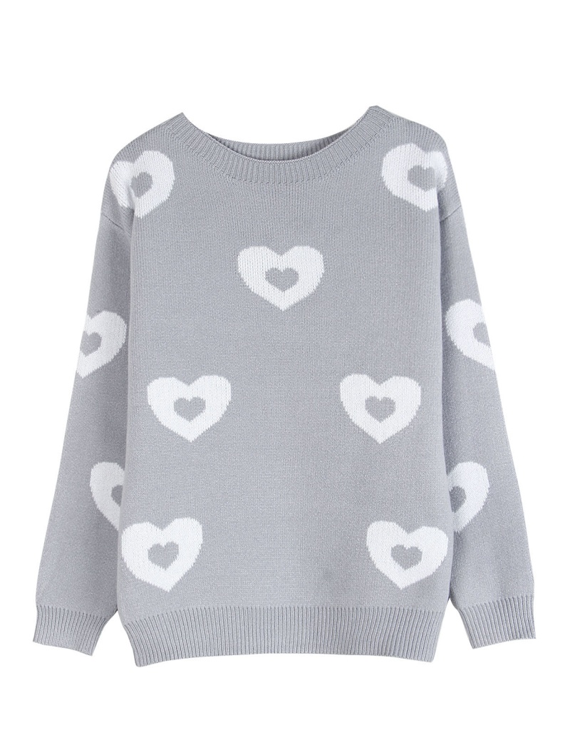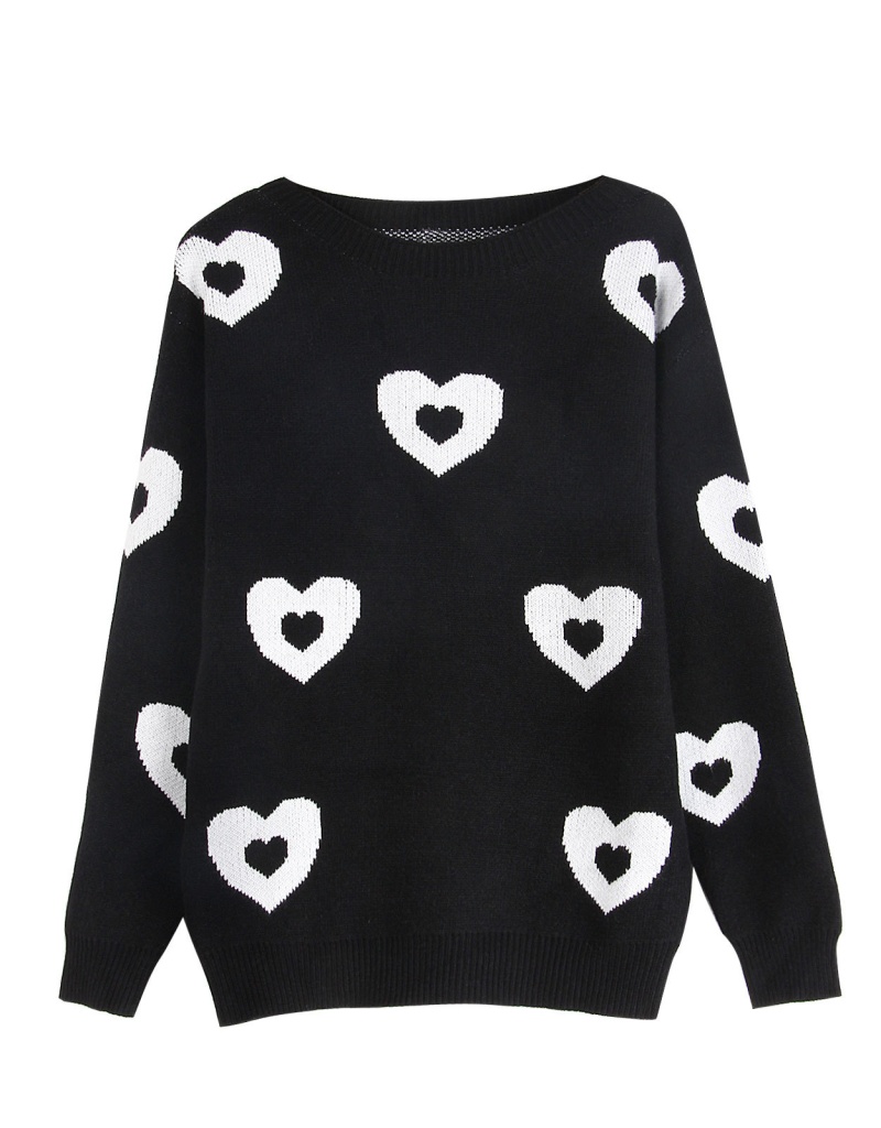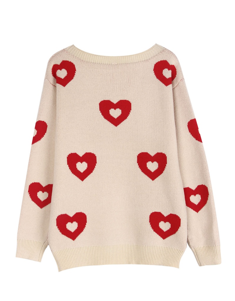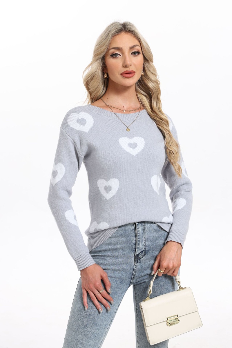 秋冬新款跨境宽松爱心情人节圆领针织衫欧美女士套头毛衣女