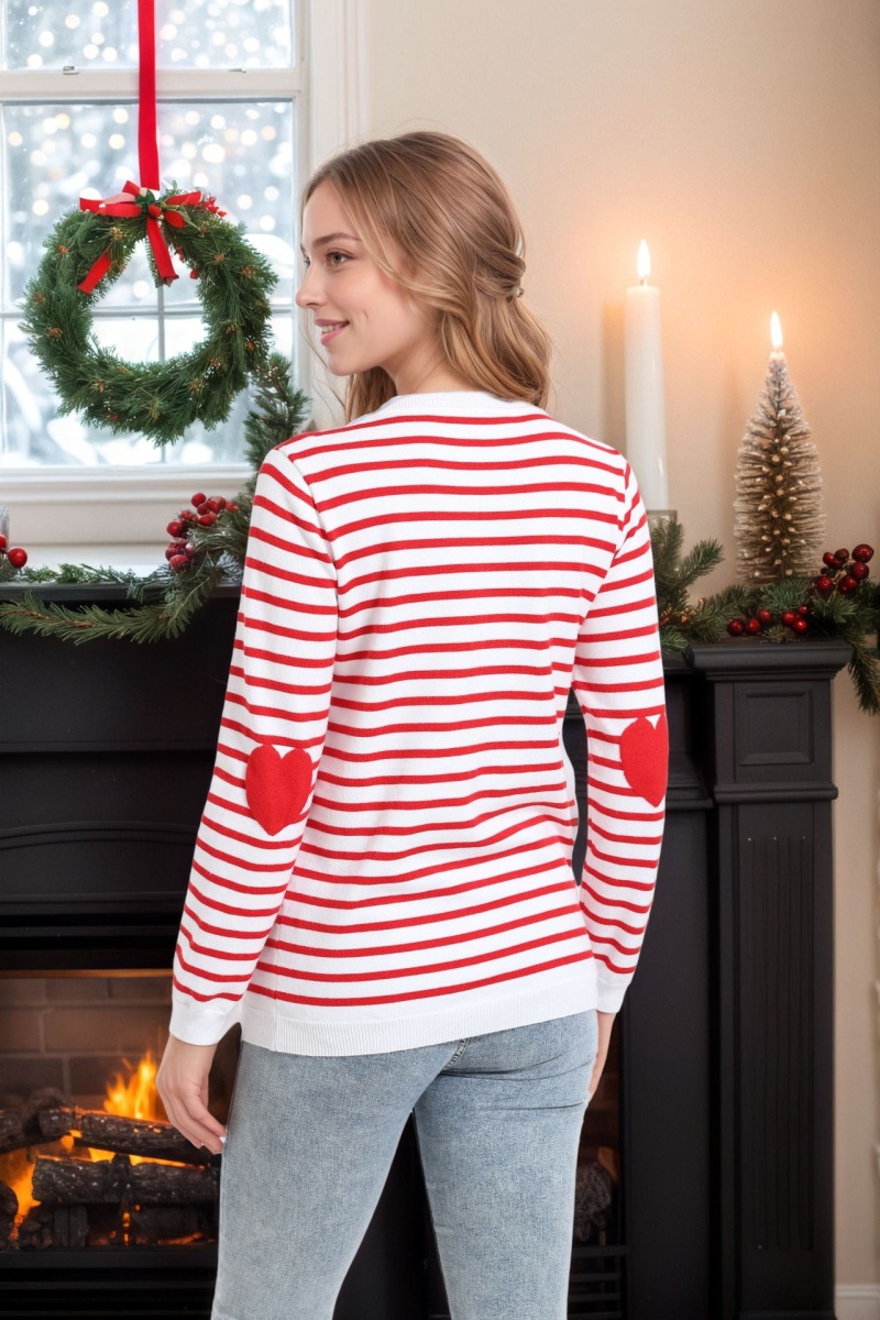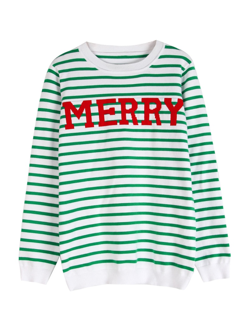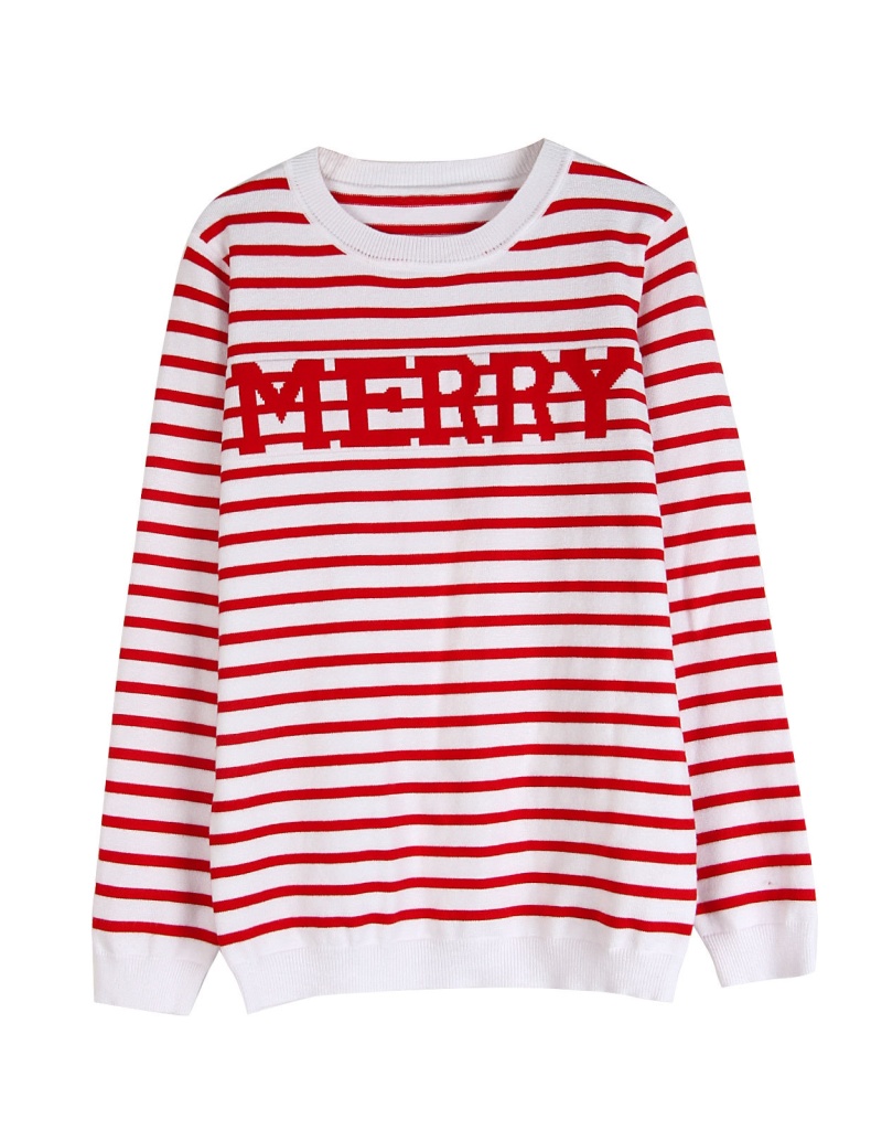 欧美秋冬新款毛衣女装跨境圣诞节条纹字母撞色套头针织衫女