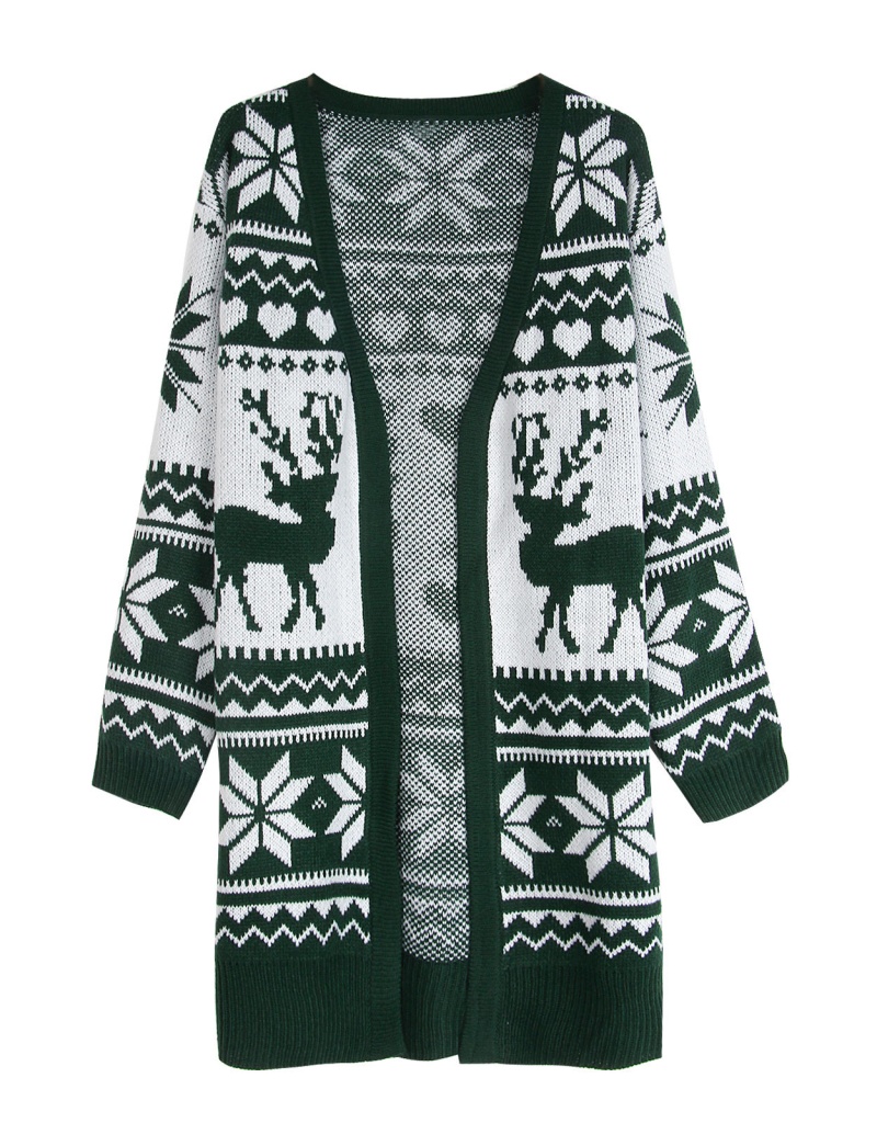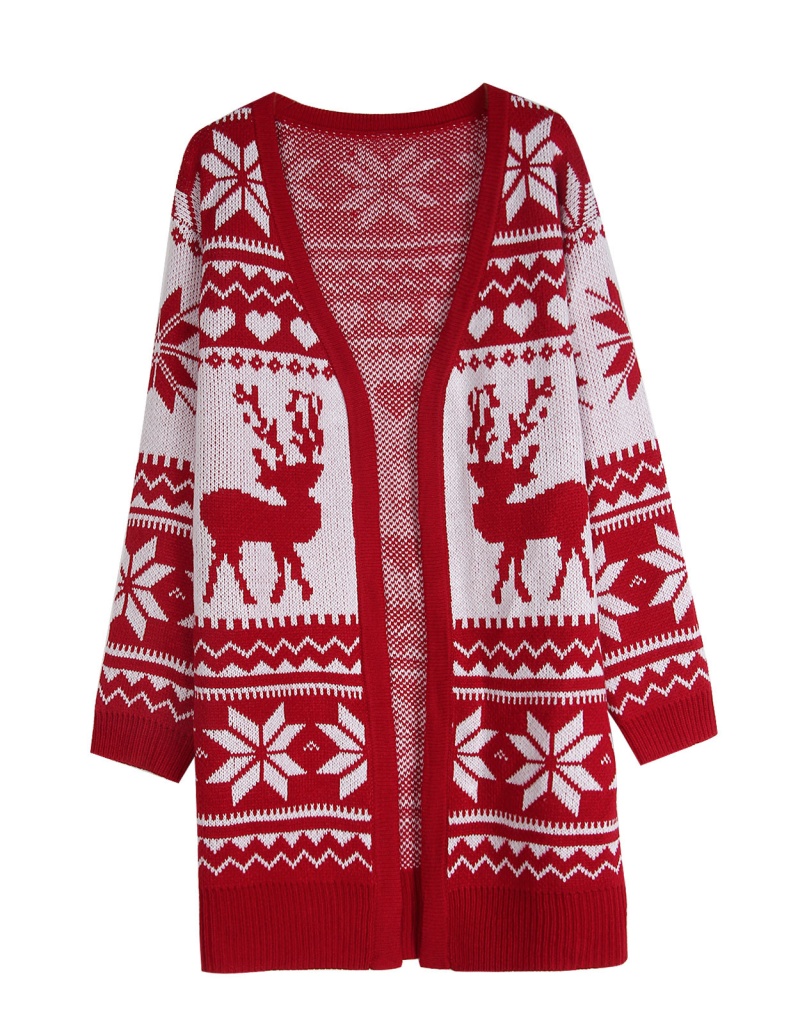 欧美外贸秋冬毛衣女跨境圣诞节麋鹿雪花刺绣针织开衫外套女