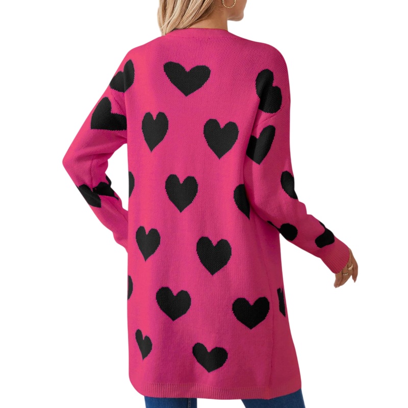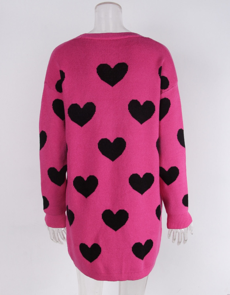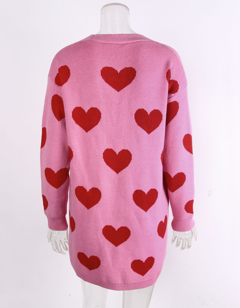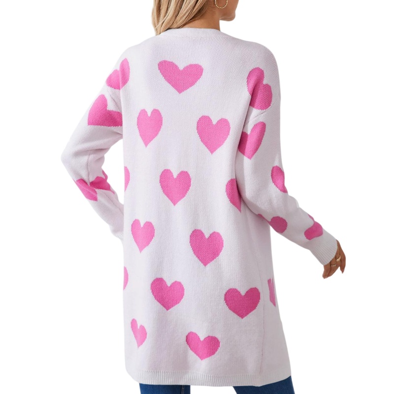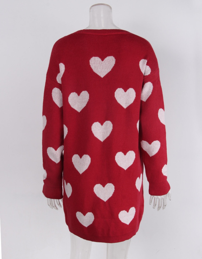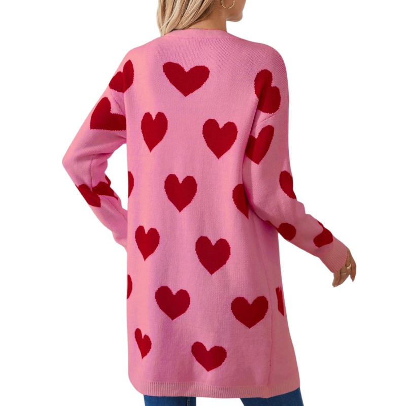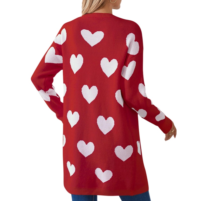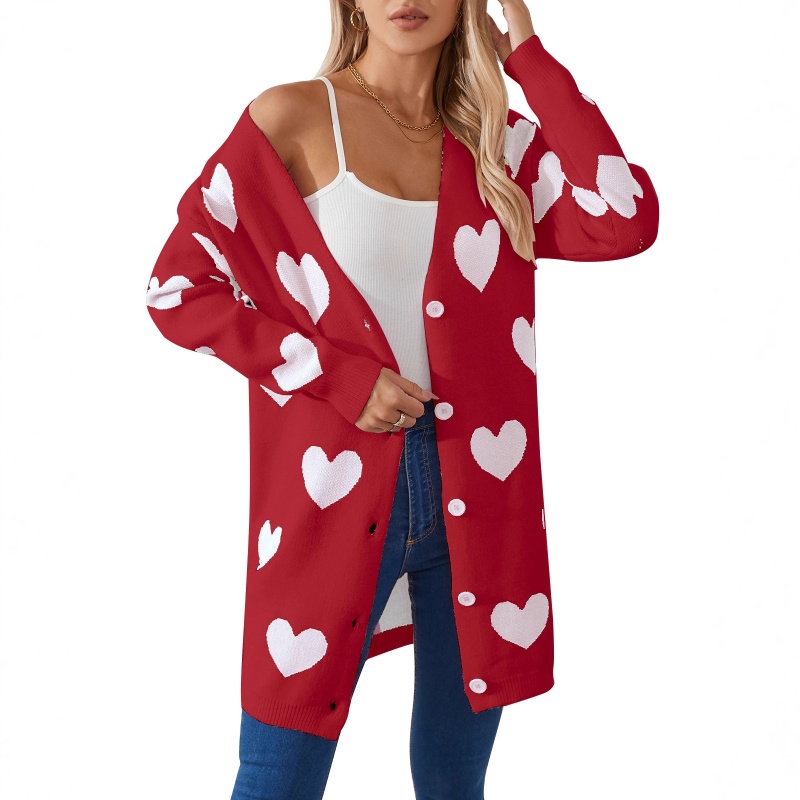 2025欧美新款情人节爱心针织开衫V领纽扣中长款外套毛衣女