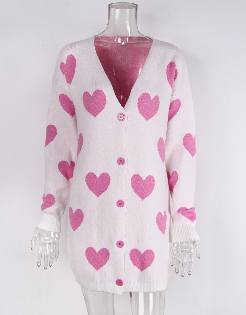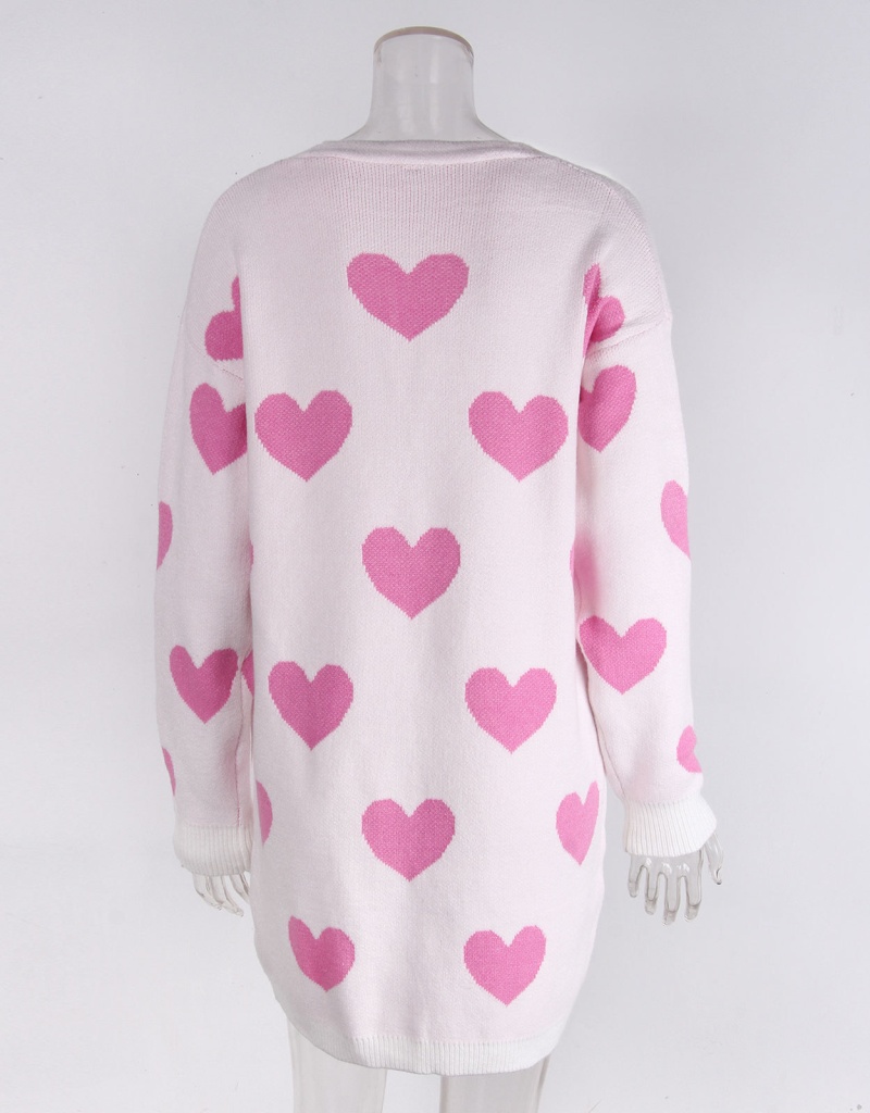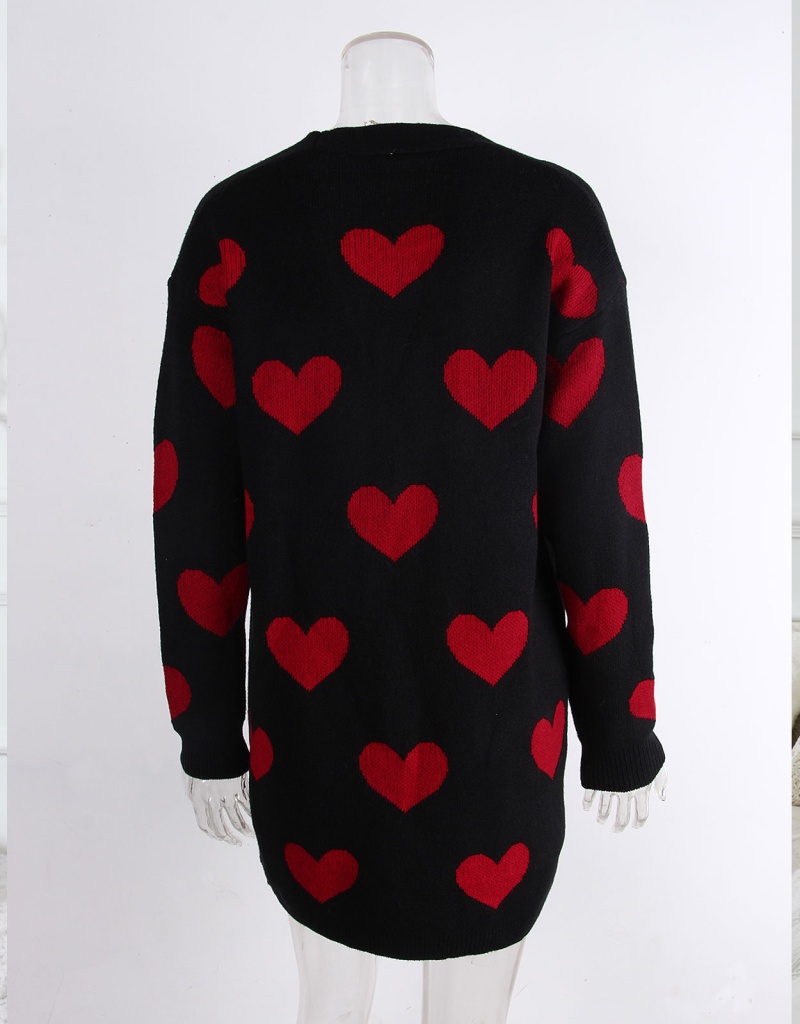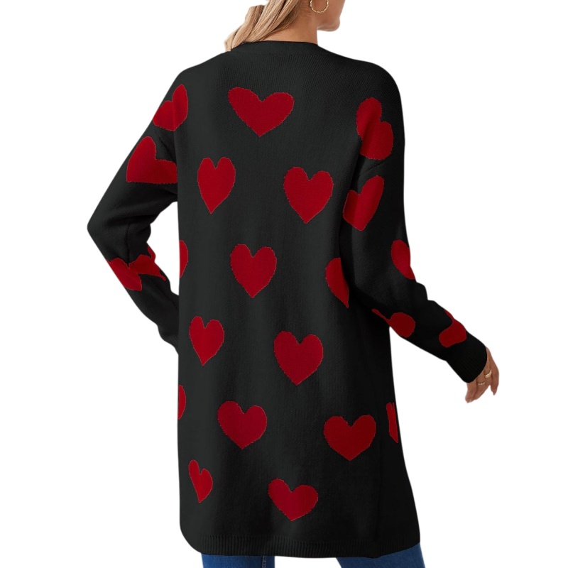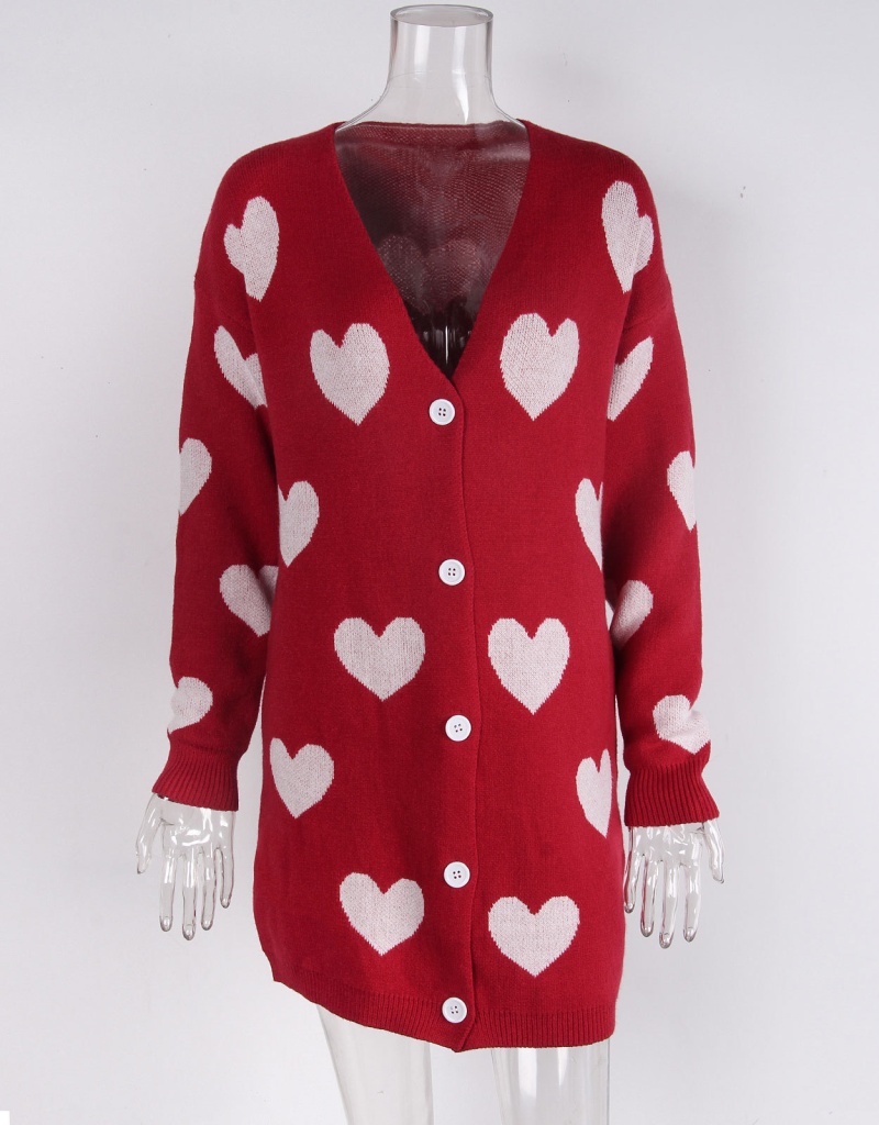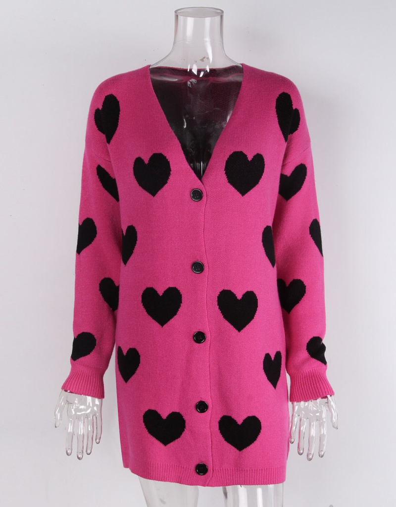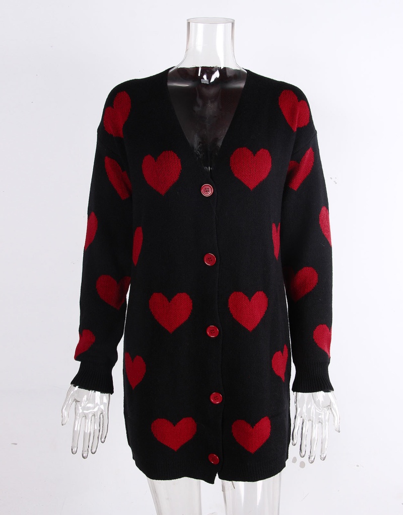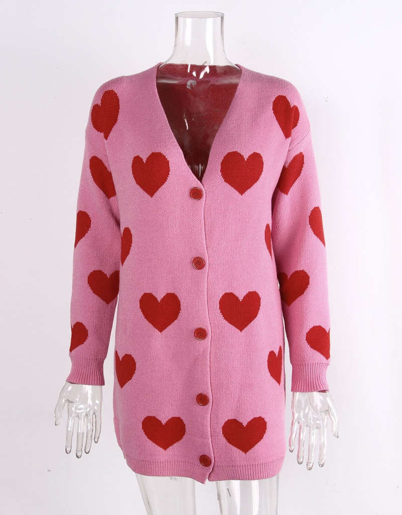 2025欧美新款情人节爱心针织开衫V领纽扣中长款外套毛衣女