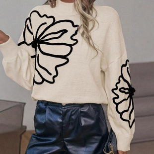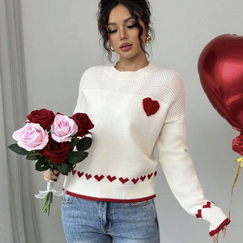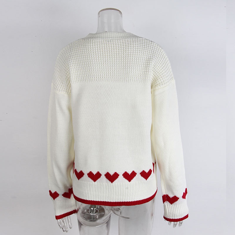 秋冬新款欧美纯情侣爱心毛衣女跨境宽松套头圆领百搭针织衫