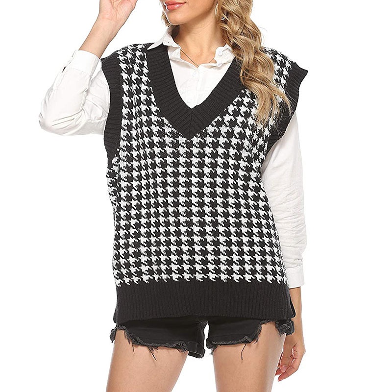 韩版网红辣妹穿搭上衣马甲纯欲气质小个子拼接棋盘针织背心上衣女