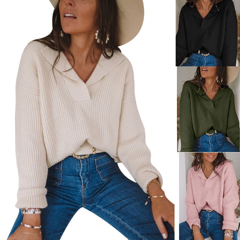 洋洋秋冬跨境欧美半高领宽松纯色长袖粗针侧开叉针织毛衣女