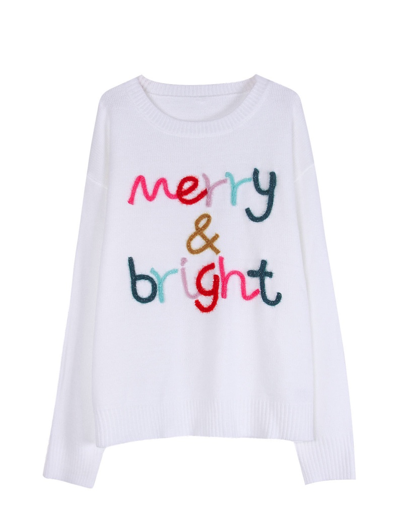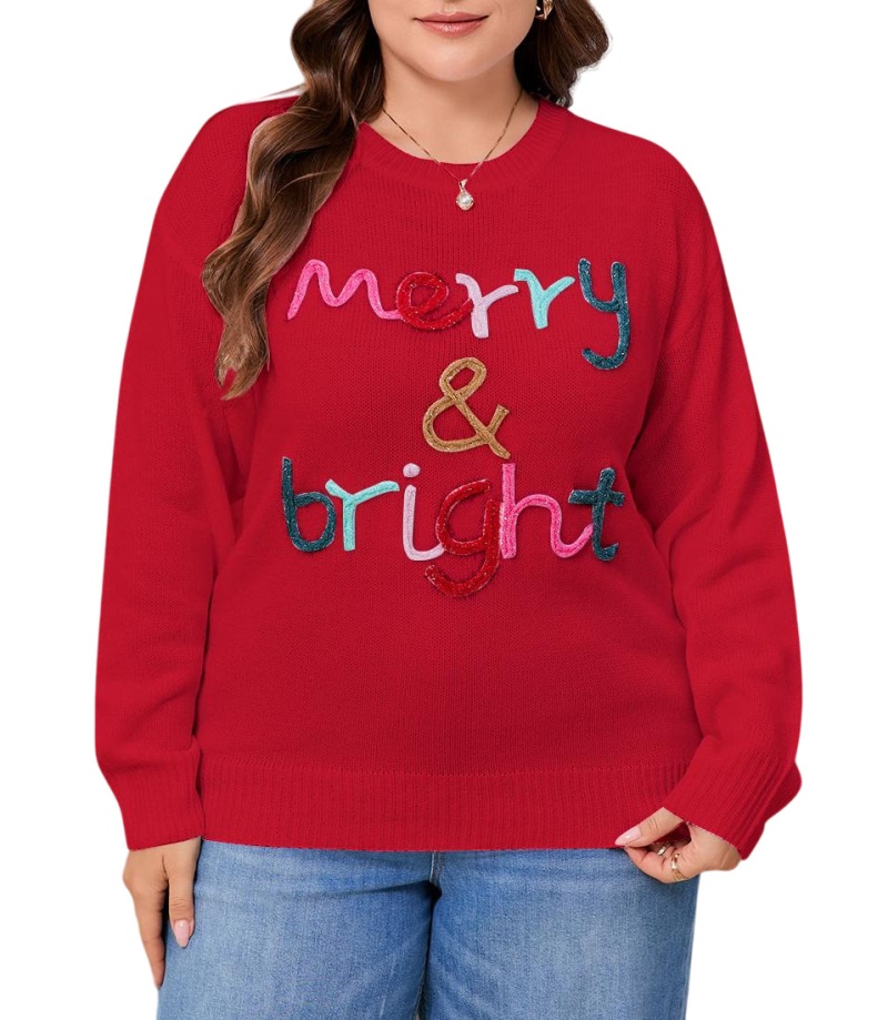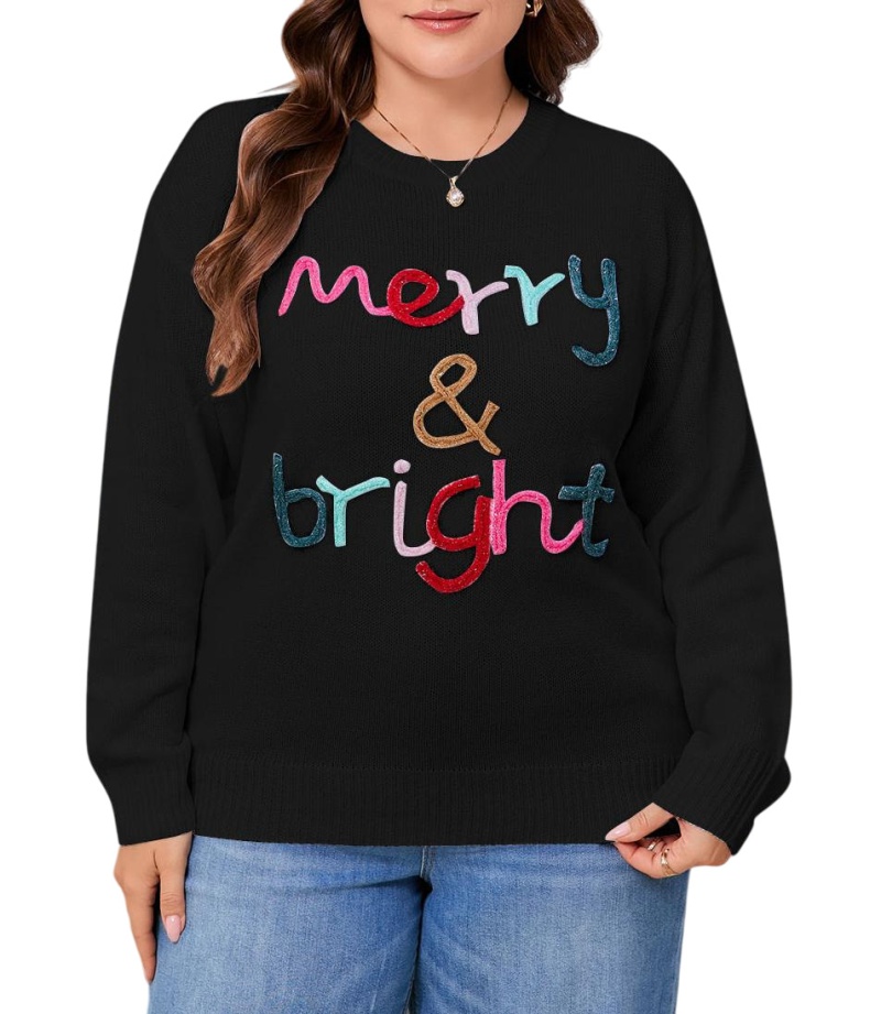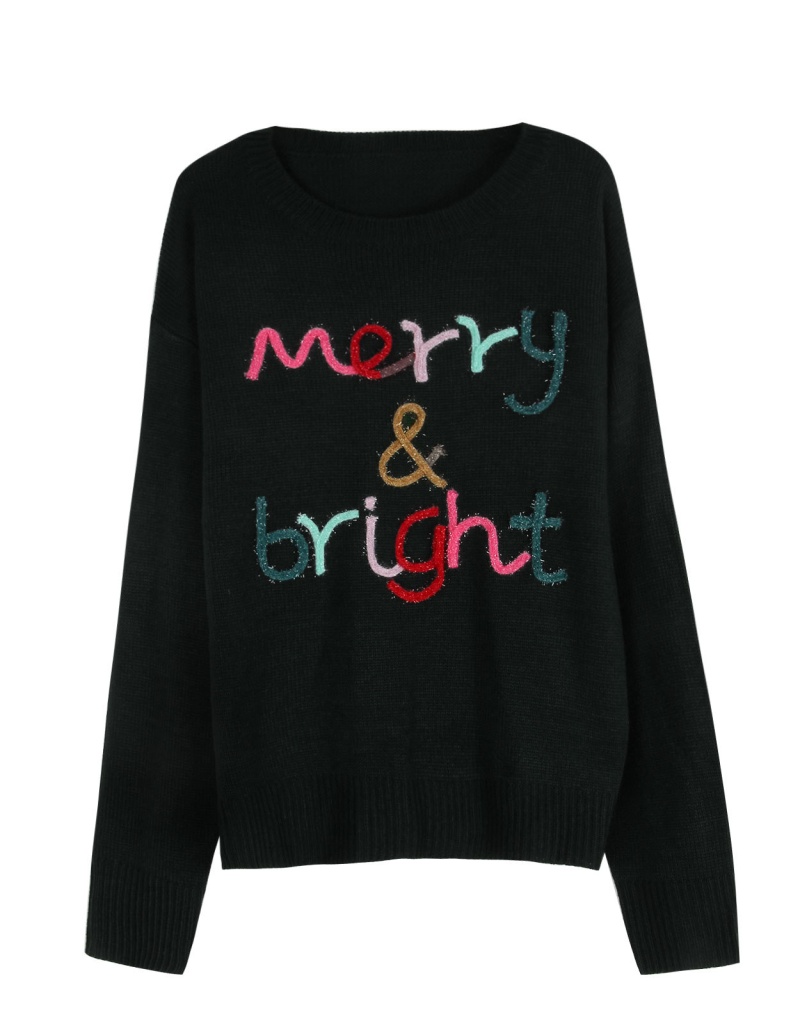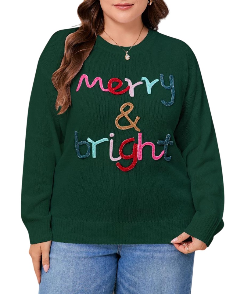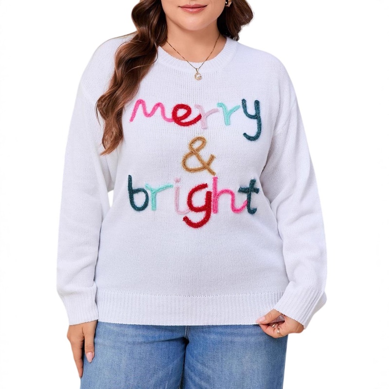 大码宽松欧美秋冬新款毛衣女跨境针织字母提花圆领套头上衣