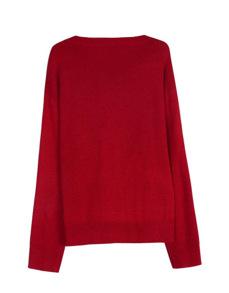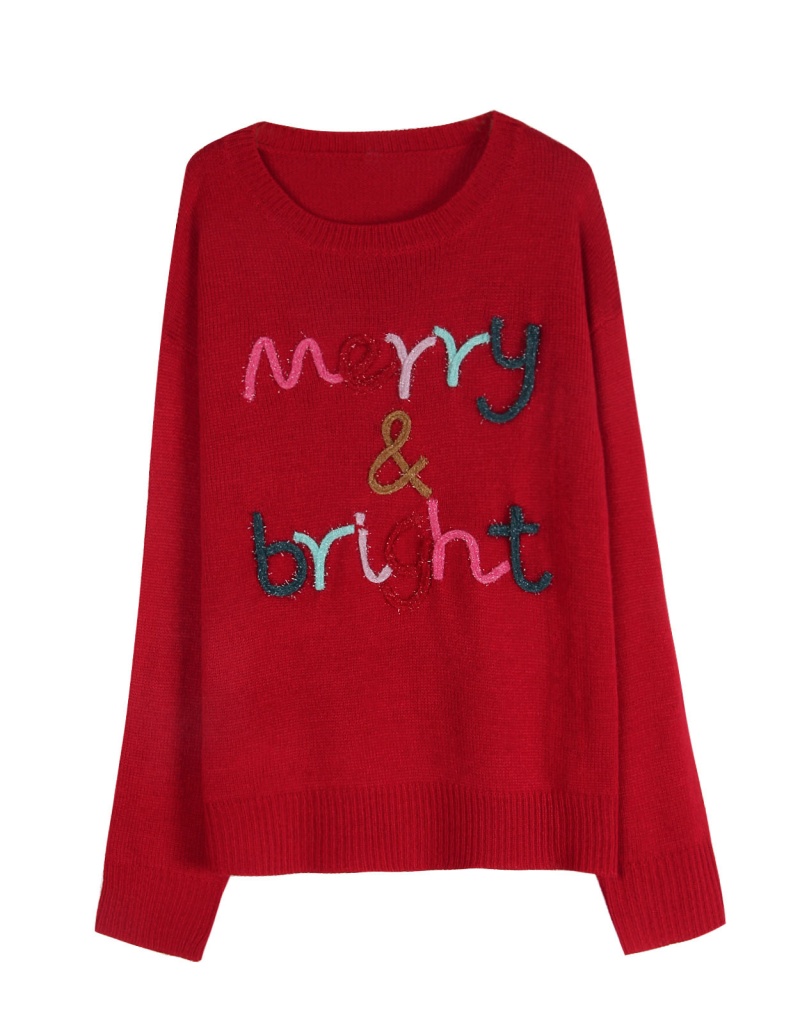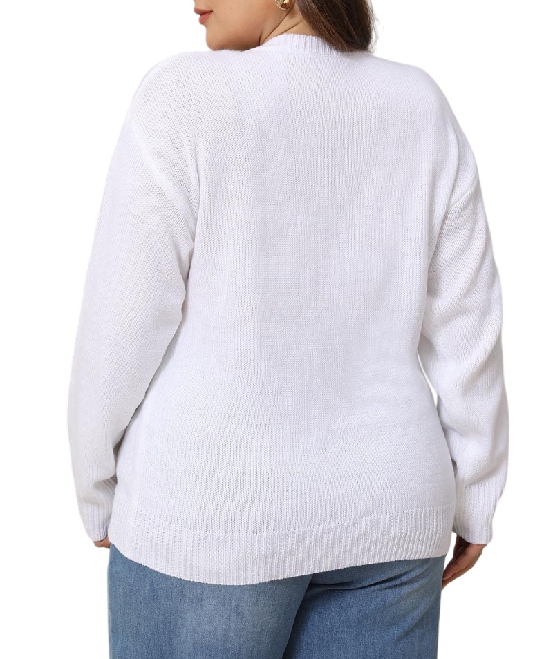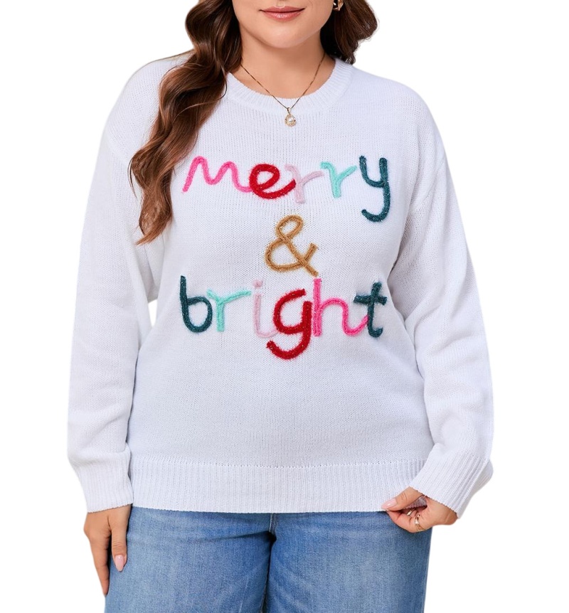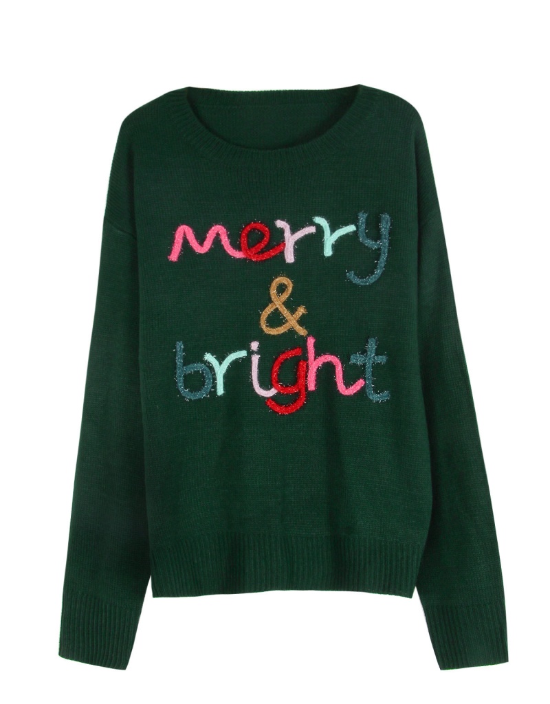 大码宽松欧美秋冬新款毛衣女跨境针织字母提花圆领套头上衣