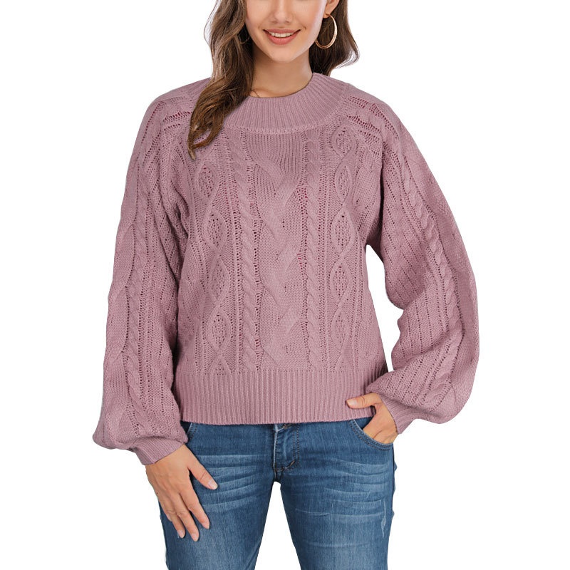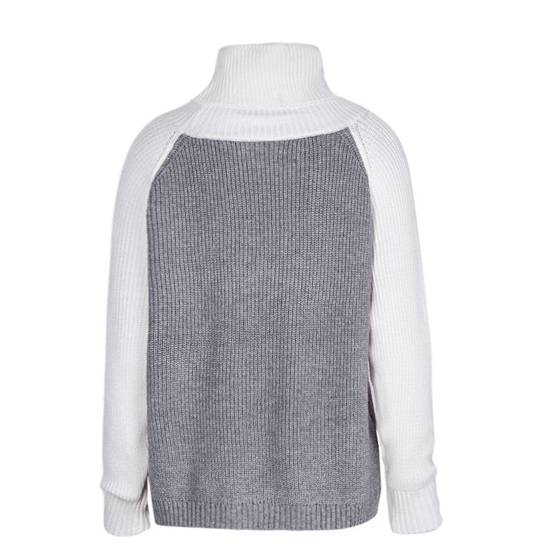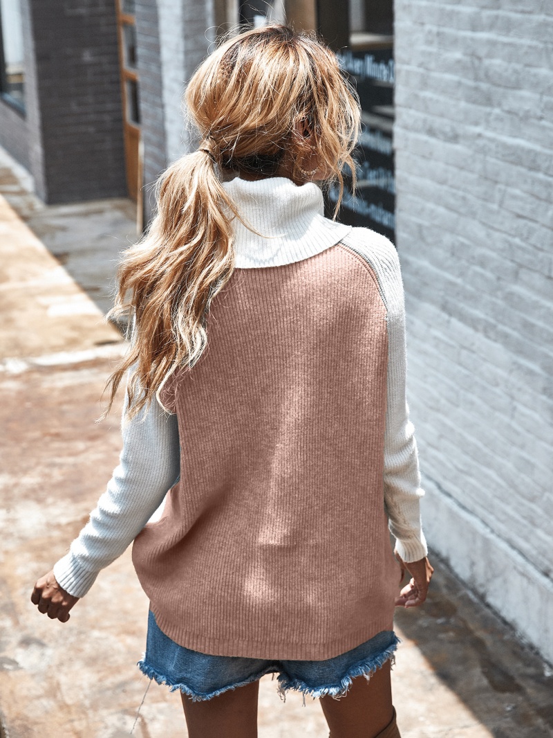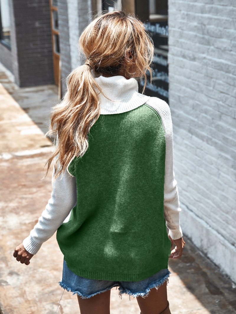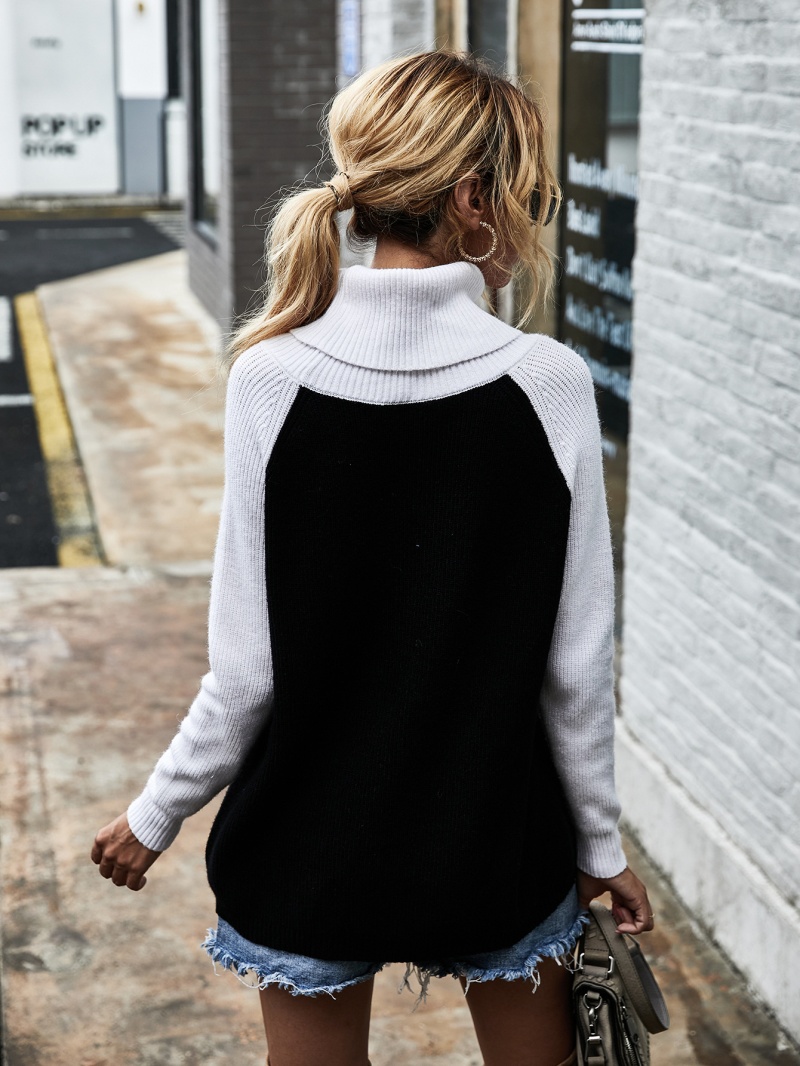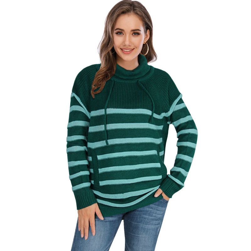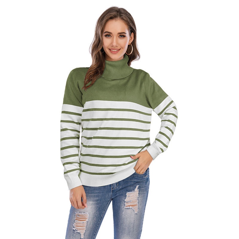 秋冬跨境新款欧美毛衣女装宽松大码高领套头撞色毛衣针织衫