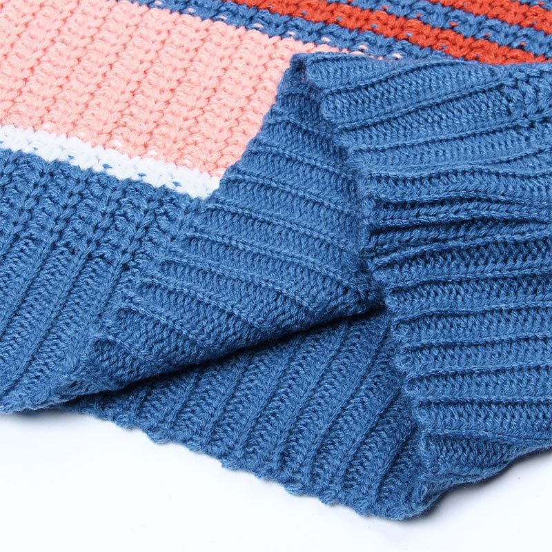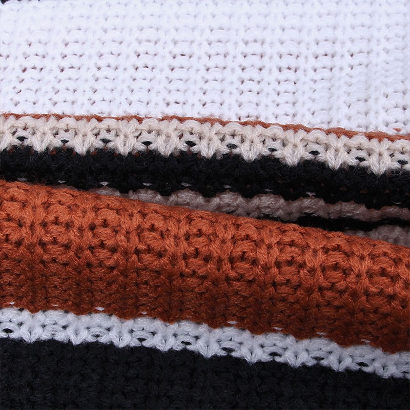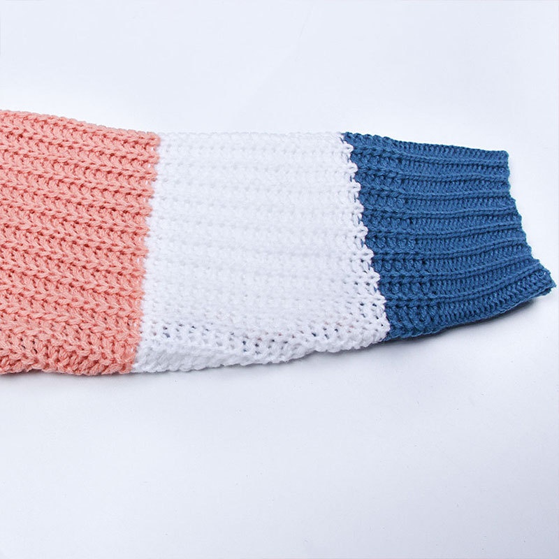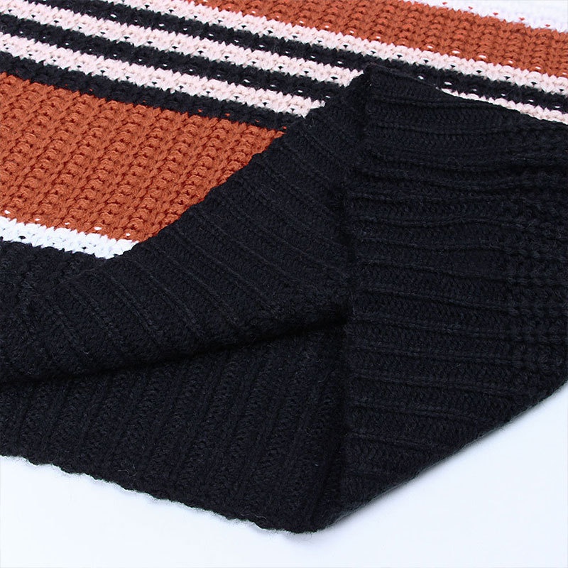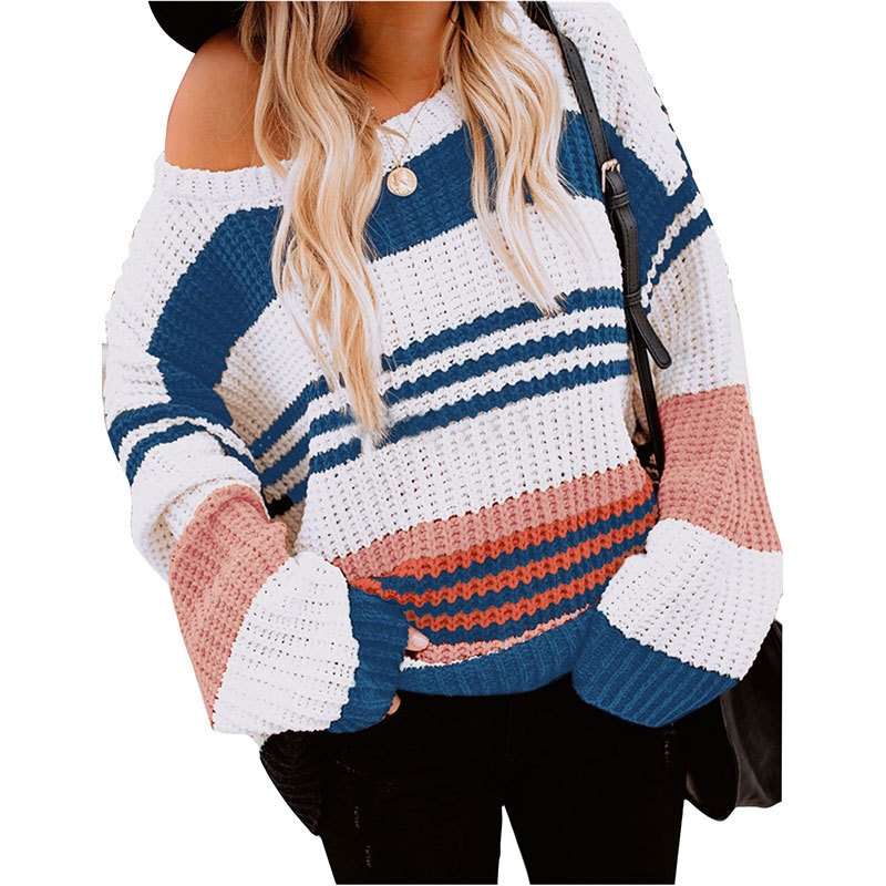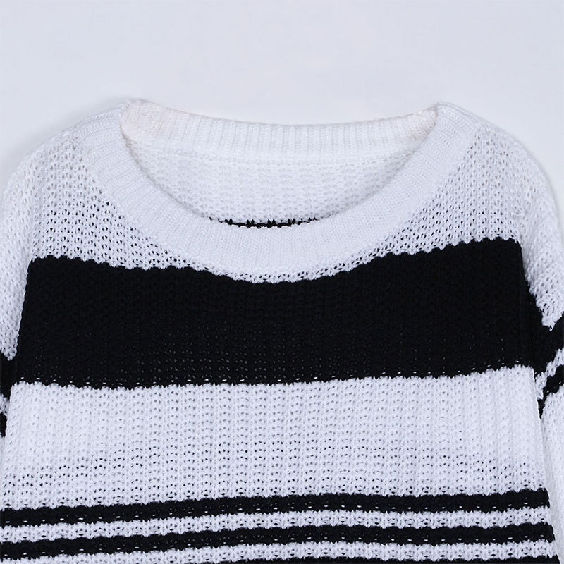 跨境秋冬新款欧美毛衣女装休闲宽松圆领条纹拼接撞色针织衫毛衣女