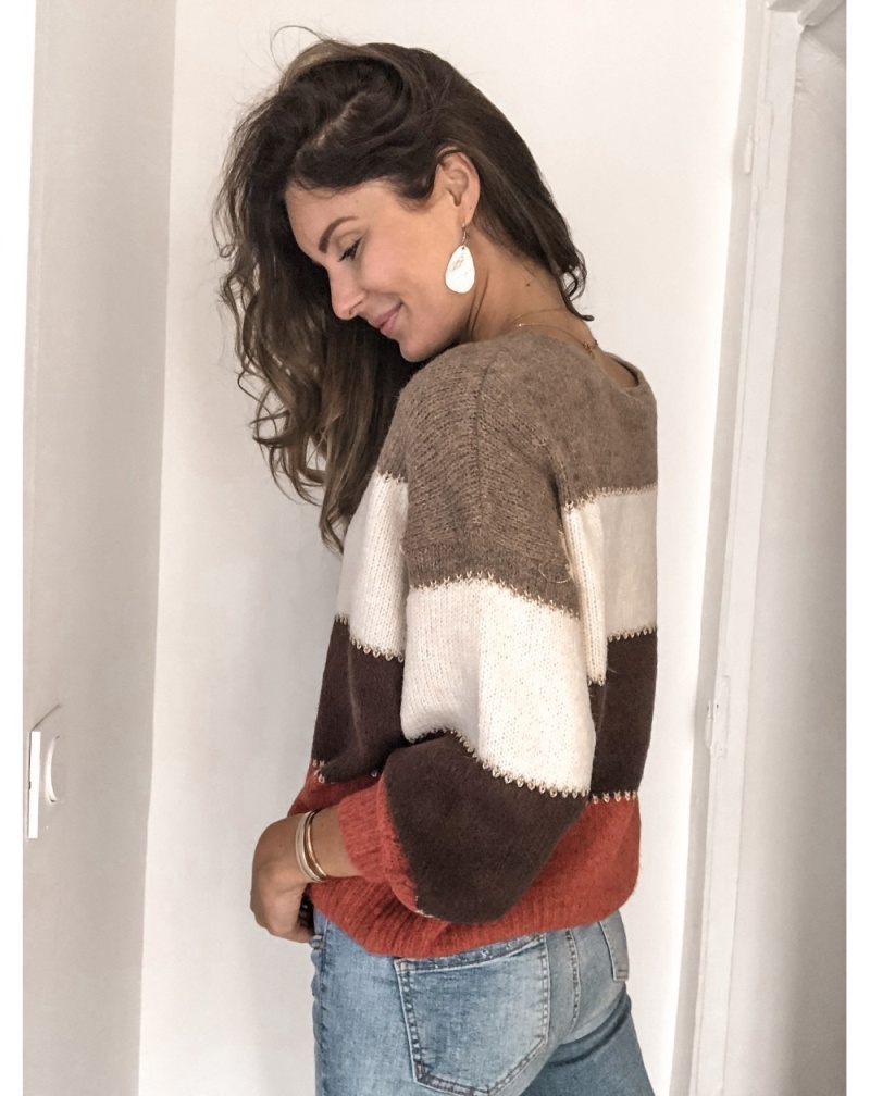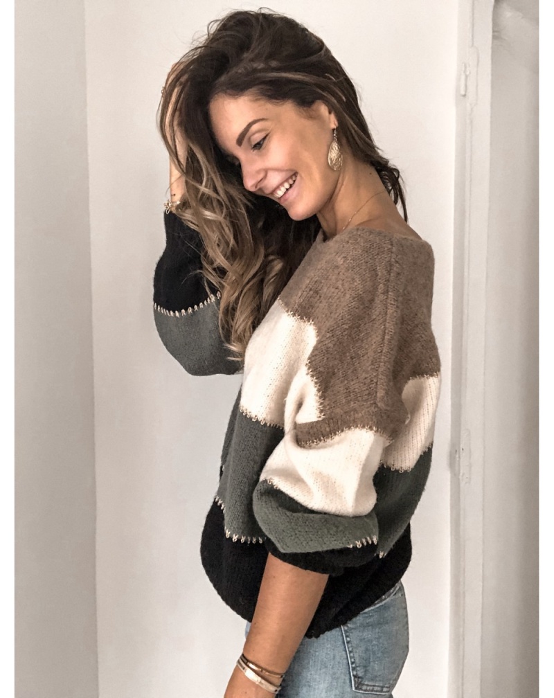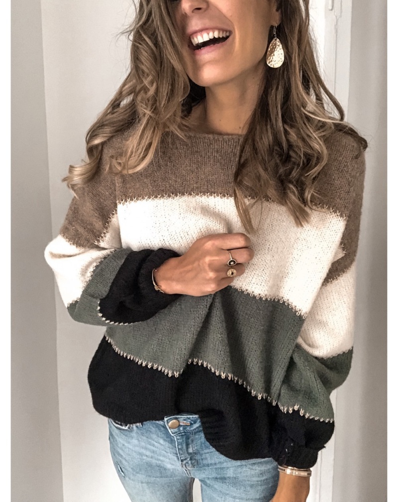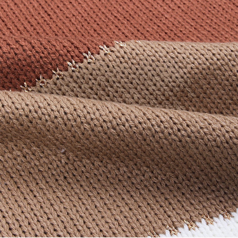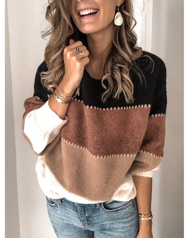秋冬跨境新款拼接套头打底针织衫上衣休闲撞色圆领毛衣女装