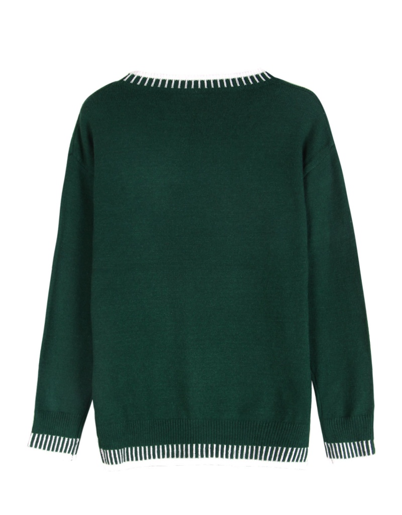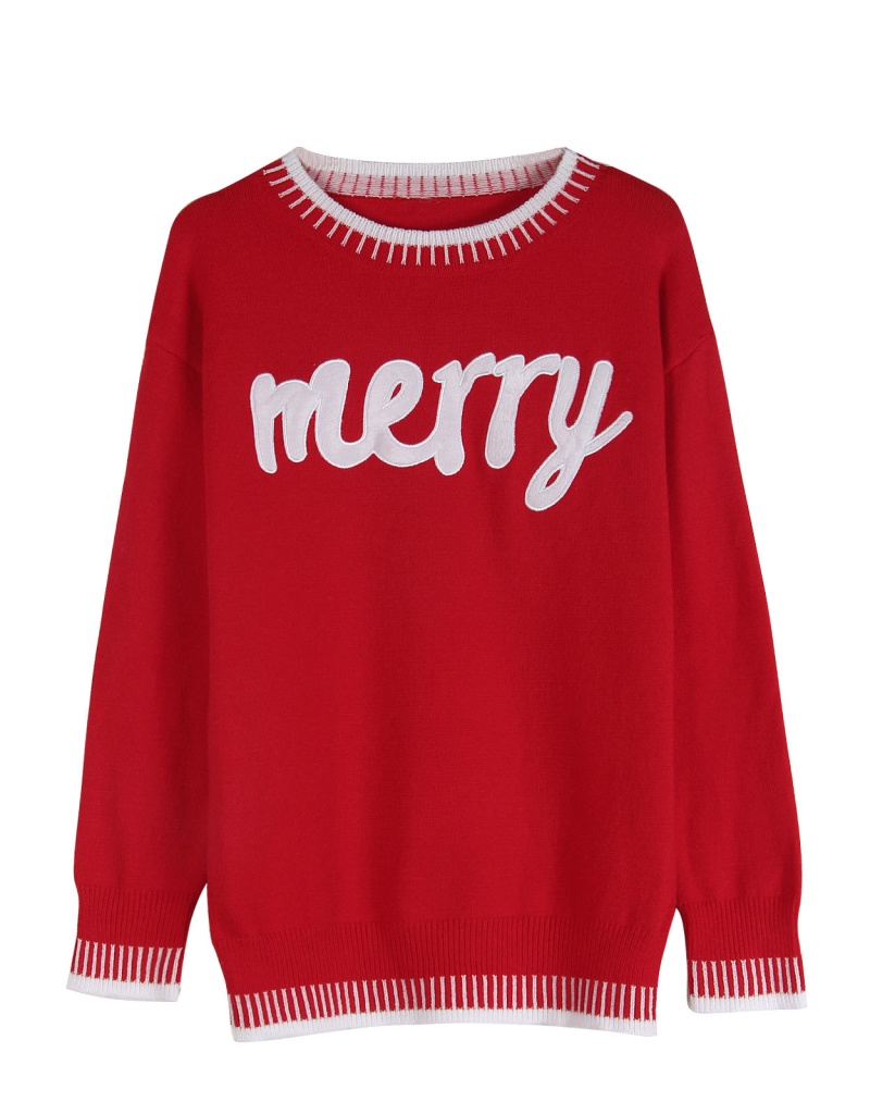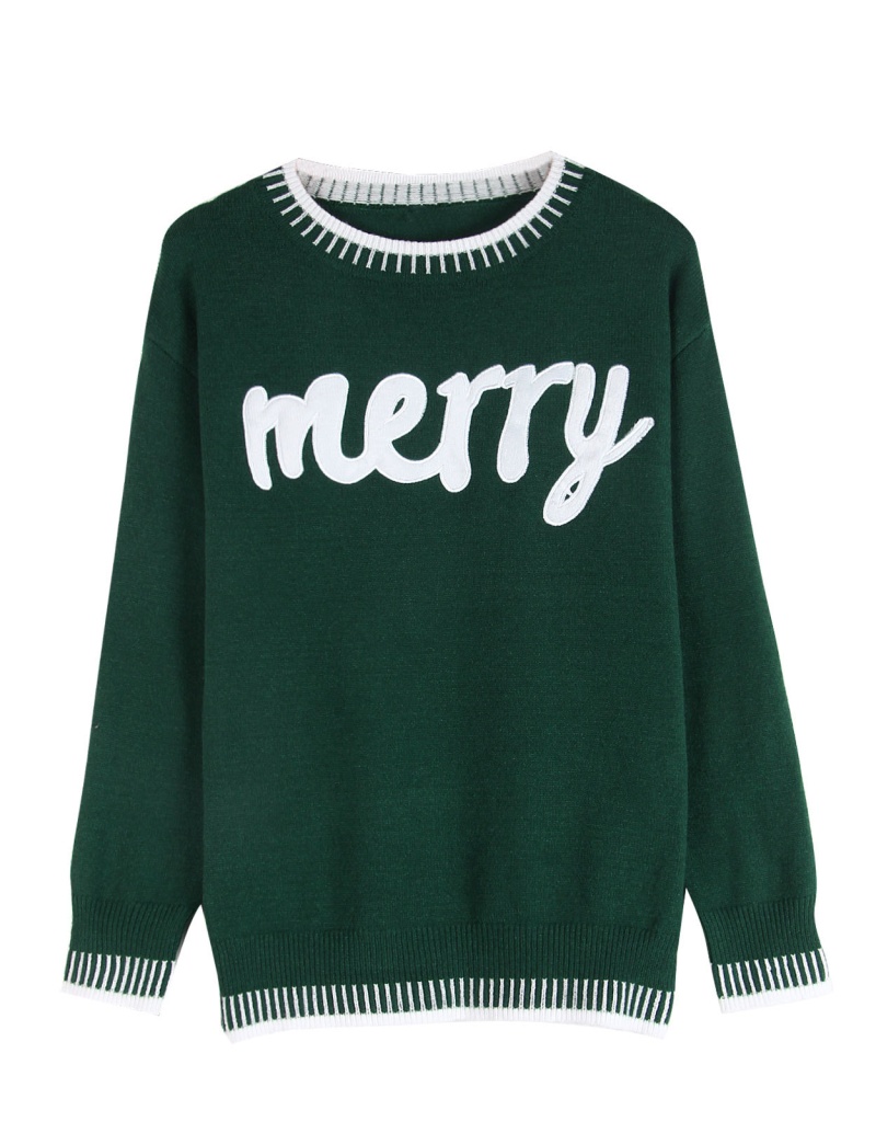 秋冬新款欧美跨境针织衫圣诞节字母长袖圆领套头毛衣女上衣