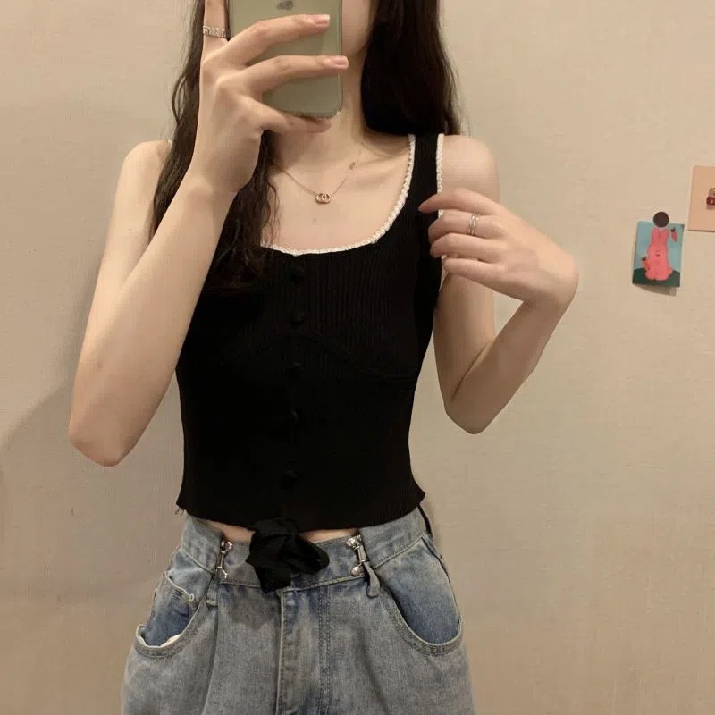 冰丝针织小吊带背心蕾丝拼接上衣女夏季小众设计感内搭打底修身潮