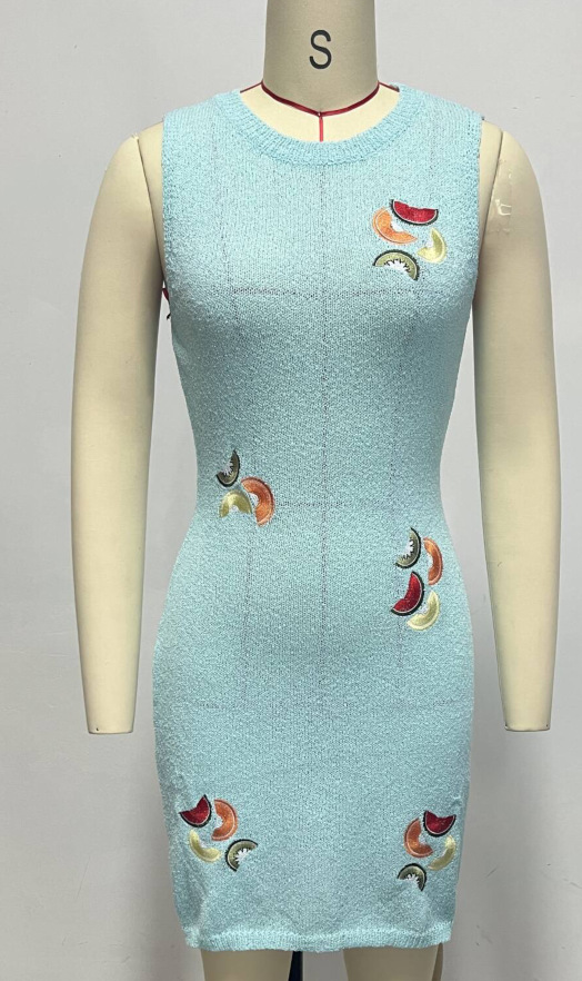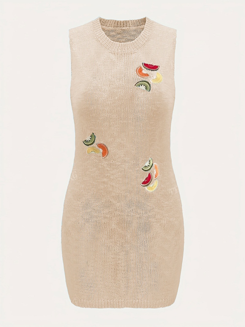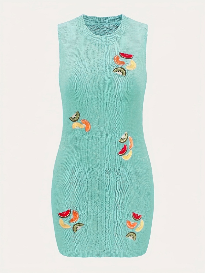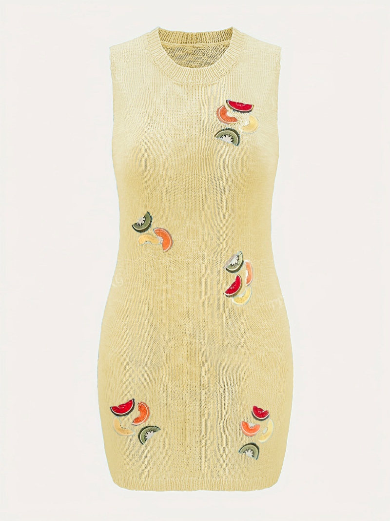 洋洋夏季欧美毛衣女装跨境时尚针织水果刺绣吊带短款连衣裙