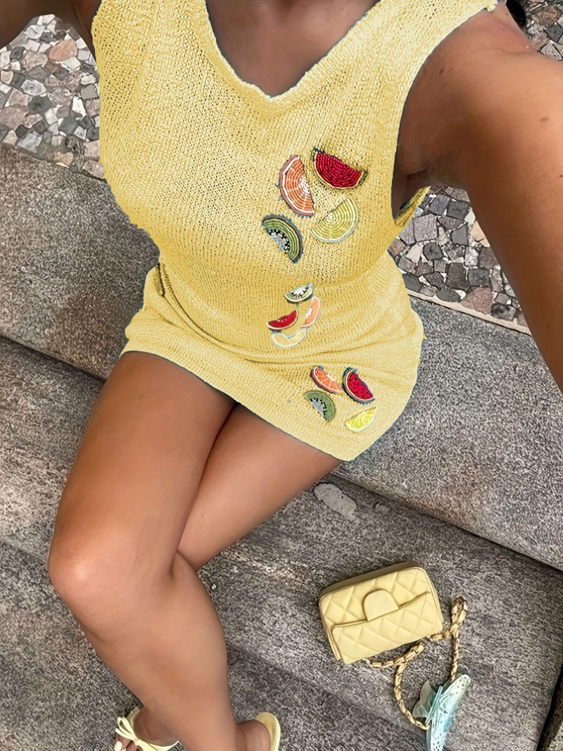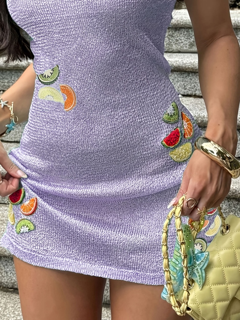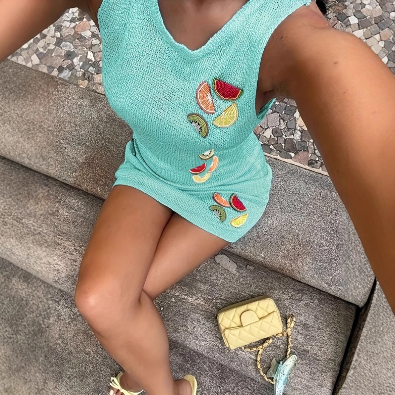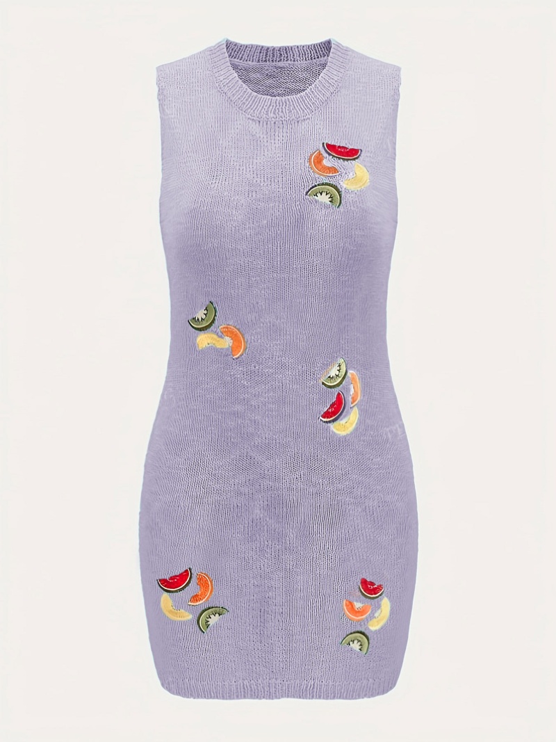 洋洋夏季欧美毛衣女装跨境时尚针织水果刺绣吊带短款连衣裙