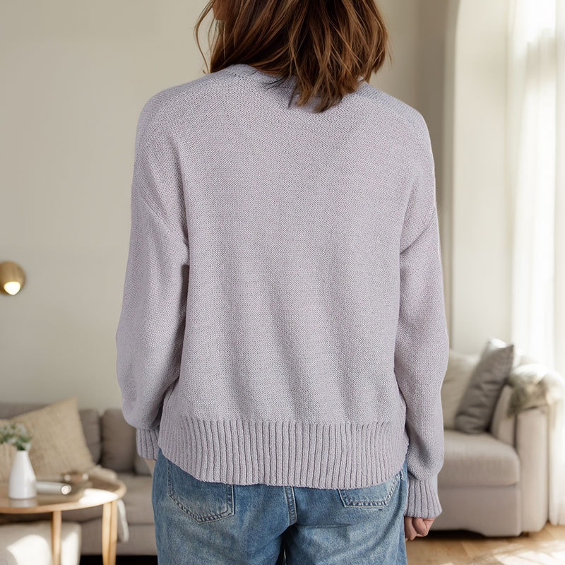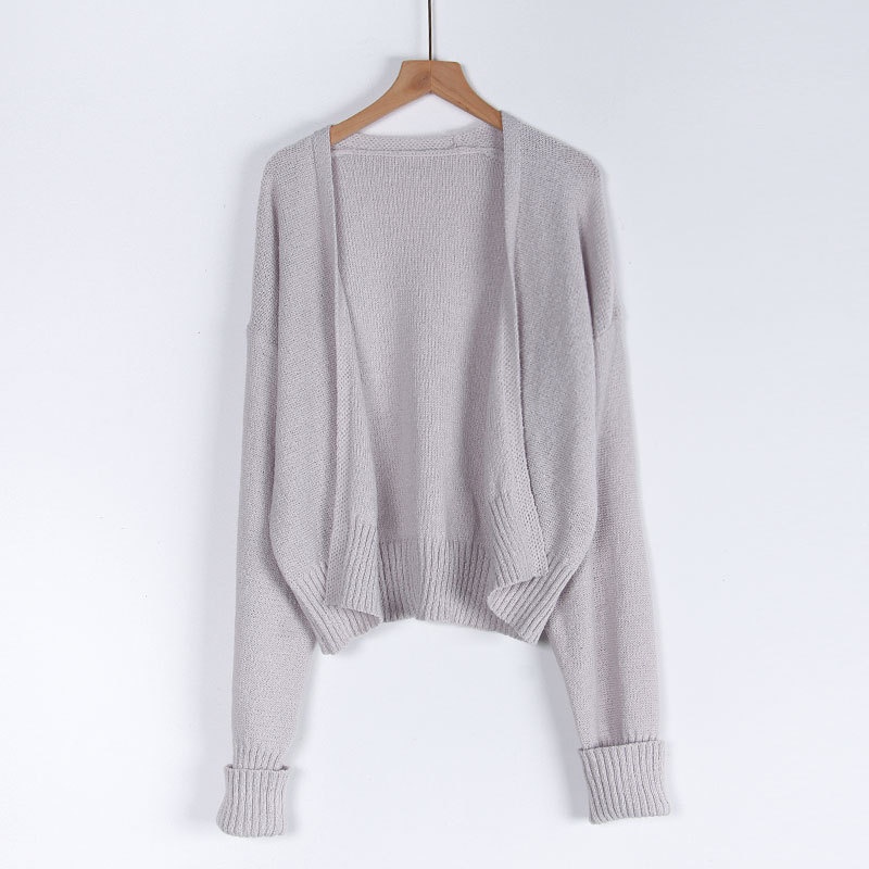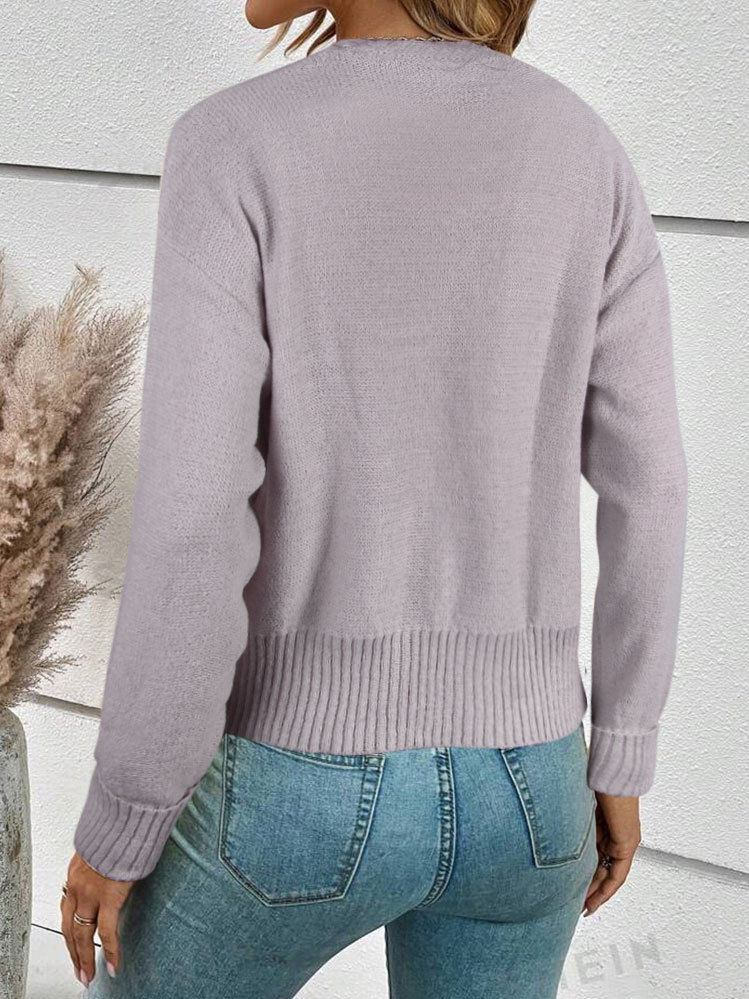 洋洋外贸欧美秋冬毛衣女跨境纯色针织衫圆领长袖开衫外套女