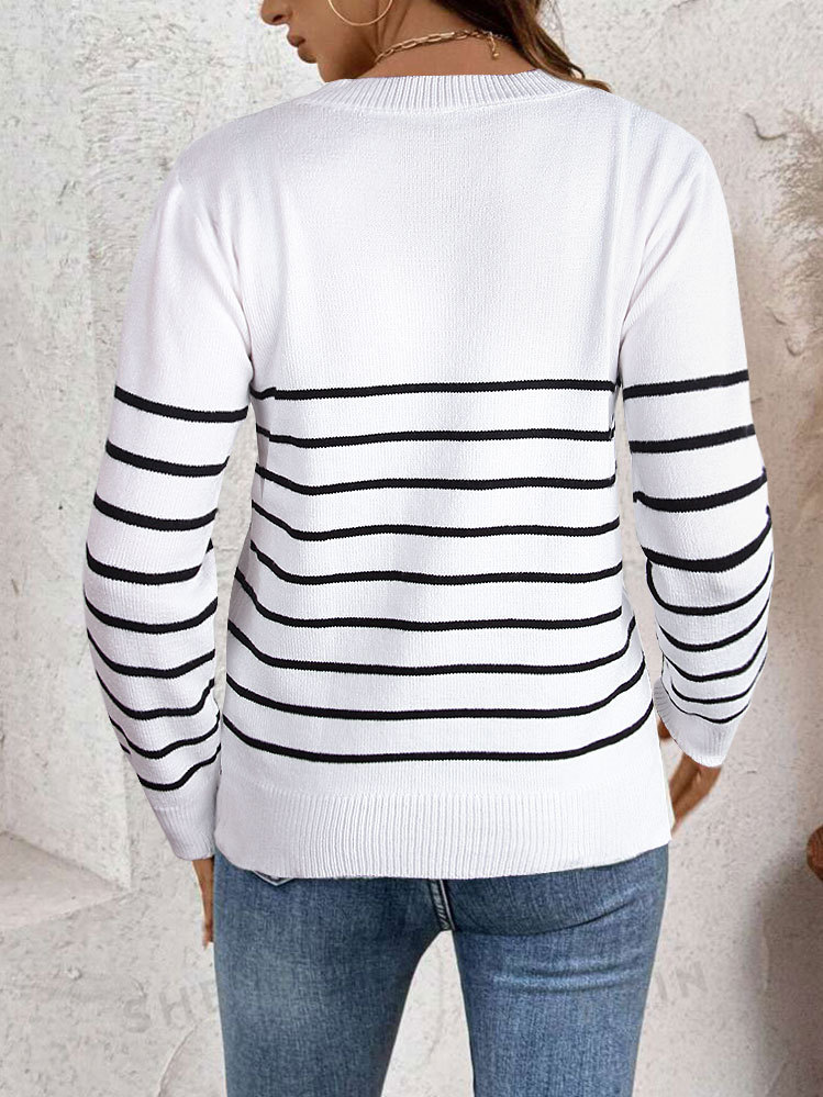 洋洋跨境秋冬欧美毛衣女装跨境休闲百搭条纹圆领长袖针织衫