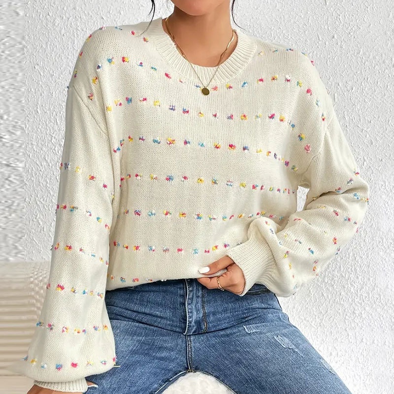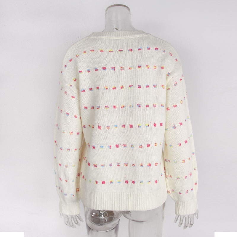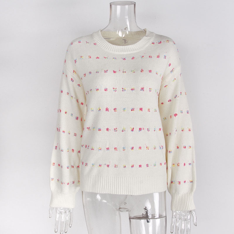 2024欧美秋冬新款时尚女式毛衣跨境彩点提花圆领套头针织衫