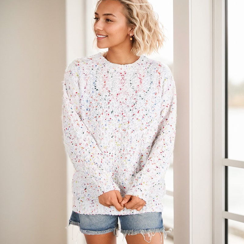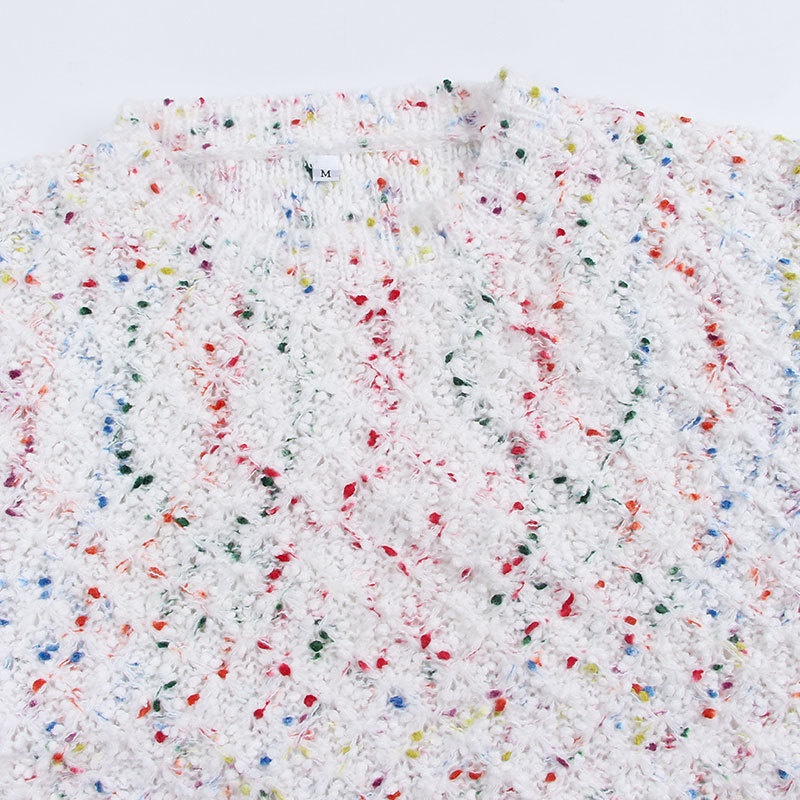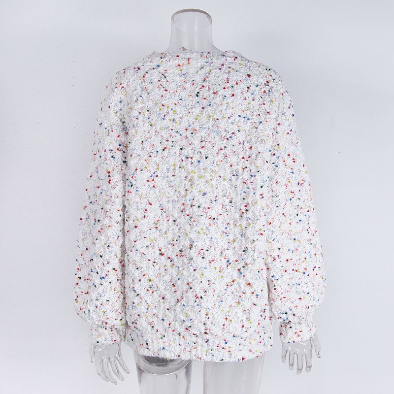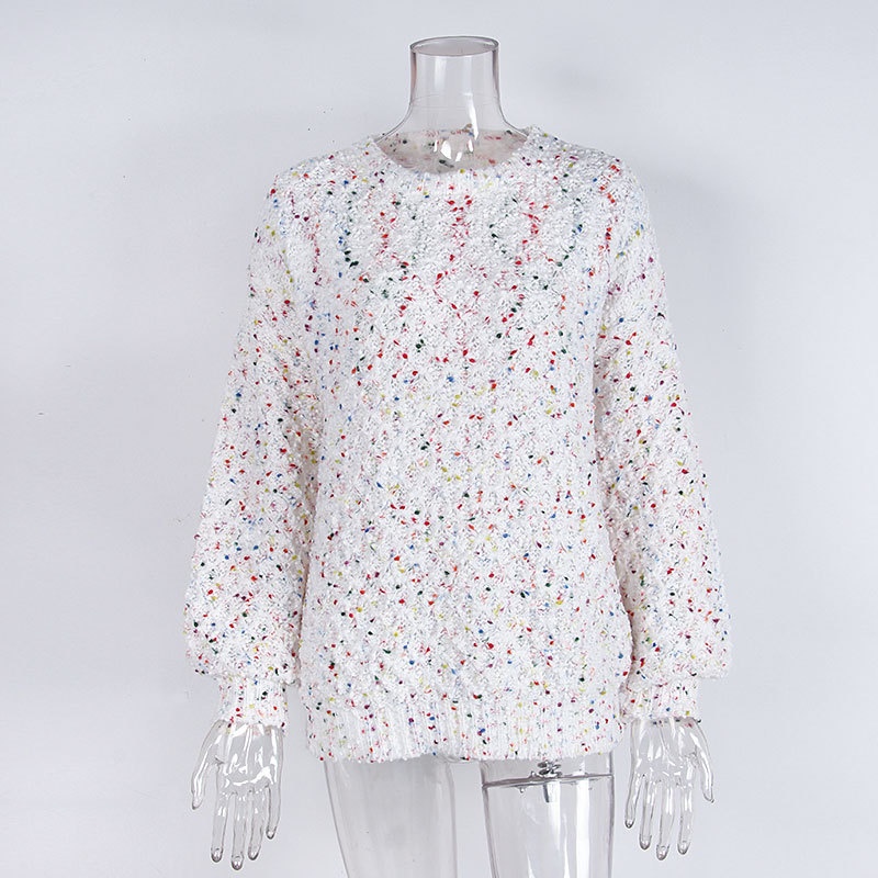欧美秋冬圆领套头长袖针织上衣跨境彩色点气质通勤女式毛衣