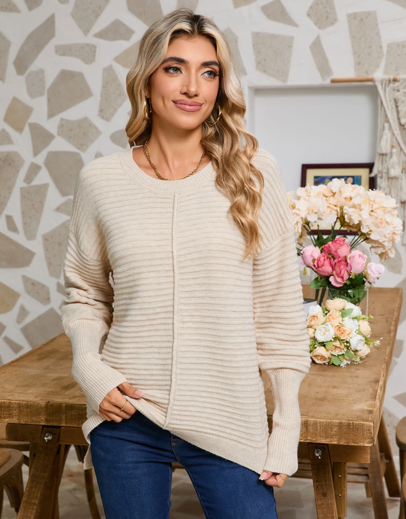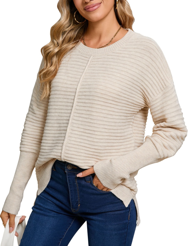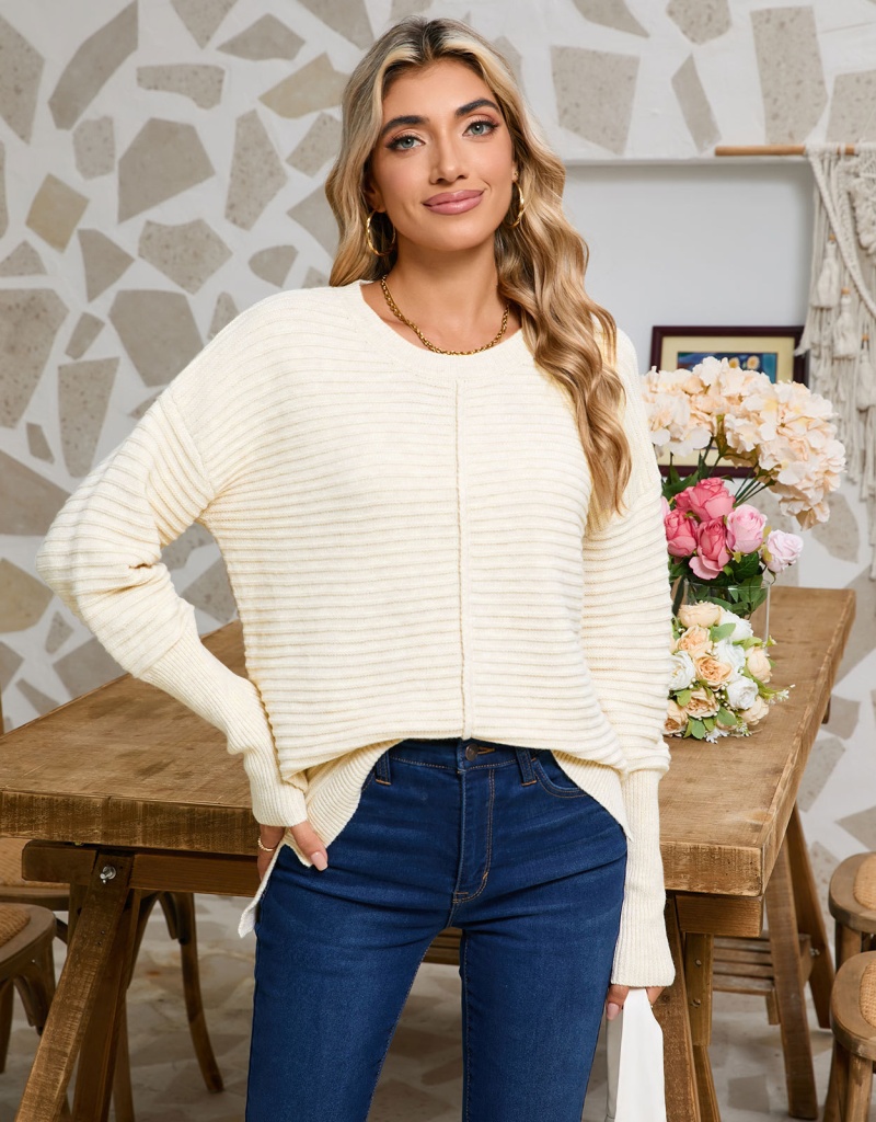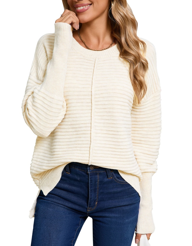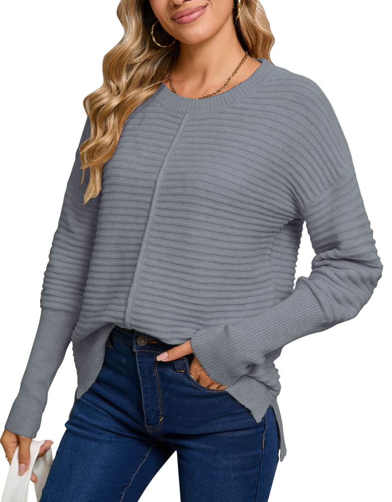 秋季欧美纯色绞纹毛衣女装跨境时尚美式圆领长袖套头针织衫