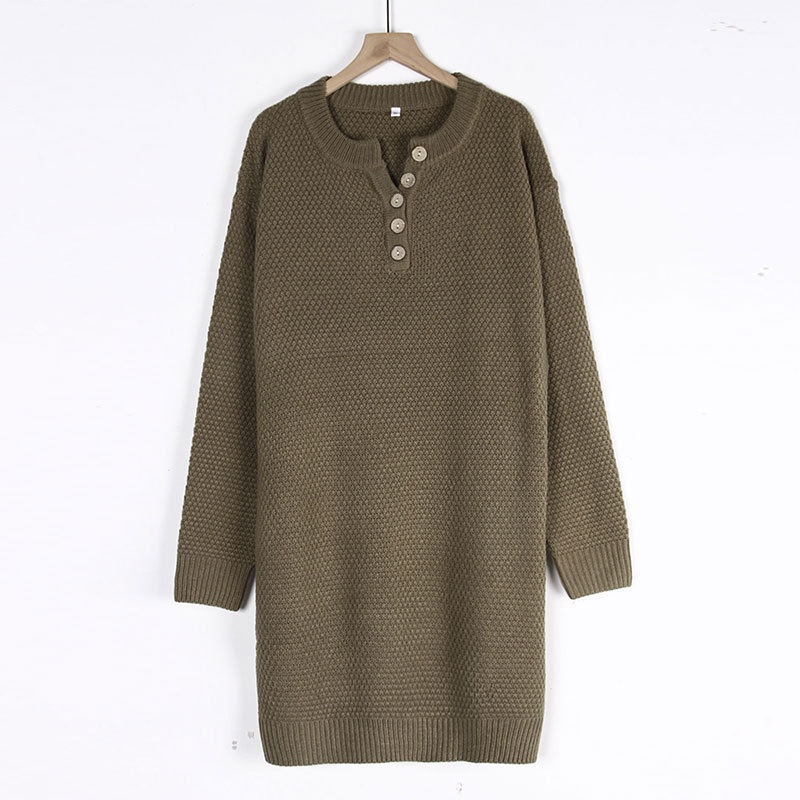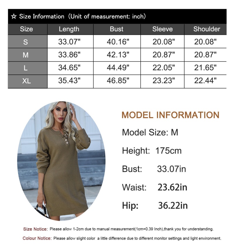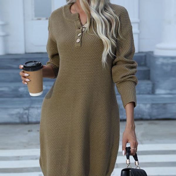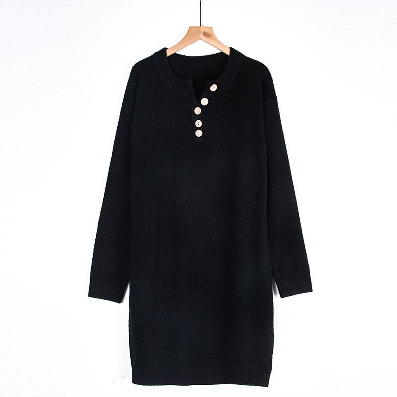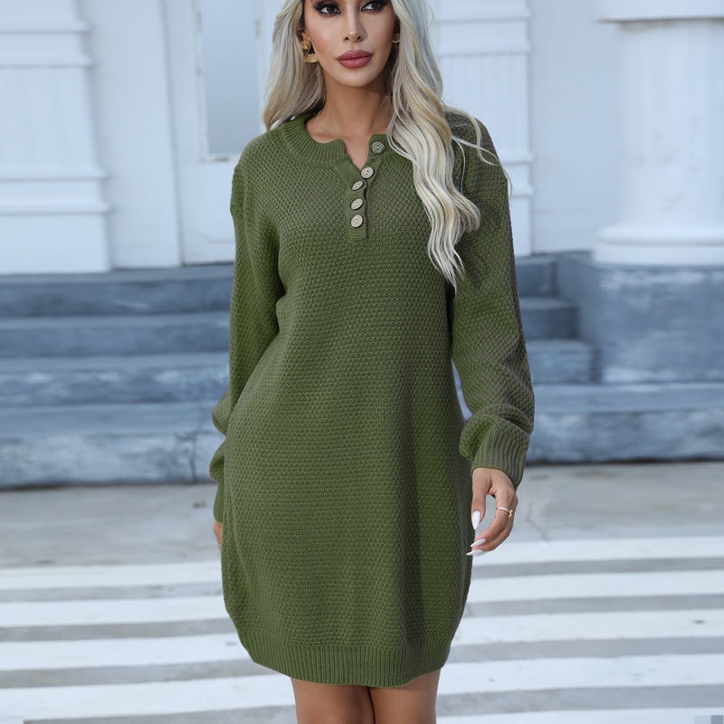 秋冬新款欧美纽扣针织衫连衣裙时尚气质通勤女式毛衣女厂家