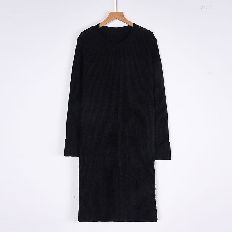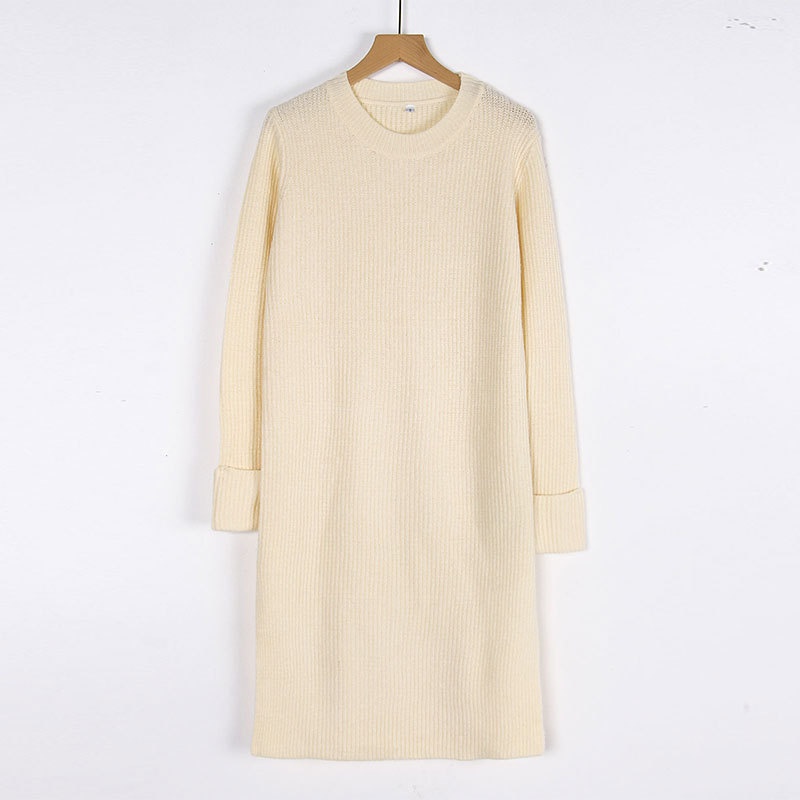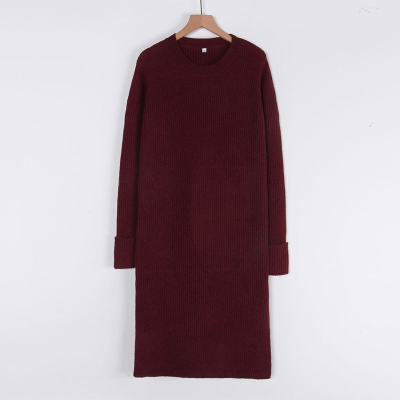 跨境秋冬新款欧美毛衣女纯色性感修身圆领包臀裙中长款针织连衣裙