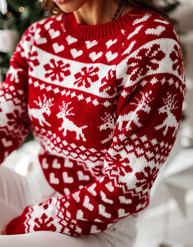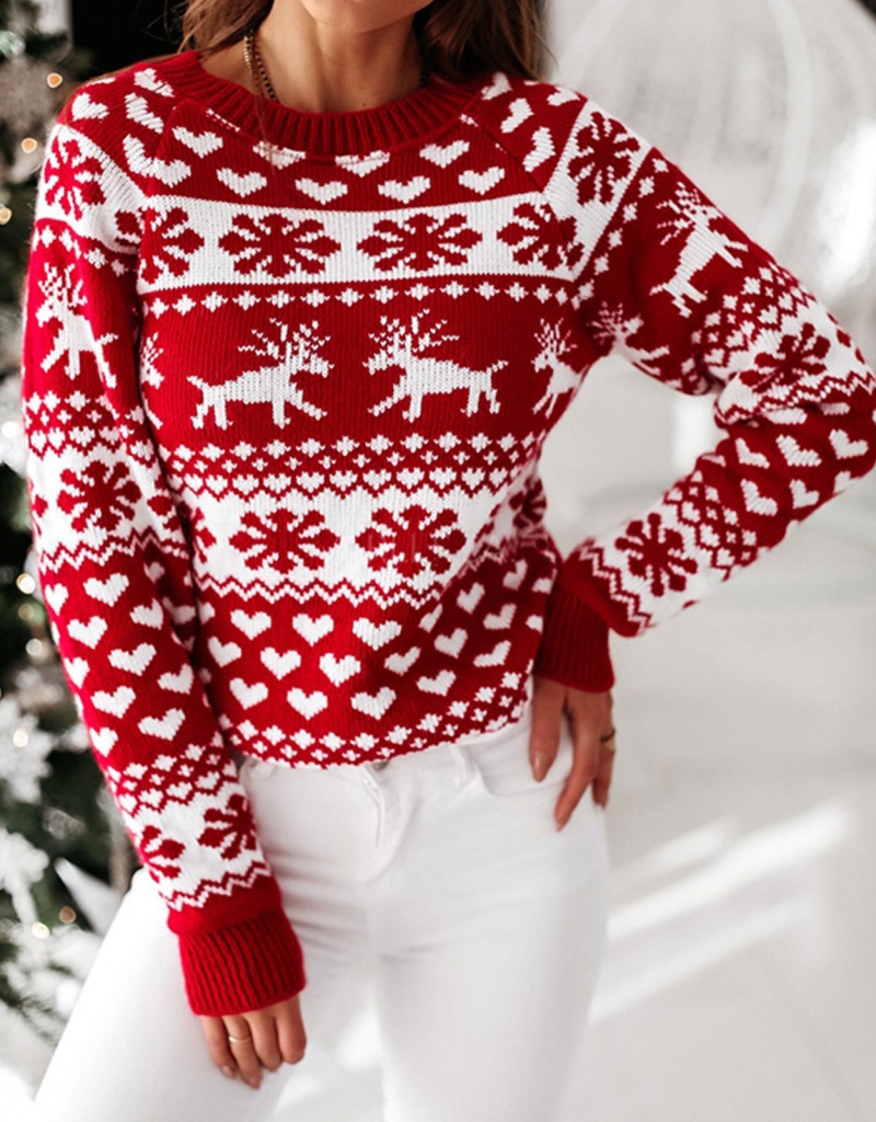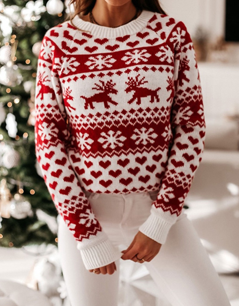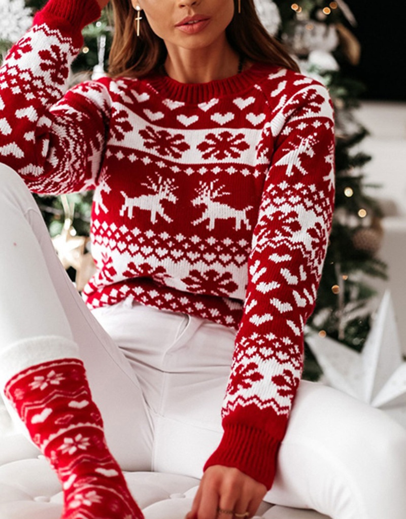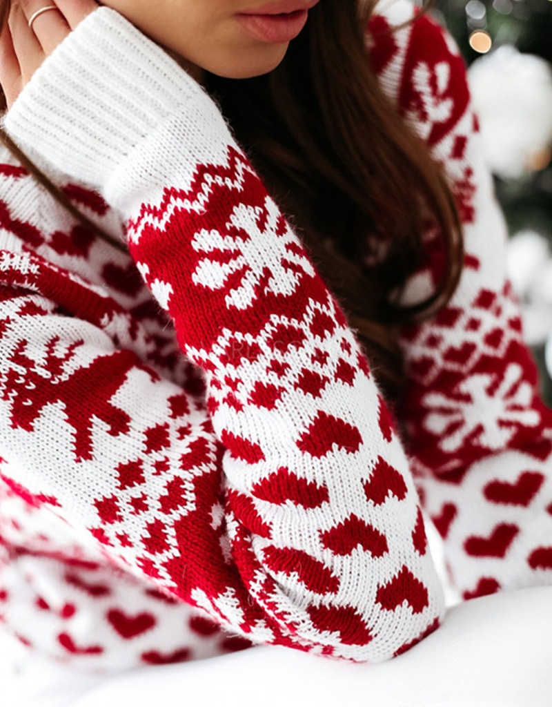 秋冬女式毛衣新款圣诞雪花麋鹿长袖针织毛衣时尚套头针织衫