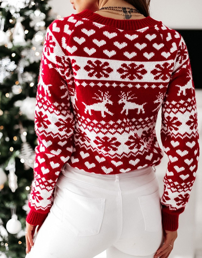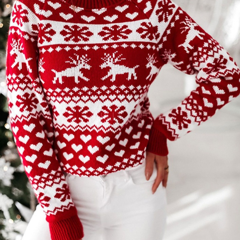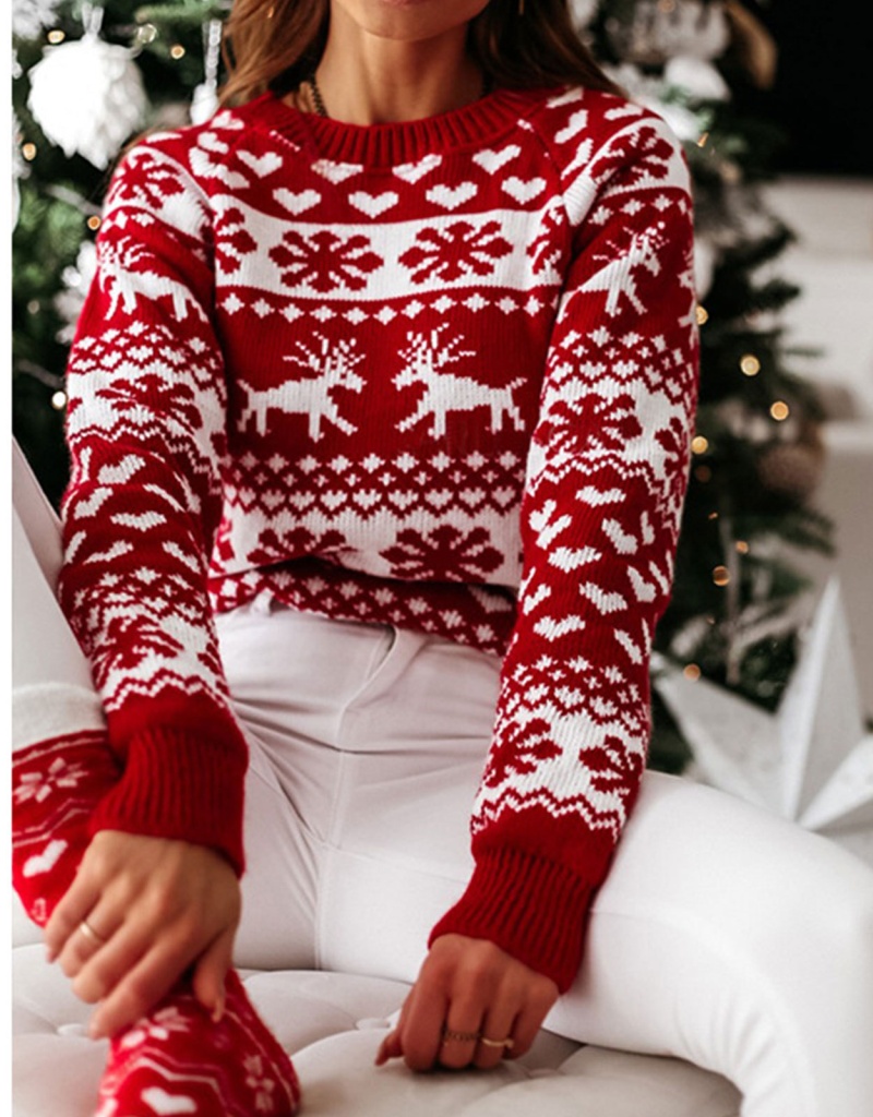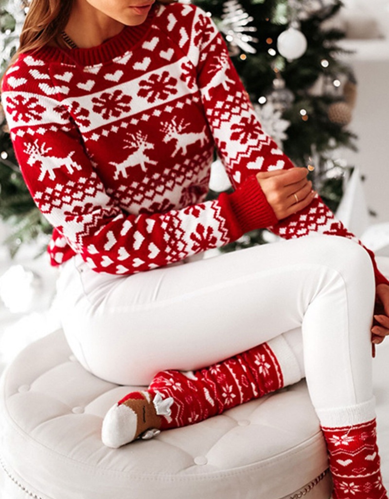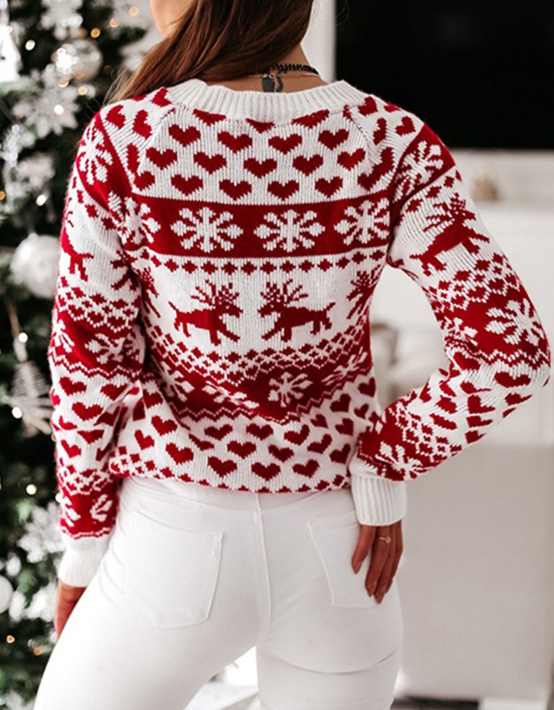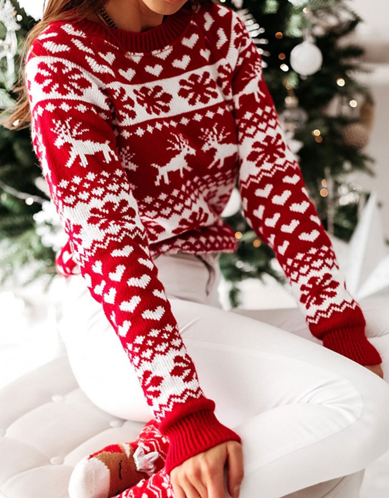 秋冬女式毛衣新款圣诞雪花麋鹿长袖针织毛衣时尚套头针织衫