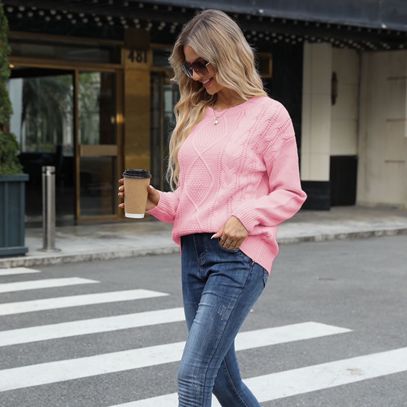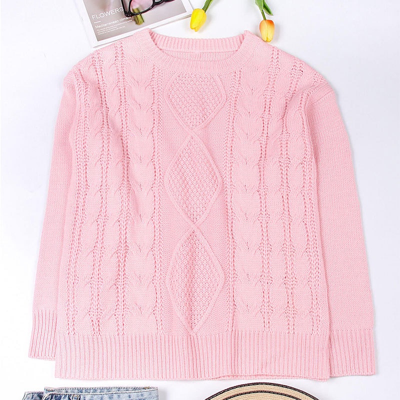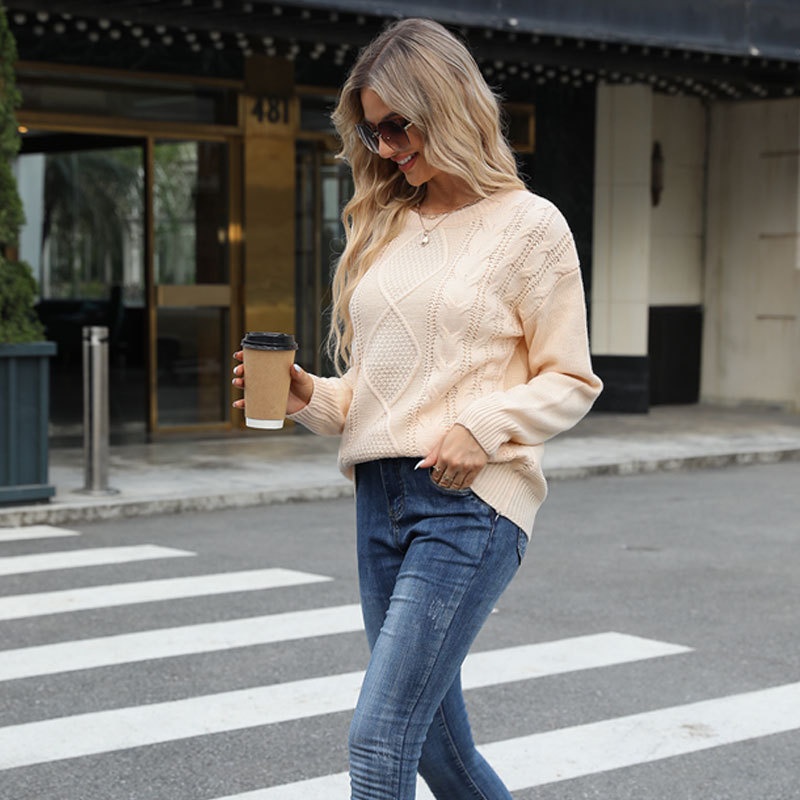 欧美秋冬新款毛衣圆领麻花纯色针织上衣女套头宽松毛衣厂家
