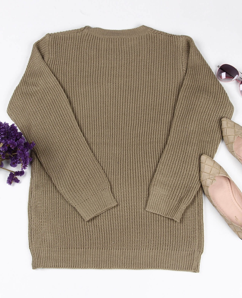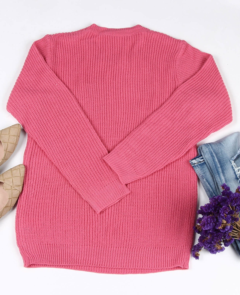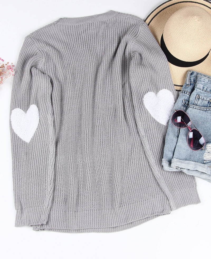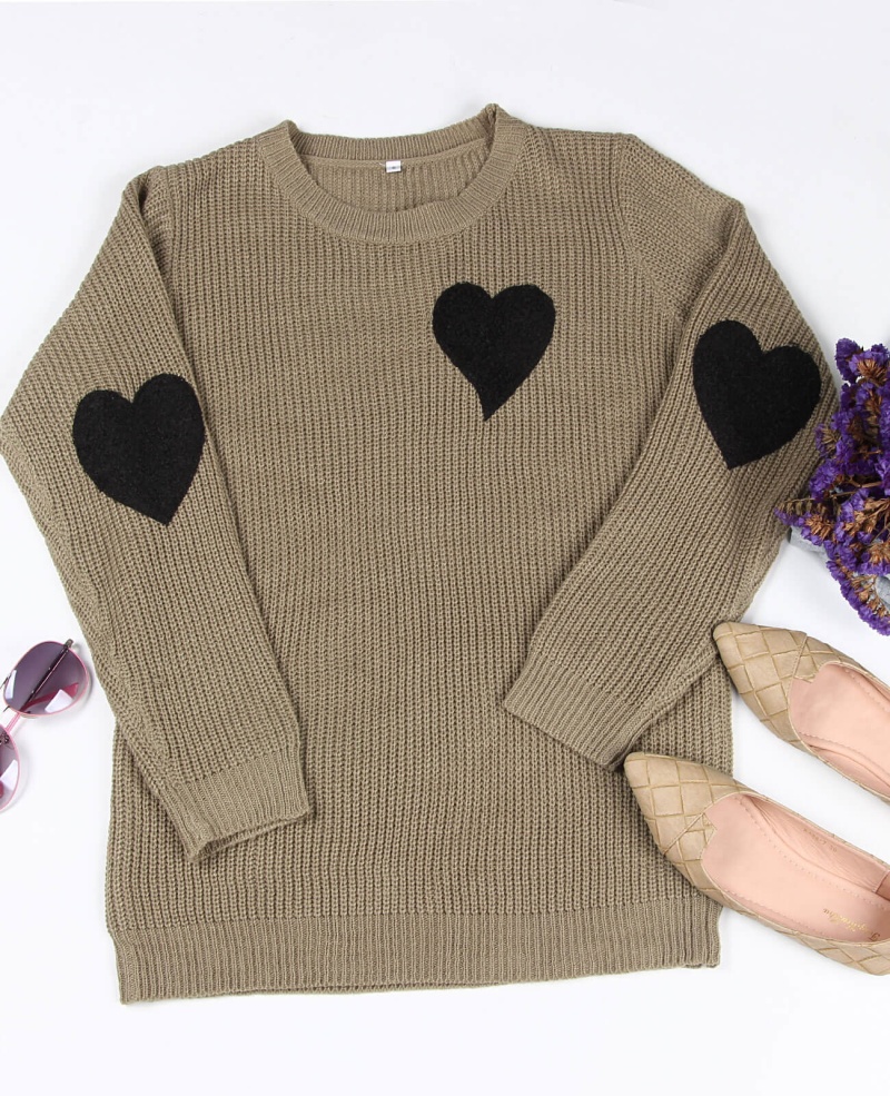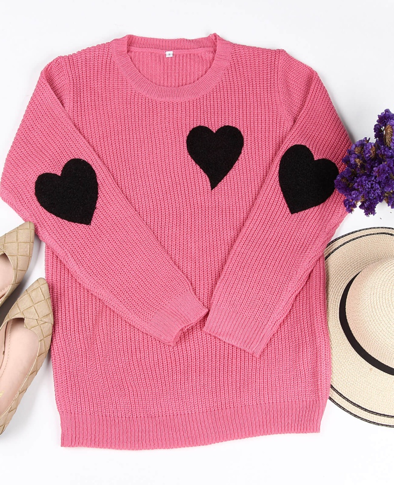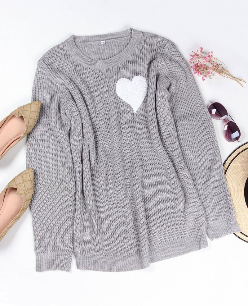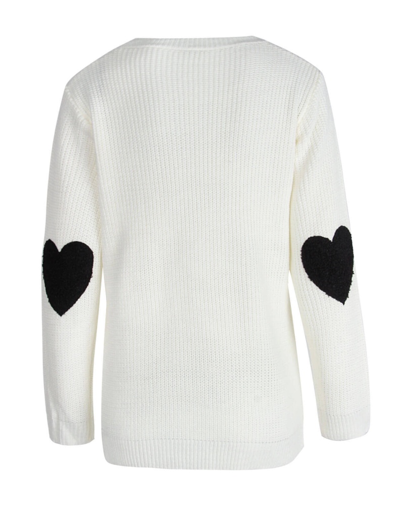 秋冬季新款 跨境圆领纯色小爱心套头宽松毛衣欧美针织衫女