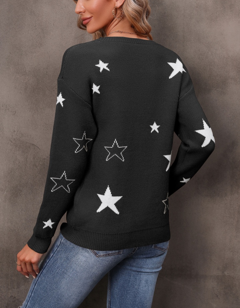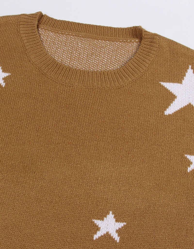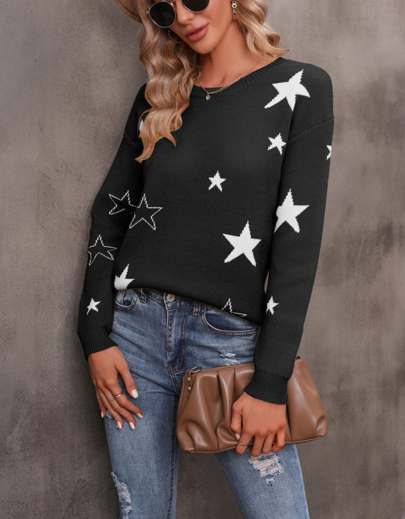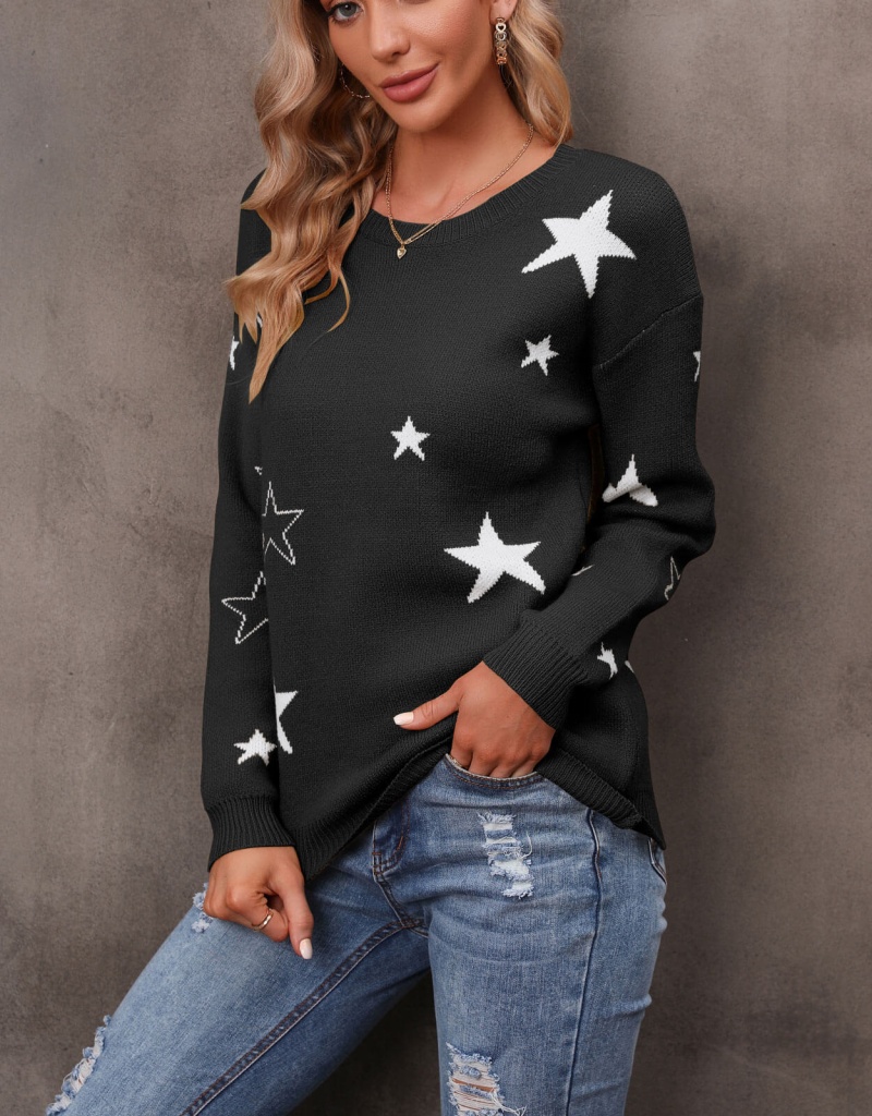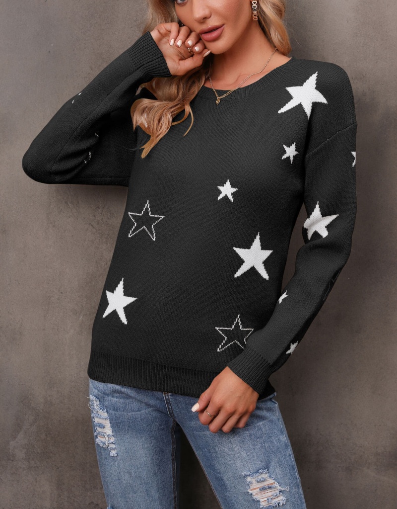 秋冬新款休闲打底针织衫女宽松圆领星星套头毛衣 欧美