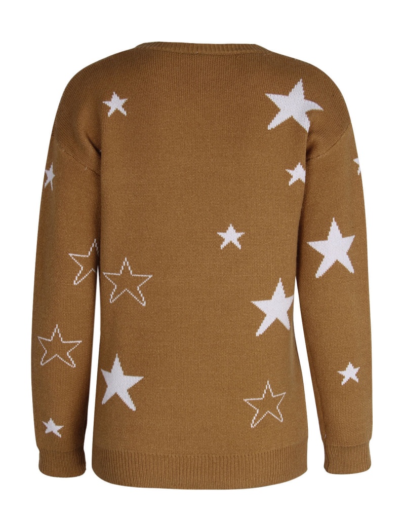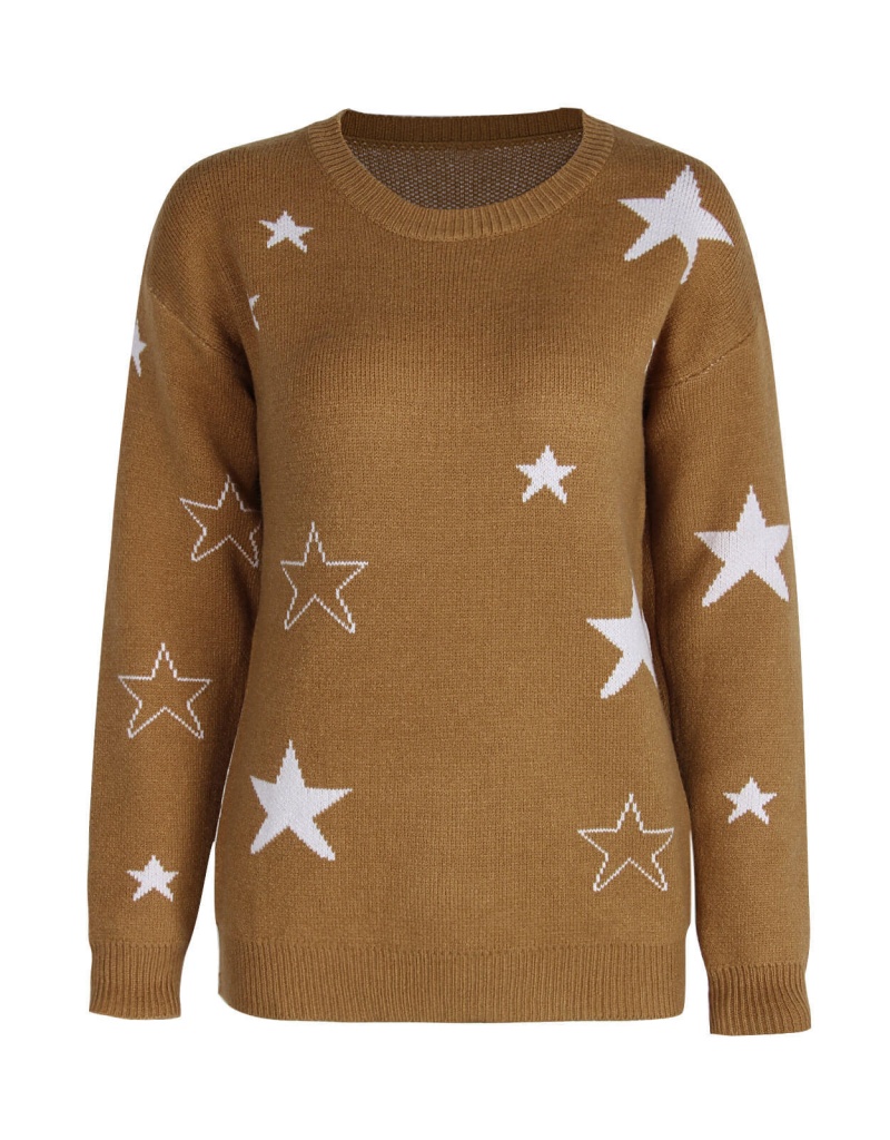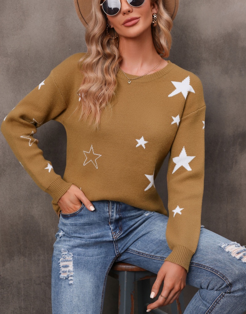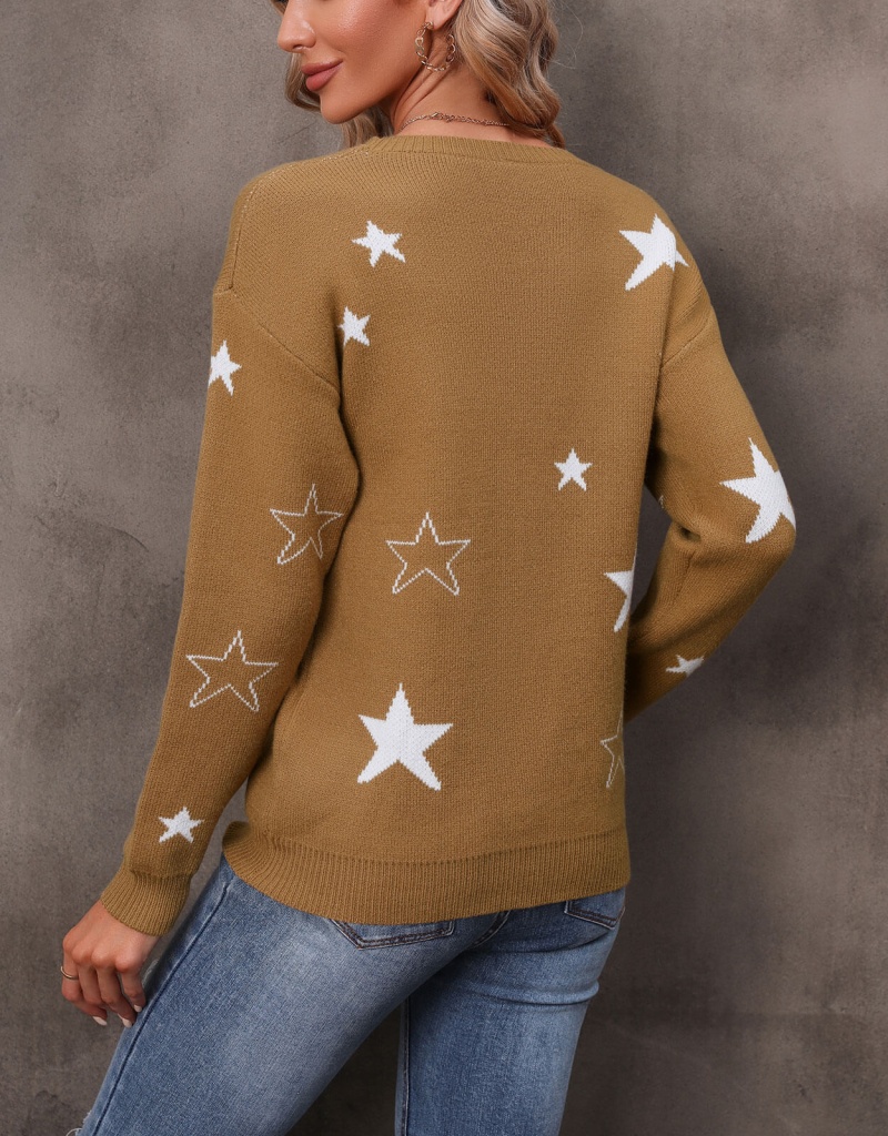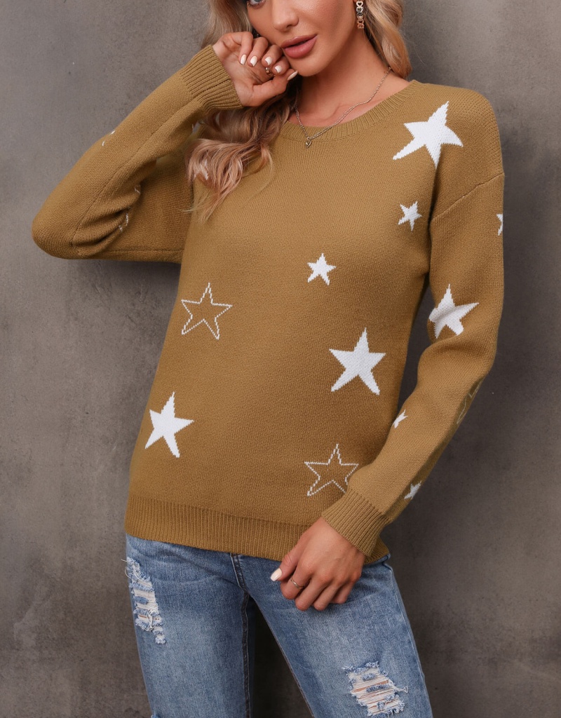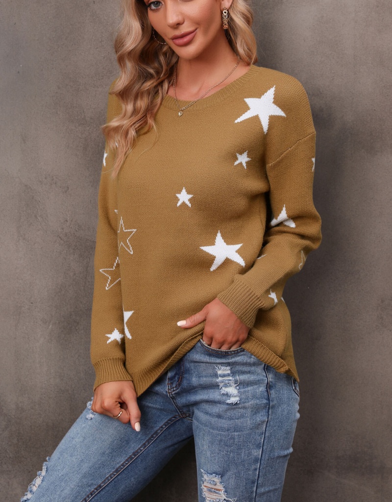 秋冬新款休闲打底针织衫女宽松圆领星星套头毛衣 欧美