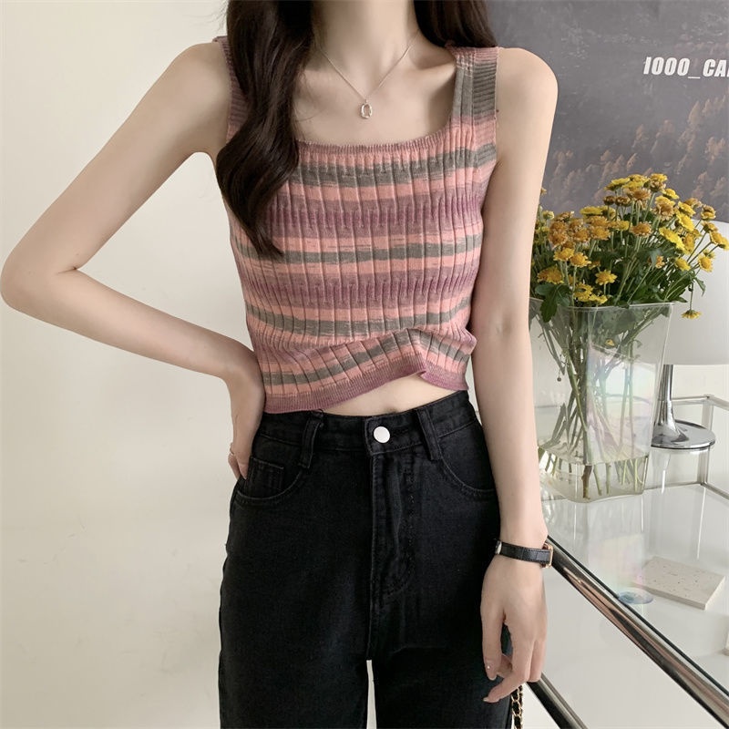 纯欲风彩虹条纹背心吊带女夏季设计感内搭外穿美背抹胸短款上衣潮