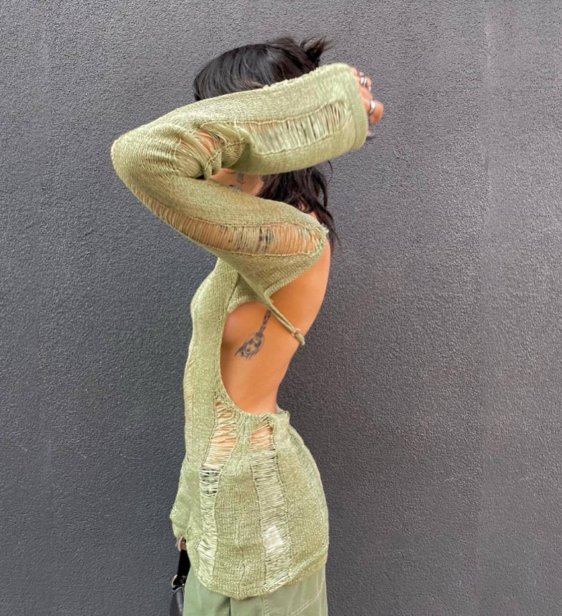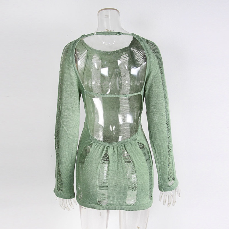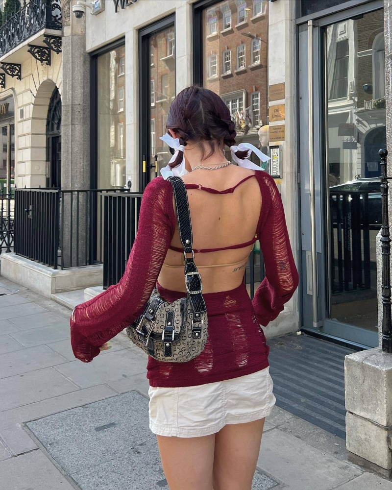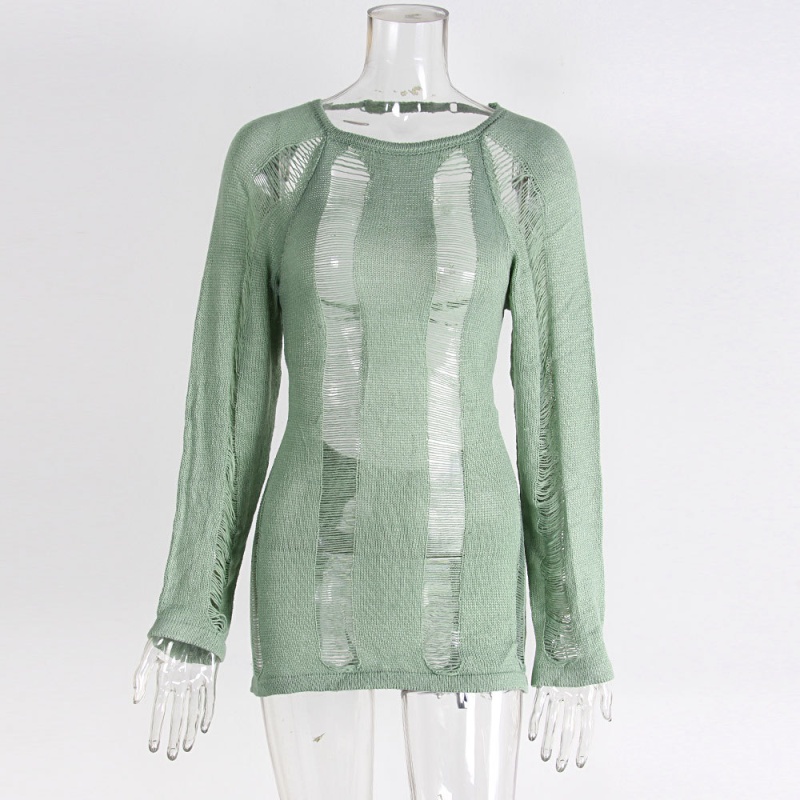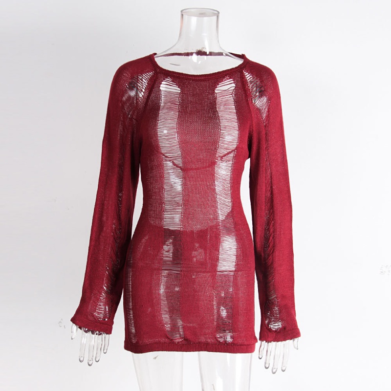 跨境欧美毛衣女装新款镂空露背打底衫复古纯色套头上衣女厂