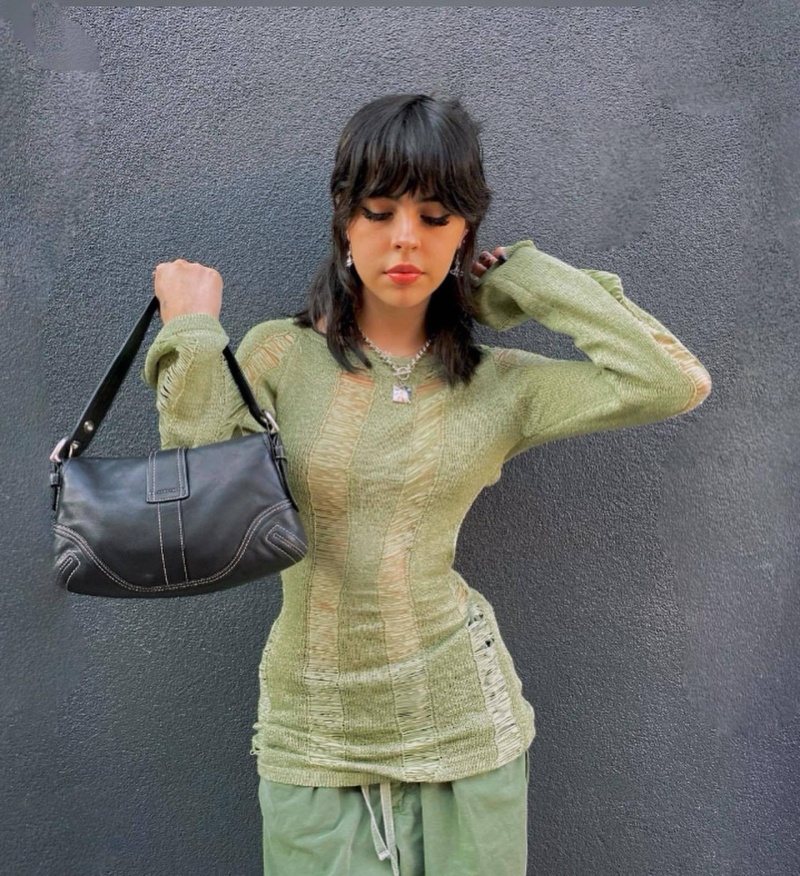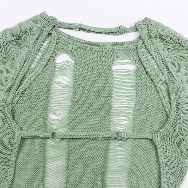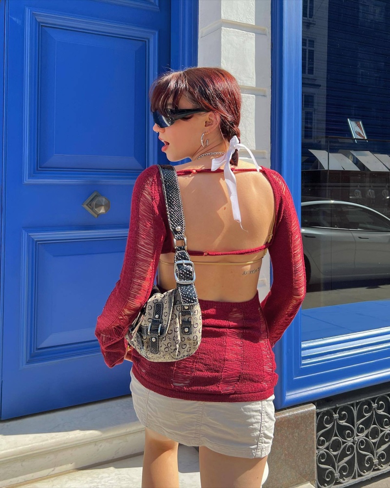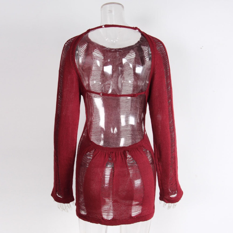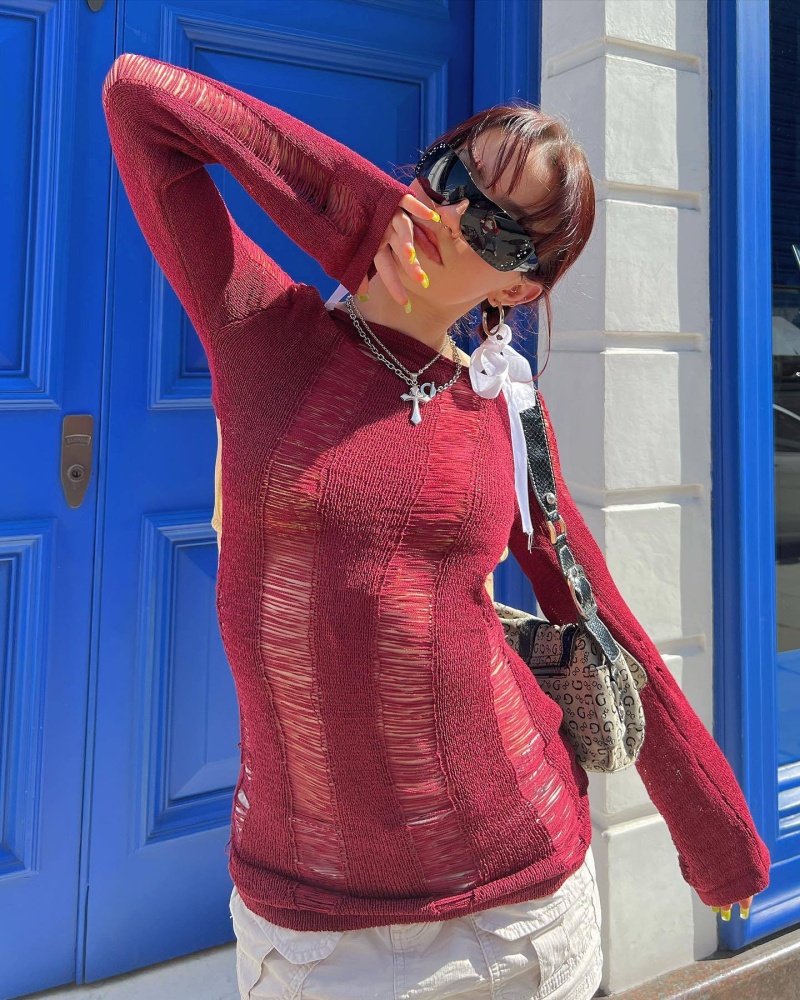 跨境欧美毛衣女装新款镂空露背打底衫复古纯色套头上衣女厂