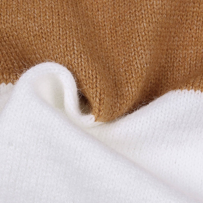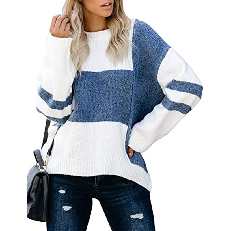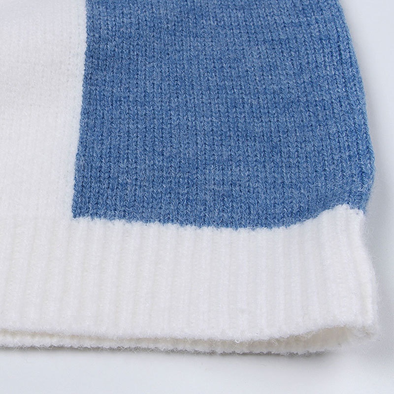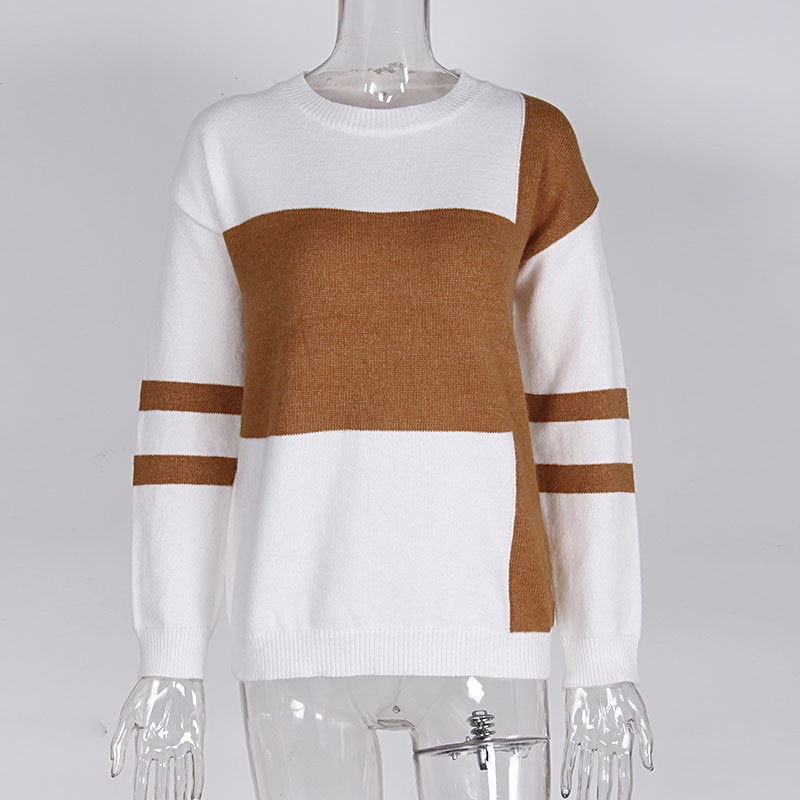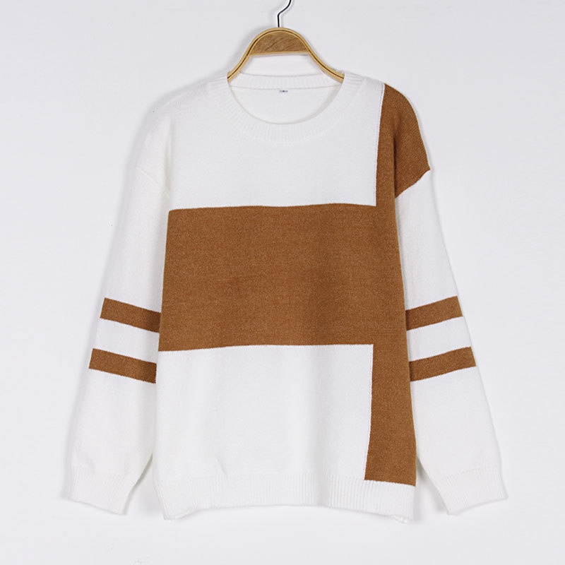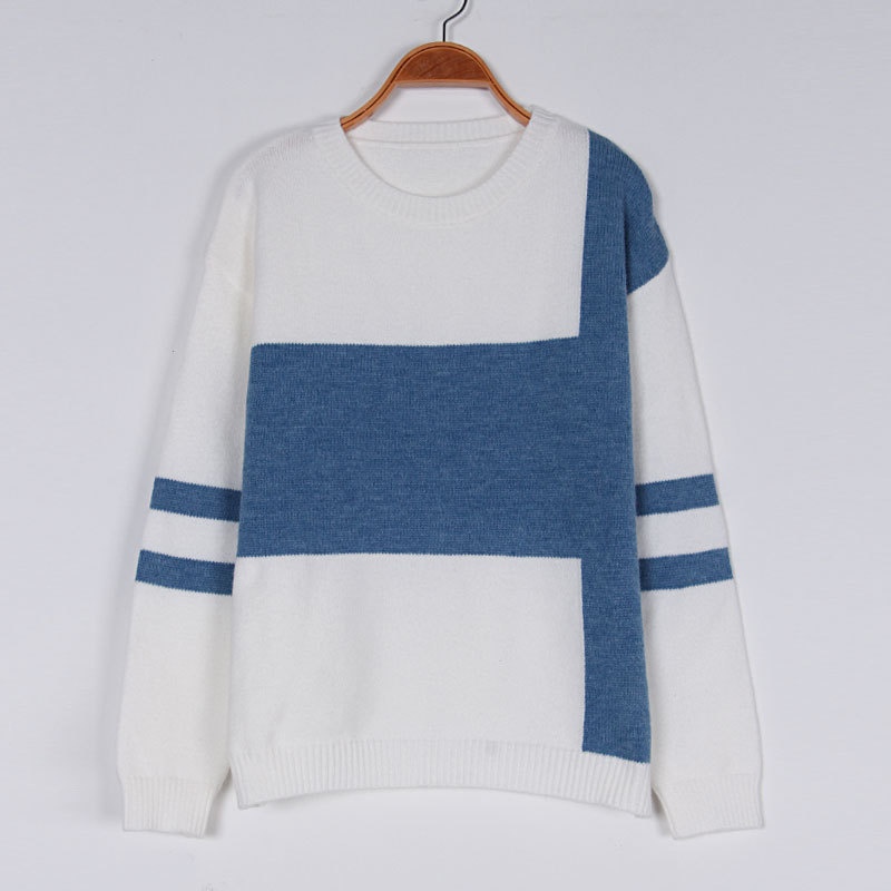 秋冬新款条纹复古欧美街头潮人毛衣撞色拼接圆领套头针织衫