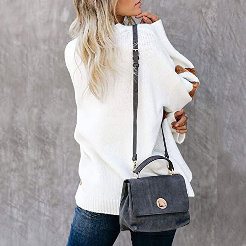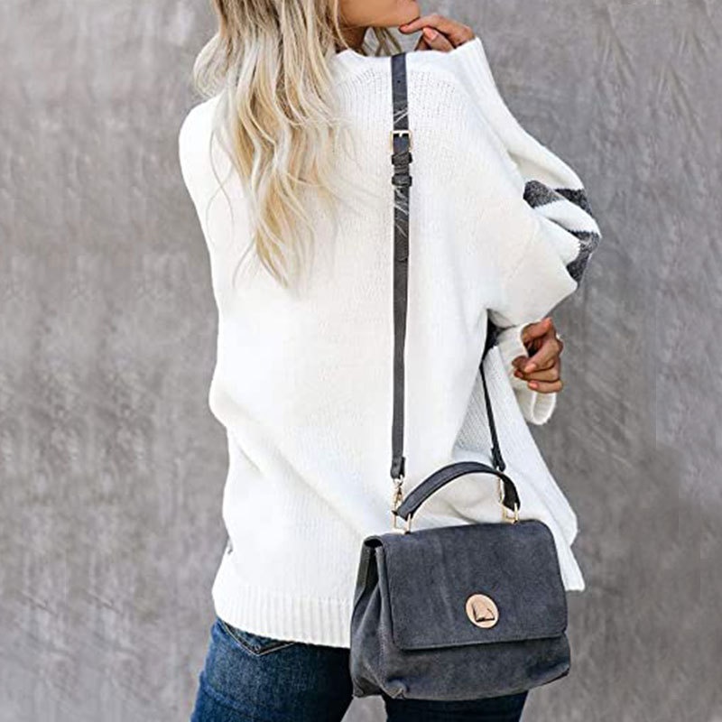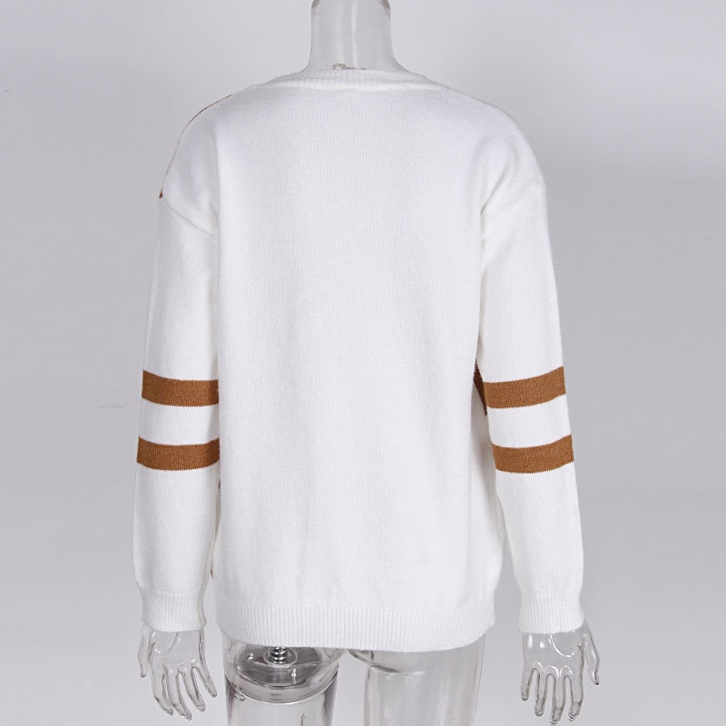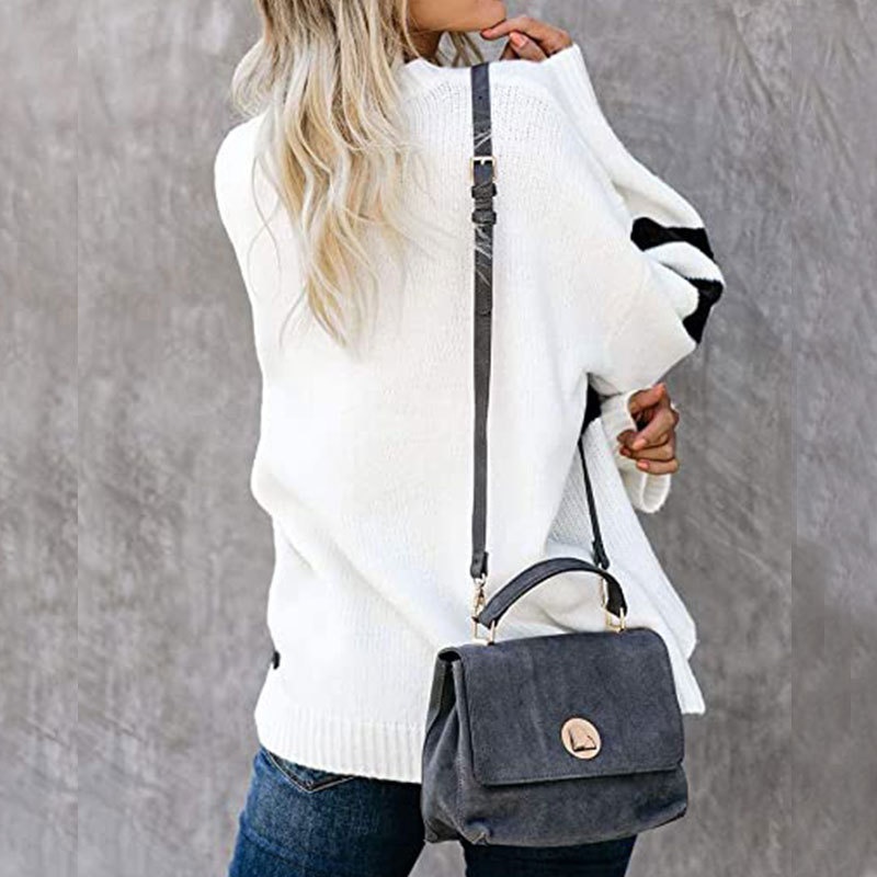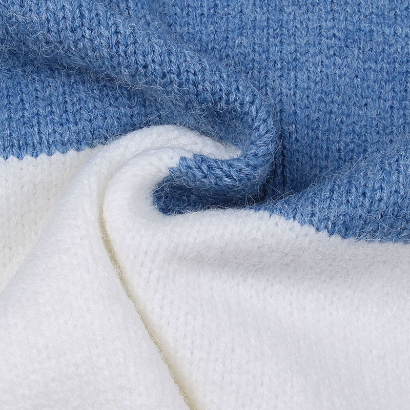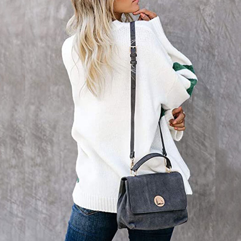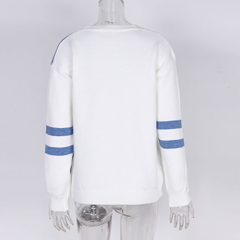秋冬新款条纹复古欧美街头潮人毛衣撞色拼接圆领套头针织衫