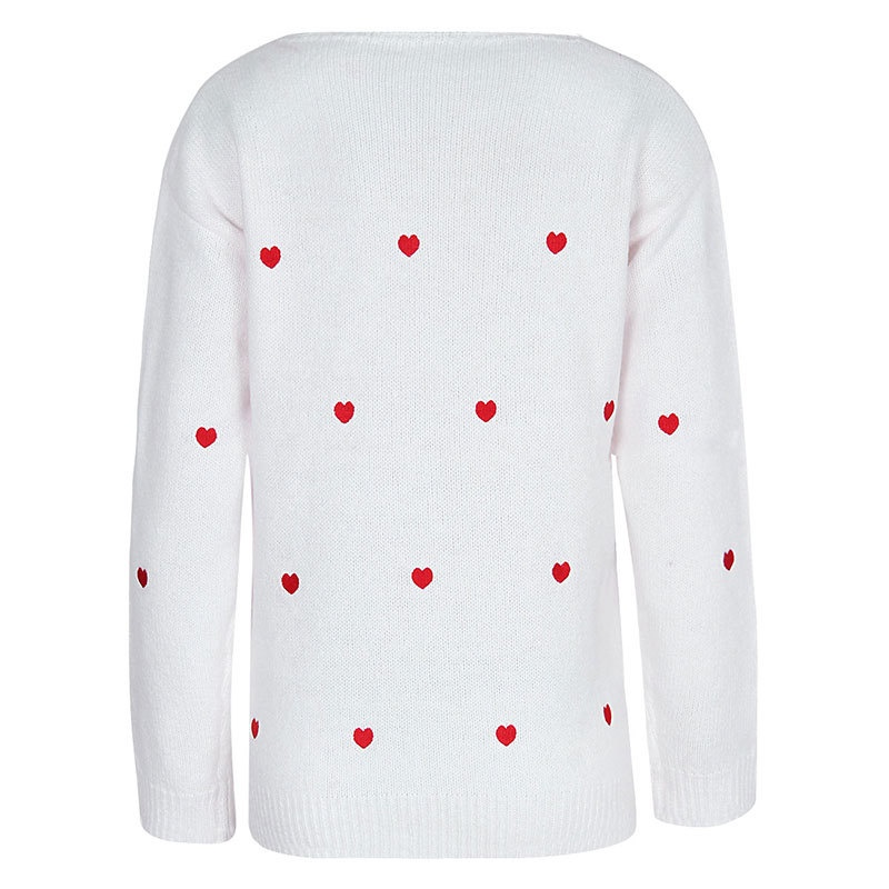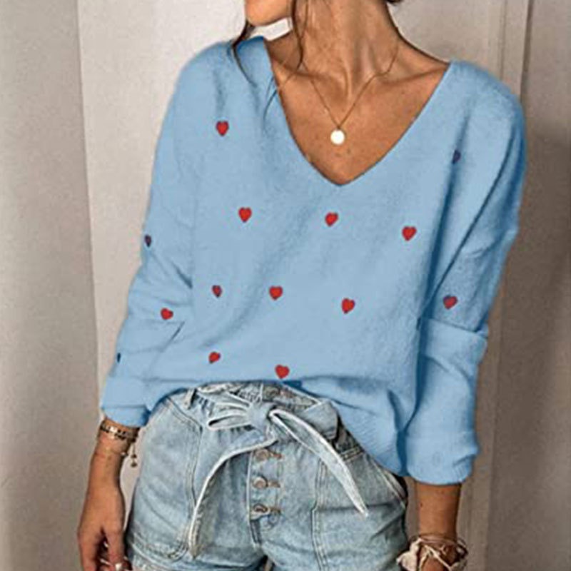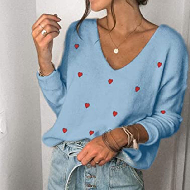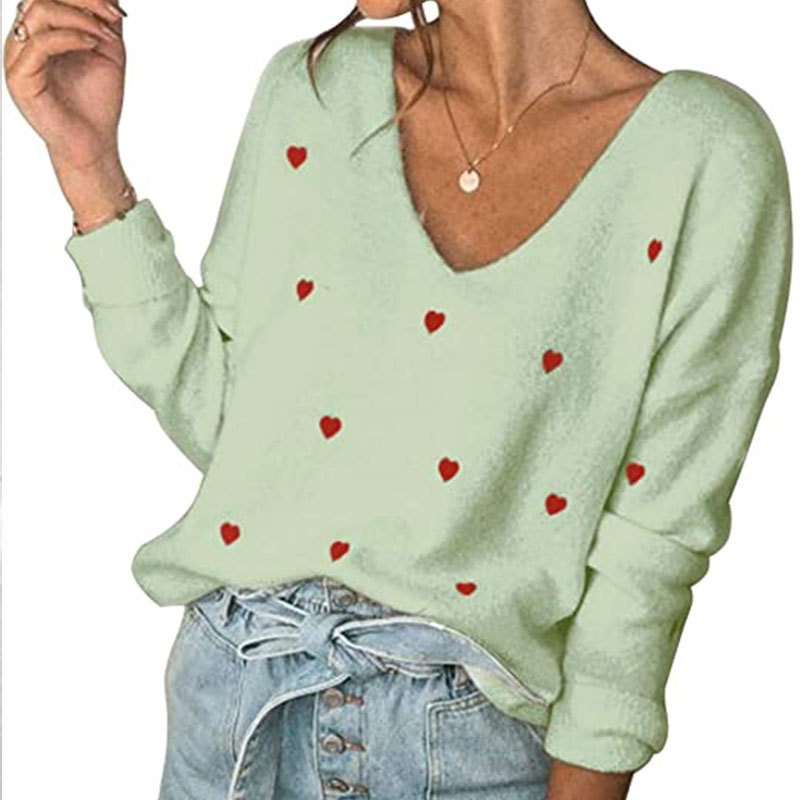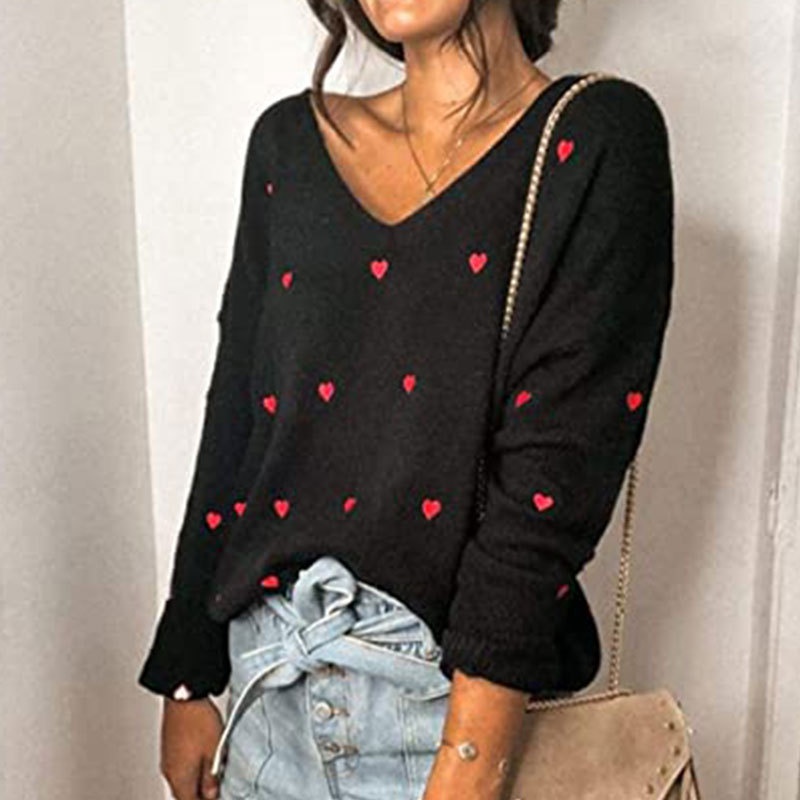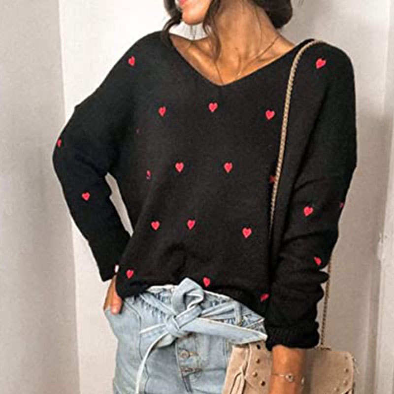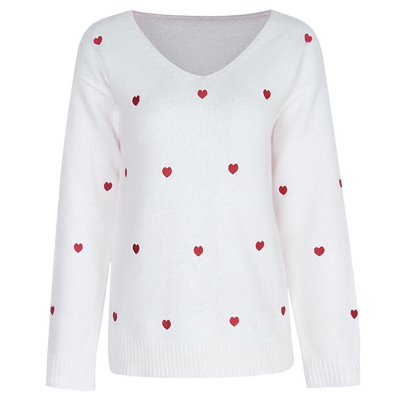 时尚女式新款毛衣情人节爱心波点V领大码宽松套头针织衫