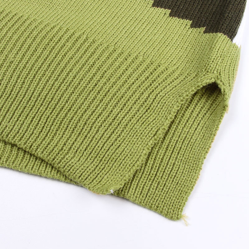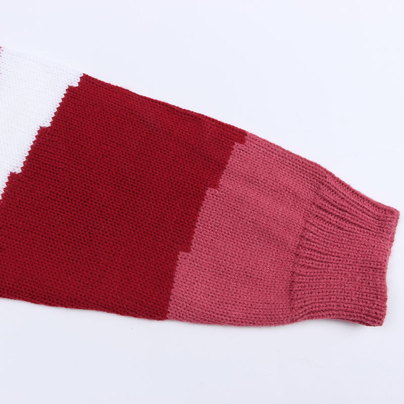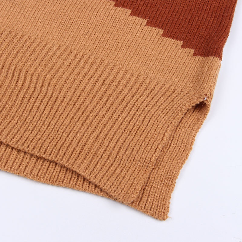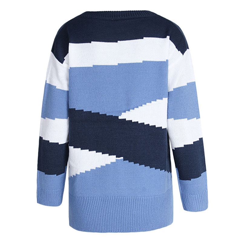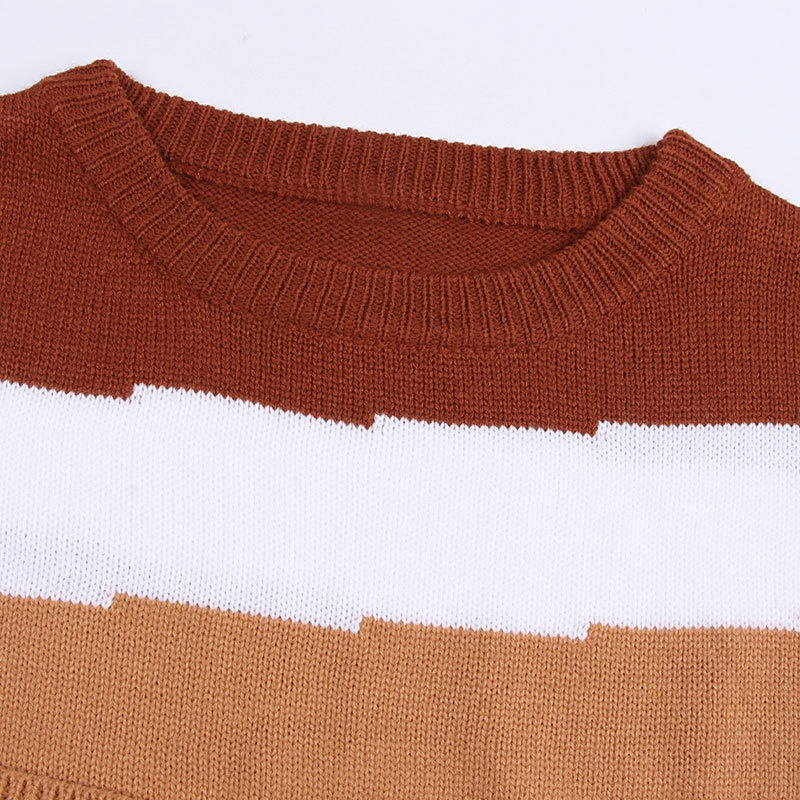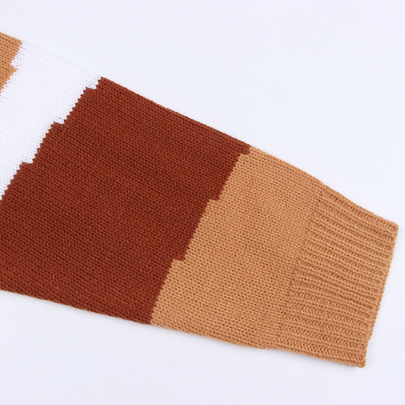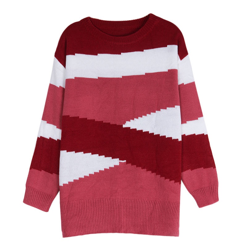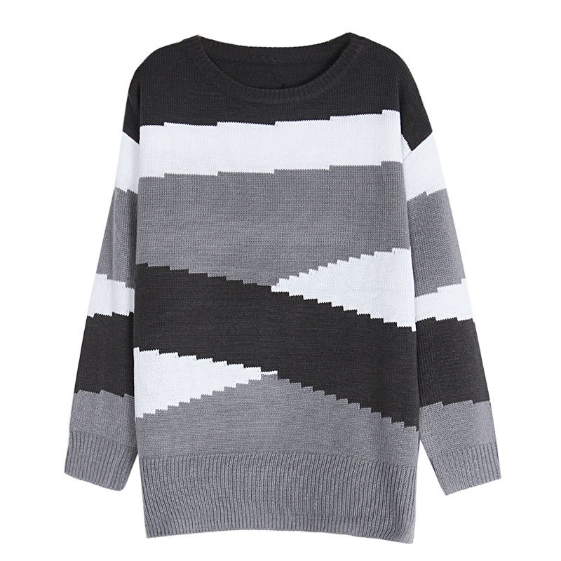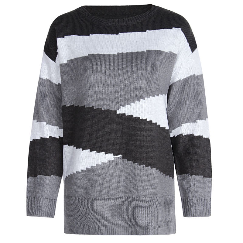 秋冬时尚新款女装套头针织衫欧美宽松不规则条纹拼色毛衣女