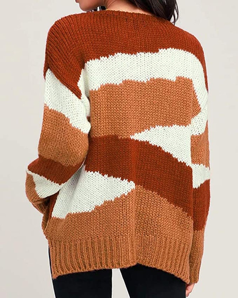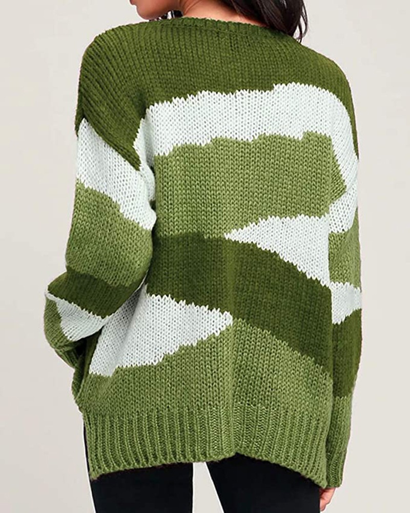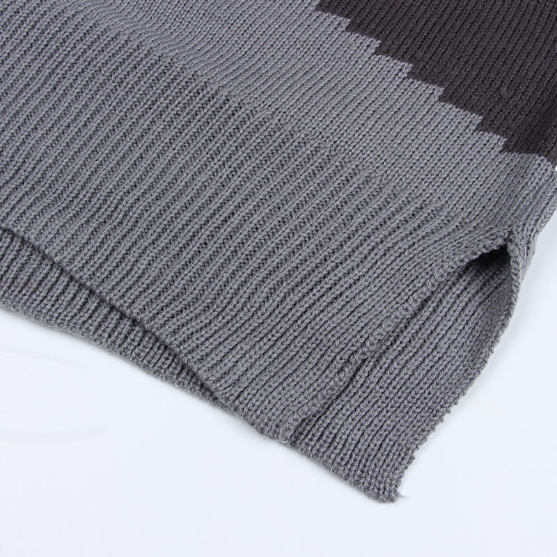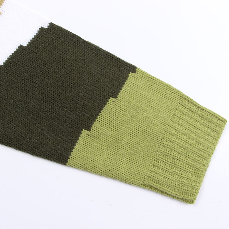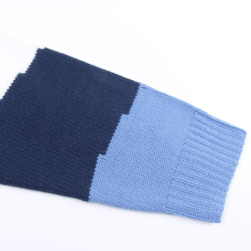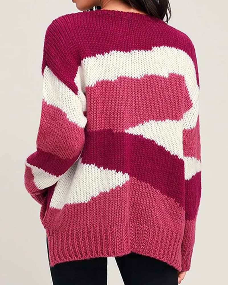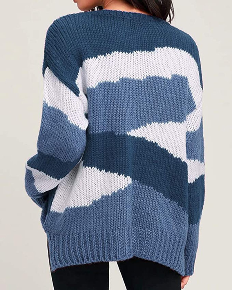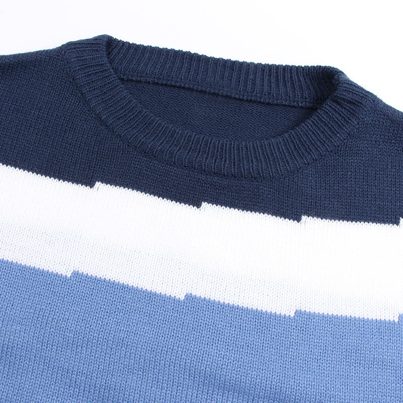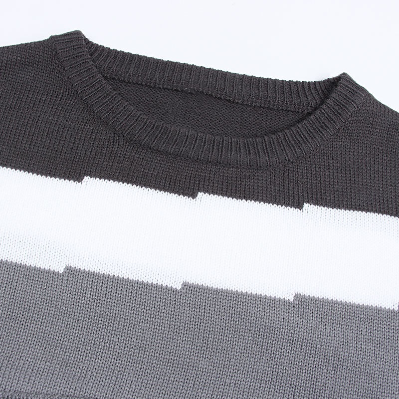 秋冬时尚新款女装套头针织衫欧美宽松不规则条纹拼色毛衣女