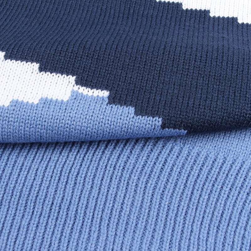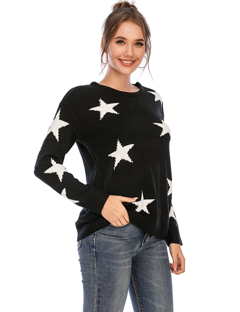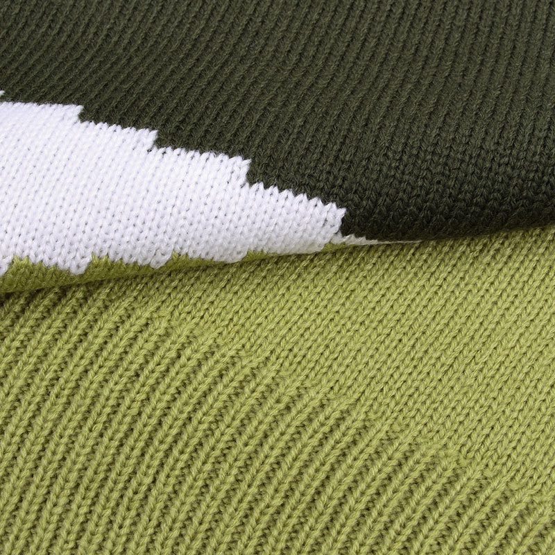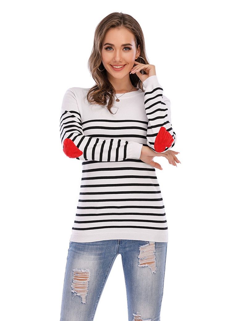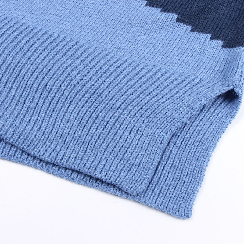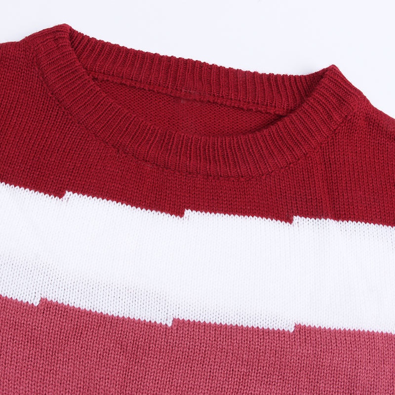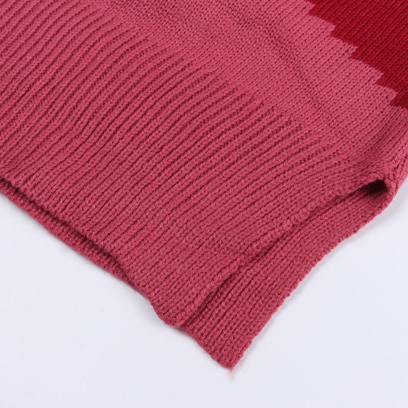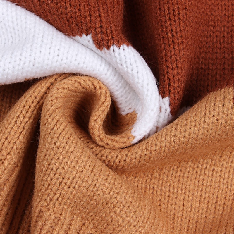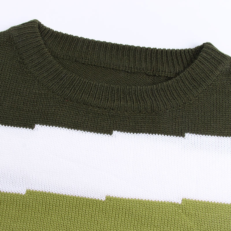秋冬时尚新款女装套头针织衫欧美宽松不规则条纹拼色毛衣女