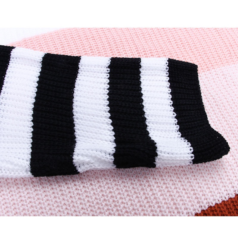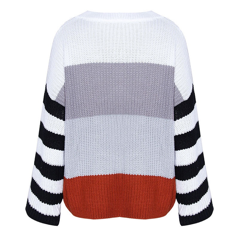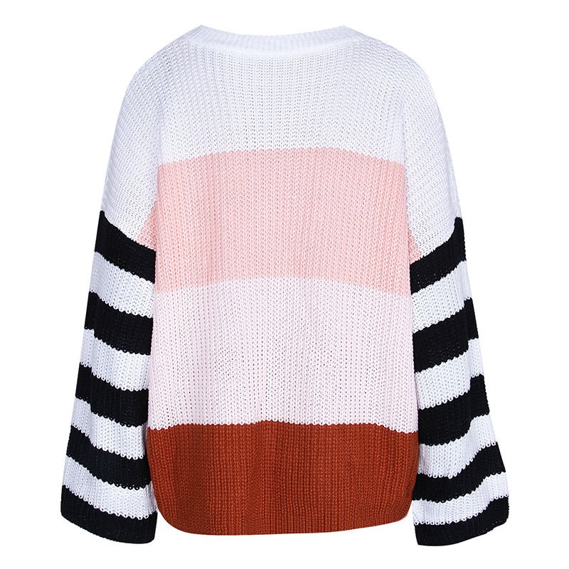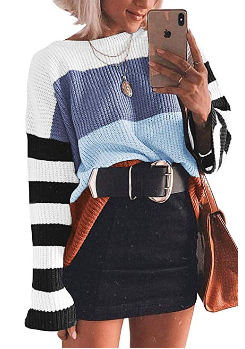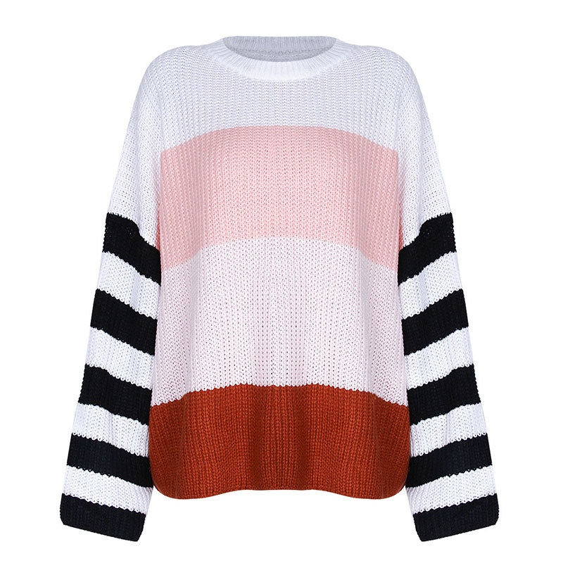 秋冬新款女装针织圆领上衣间色拼接针织衫套头欧美跨境毛衣