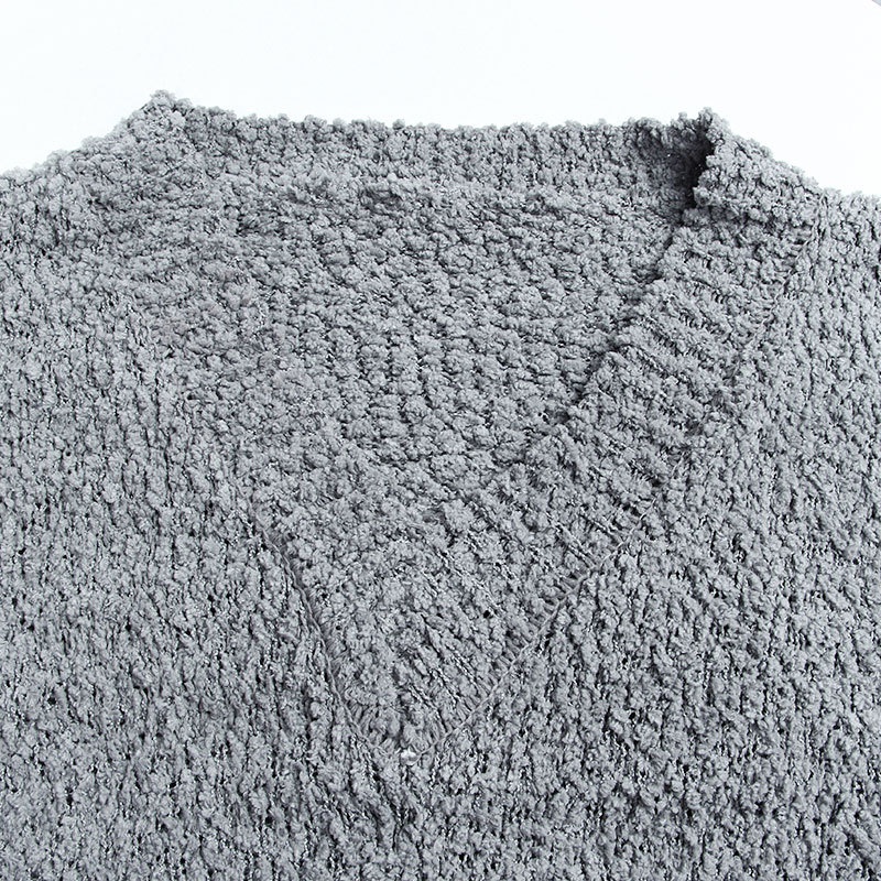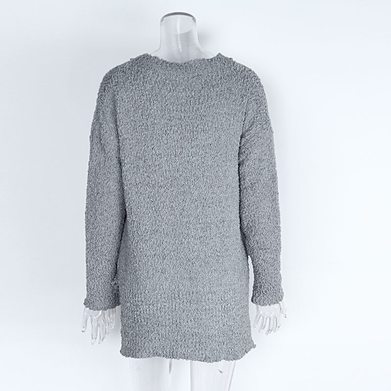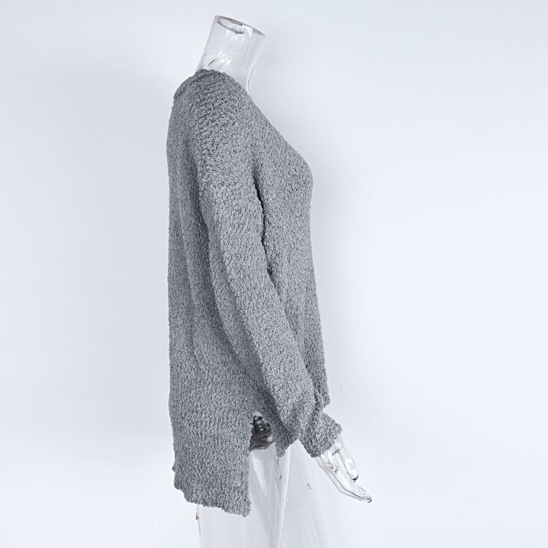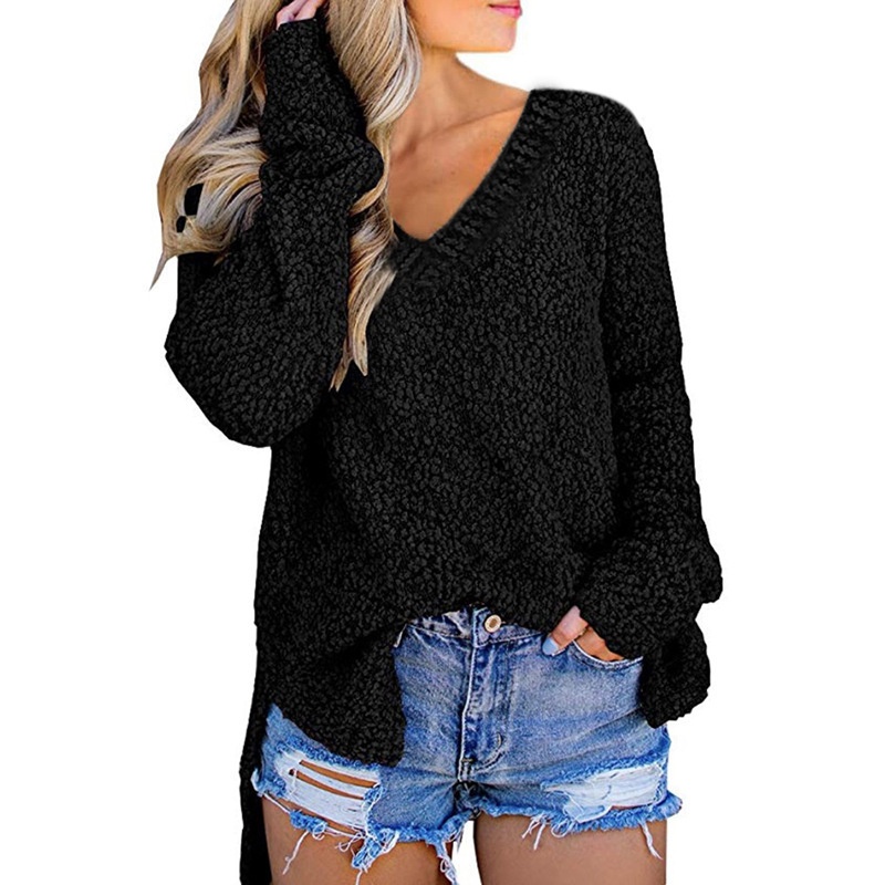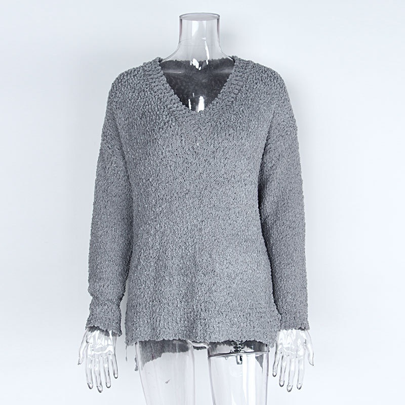 新品秋冬外贸女装欧美颗粒绒v领开叉套头针织衫