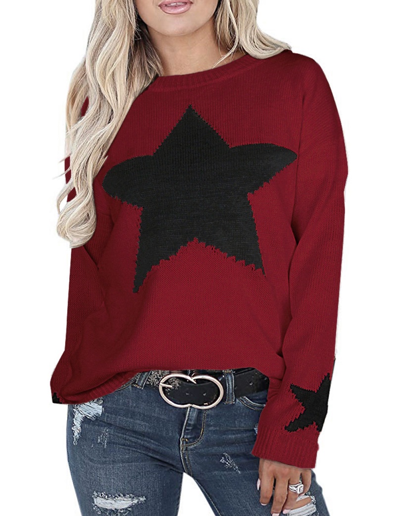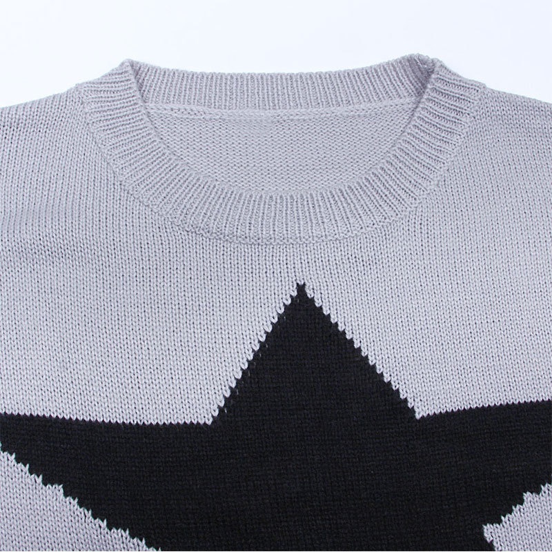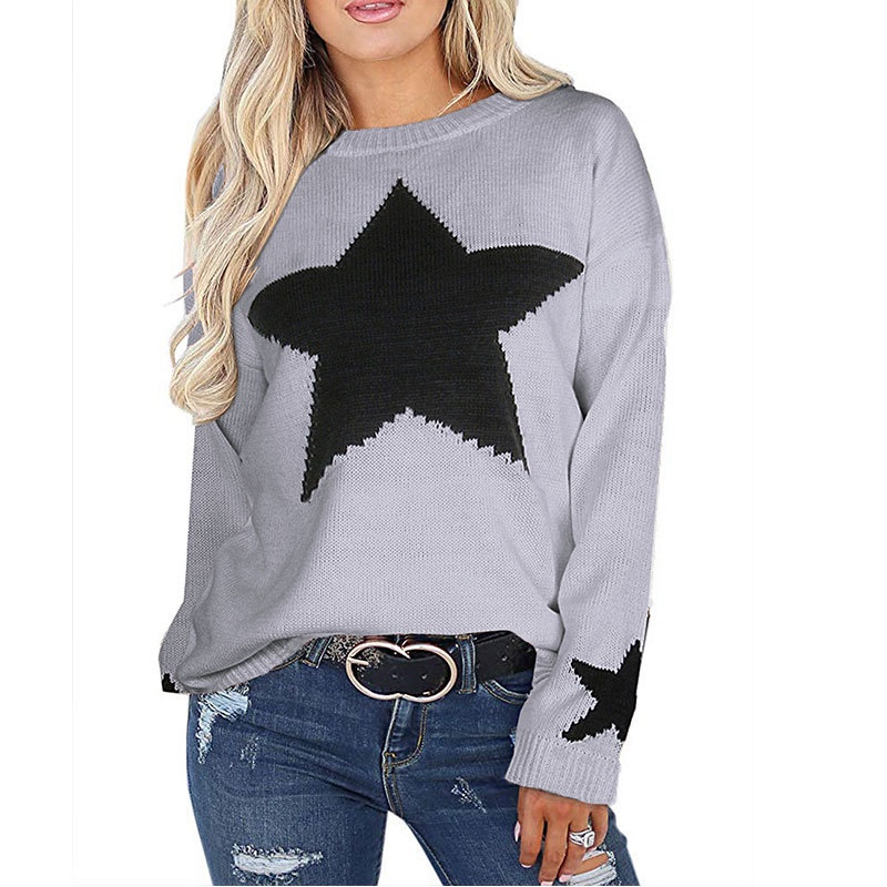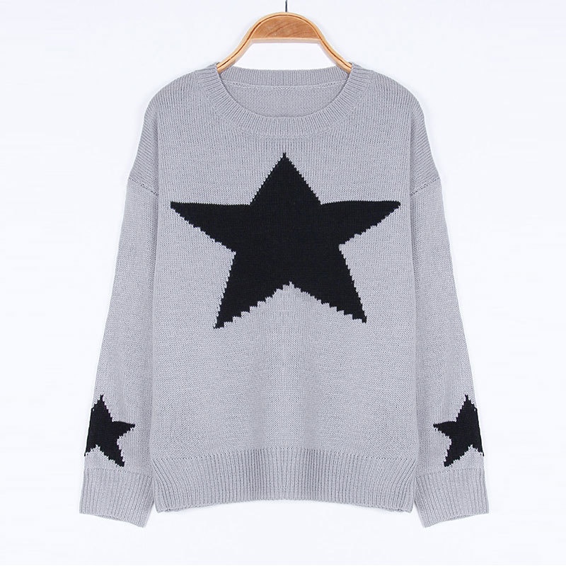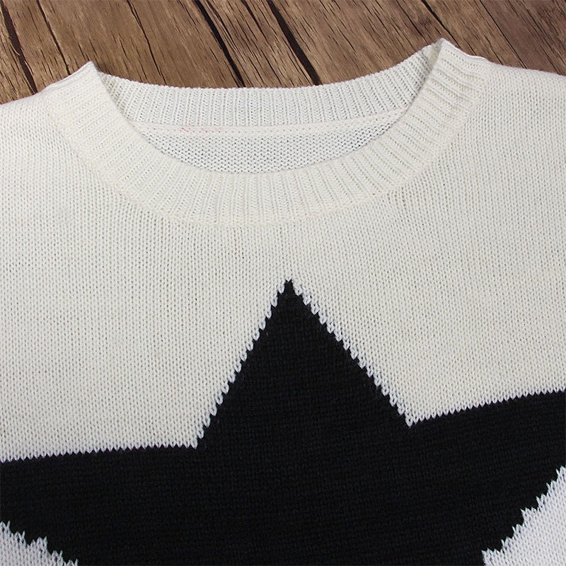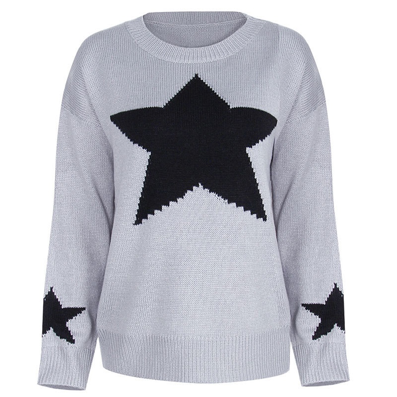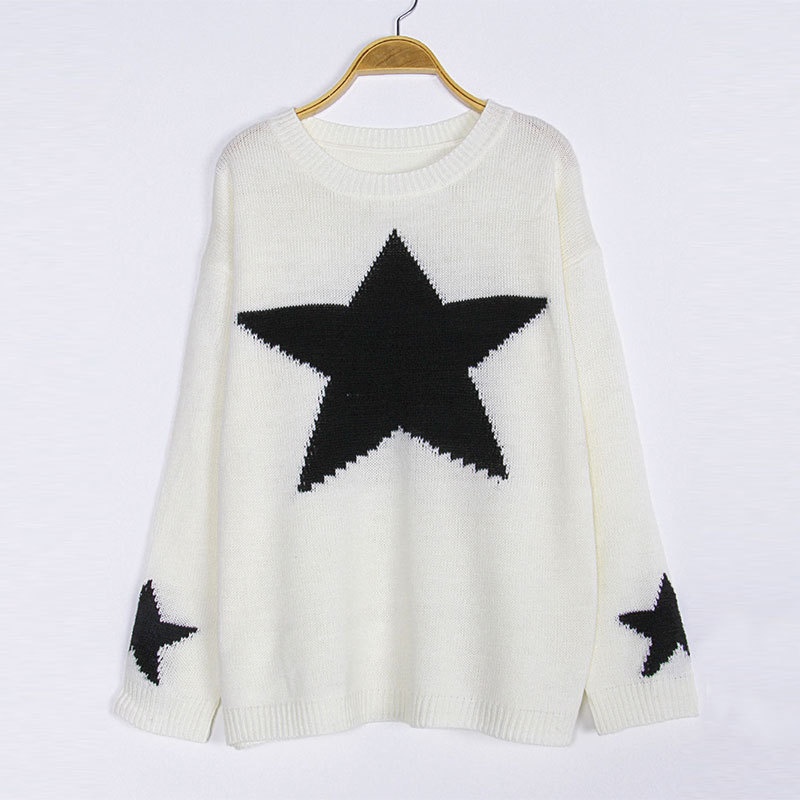 秋冬新款女装毛衣宽松慵懒星星套头针织打底衫现货